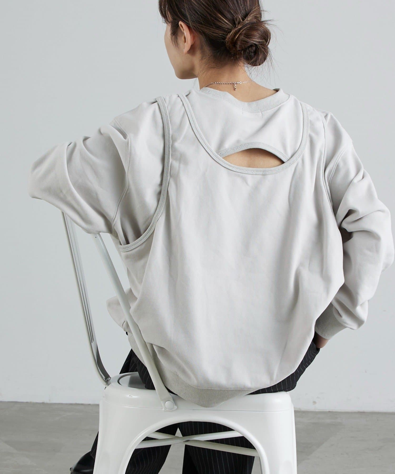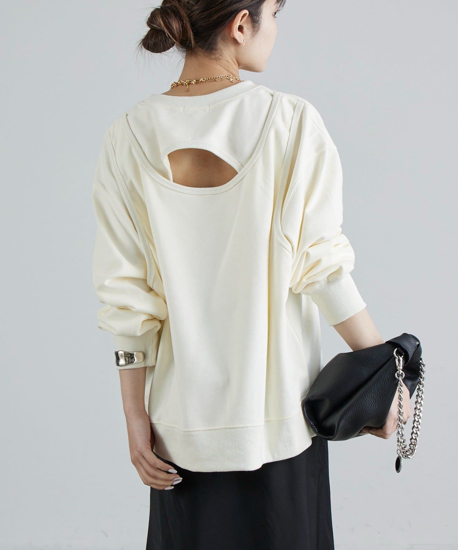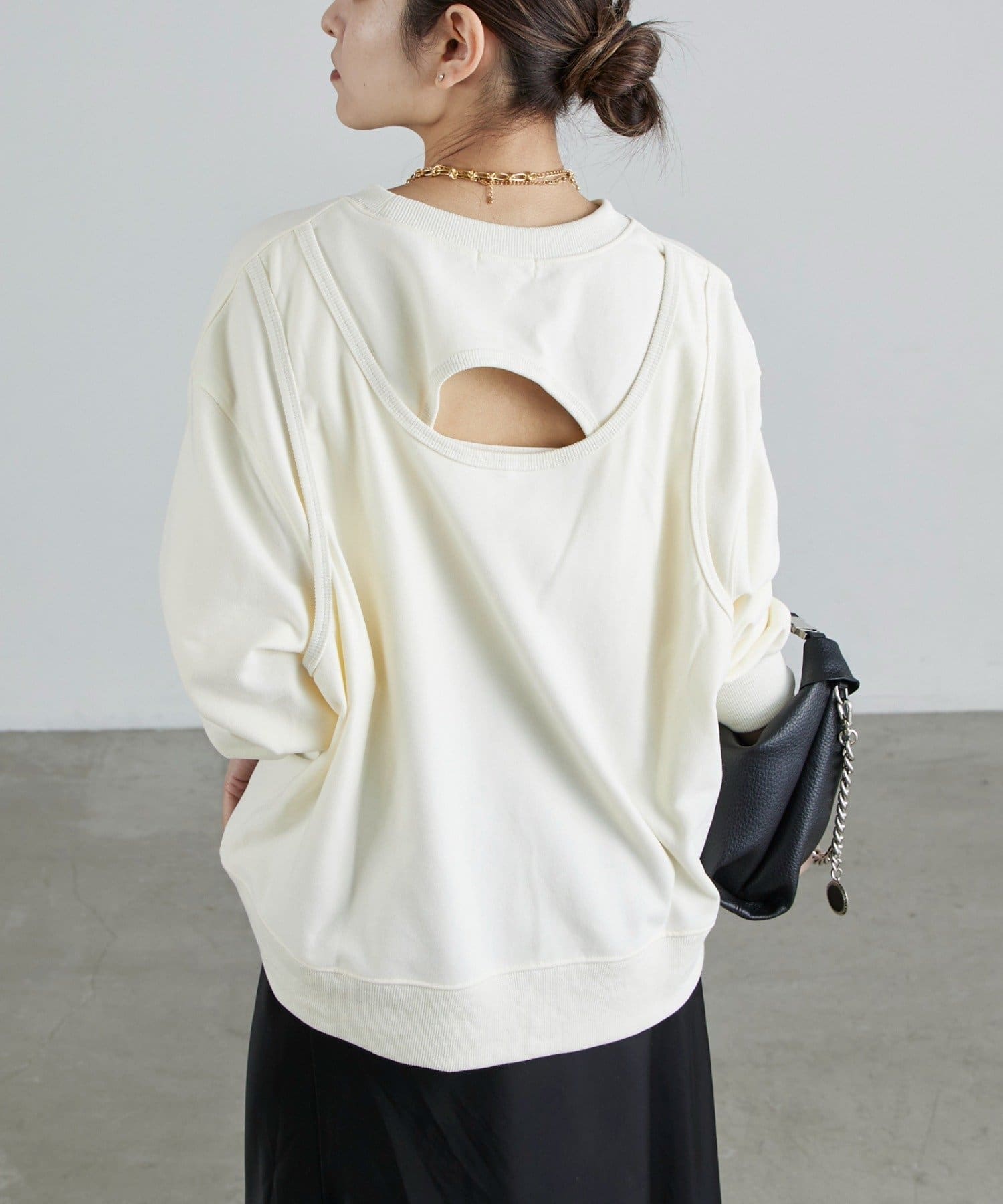 後ろのニュアンスデザインがポイントで、背中がちらっと肌見せ出来るトップス。