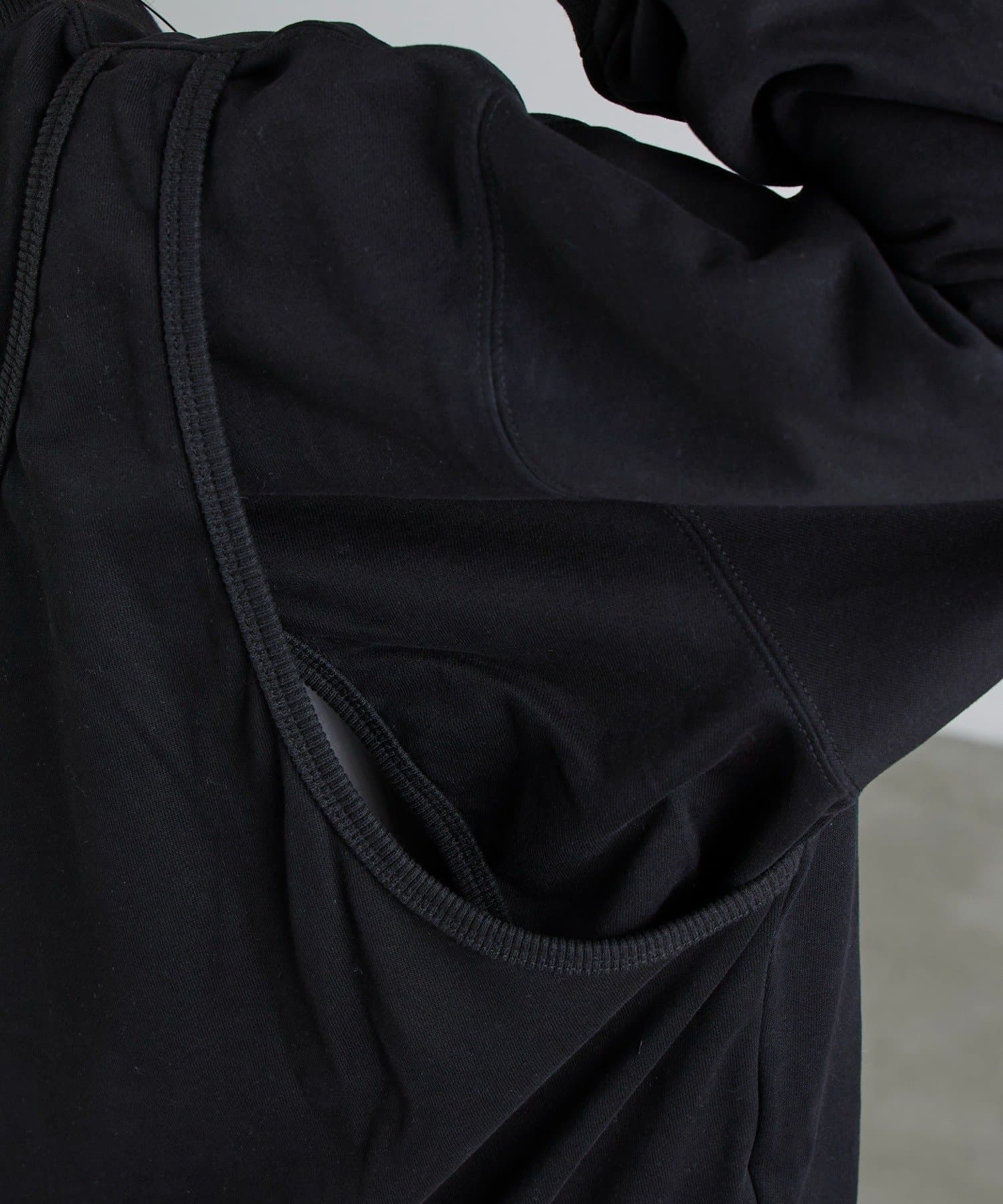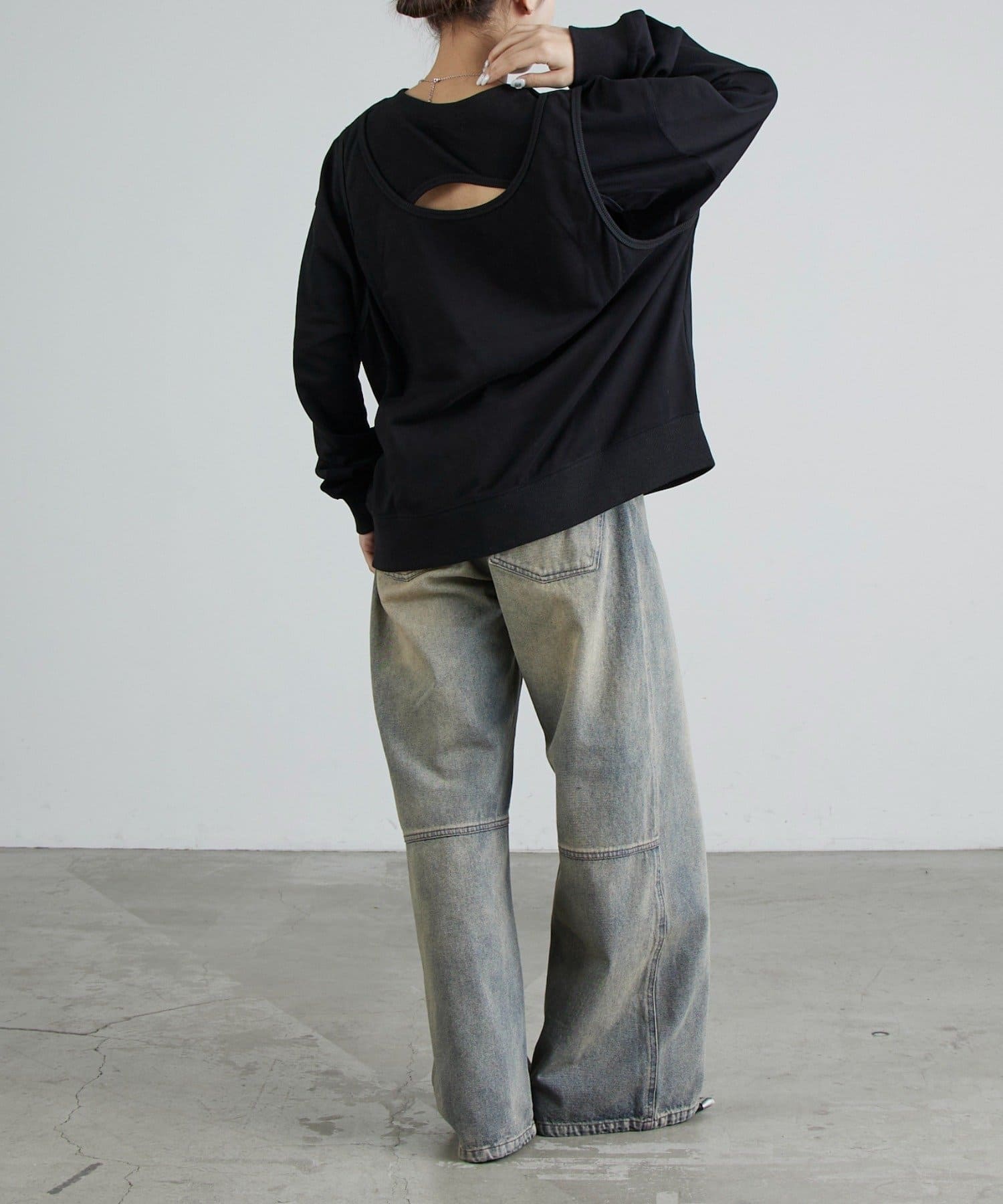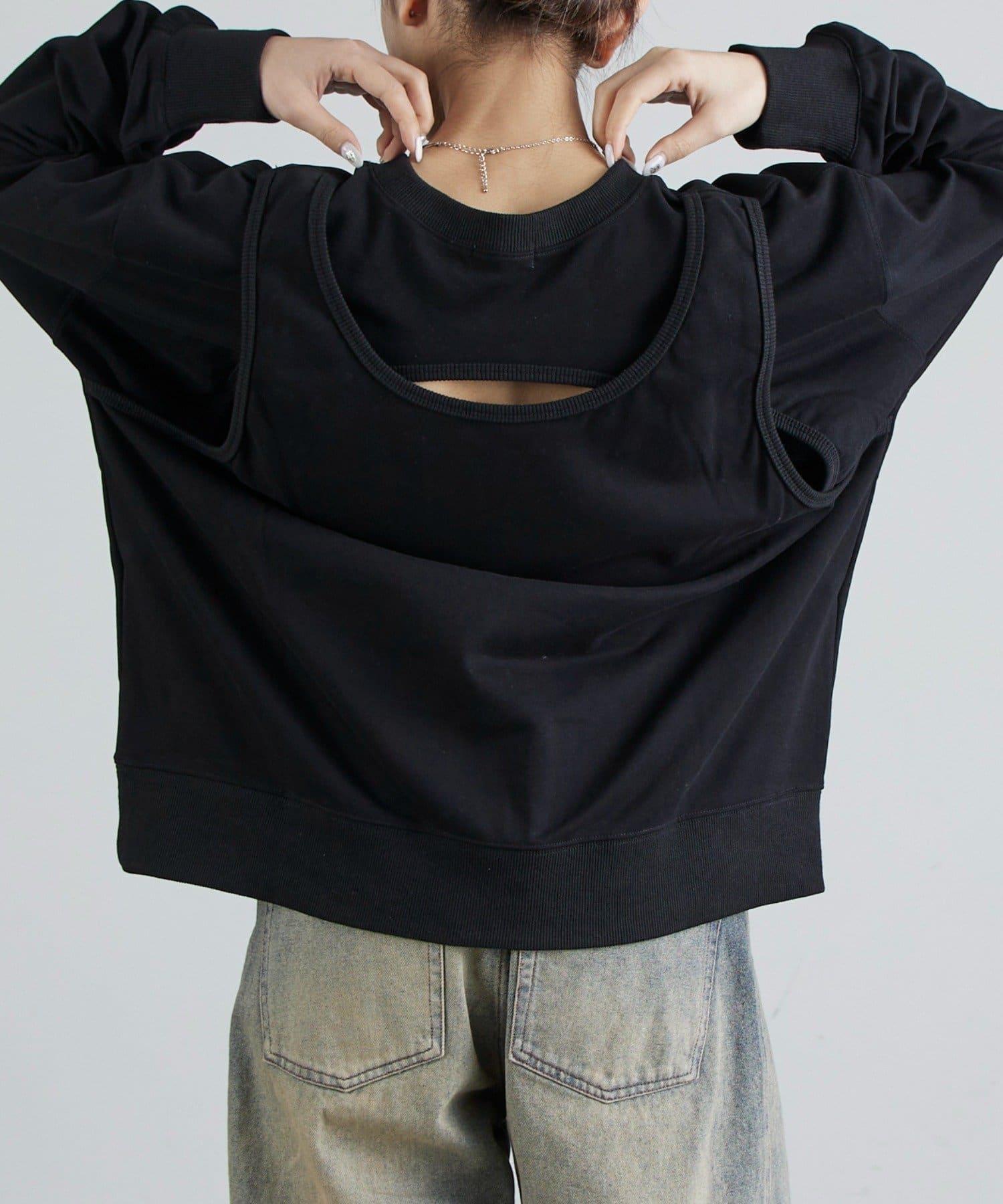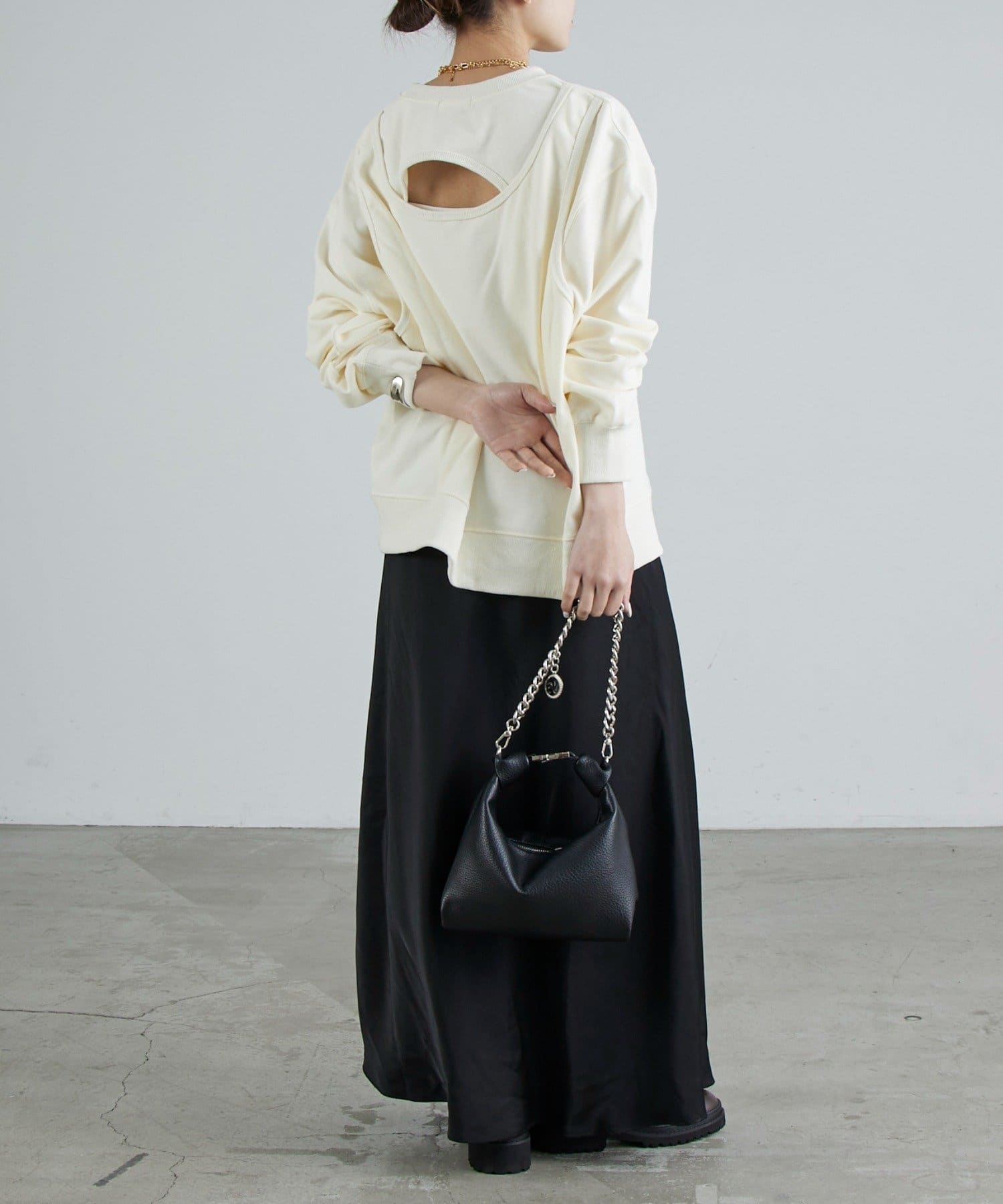 後ろのニュアンスデザインがポイントで、背中がちらっと肌見せ出来るトップス。