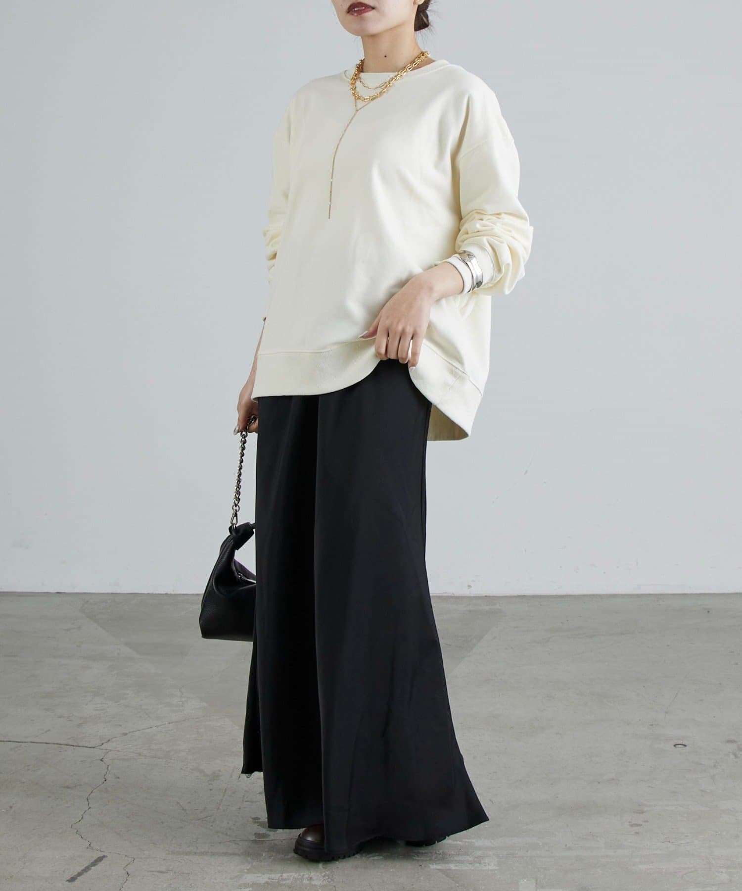 ワイドなキレイめスラックスと合わせるコーデや、レザーやサテンなどのキレイめ素材を使ったスカートとの相性も◎
