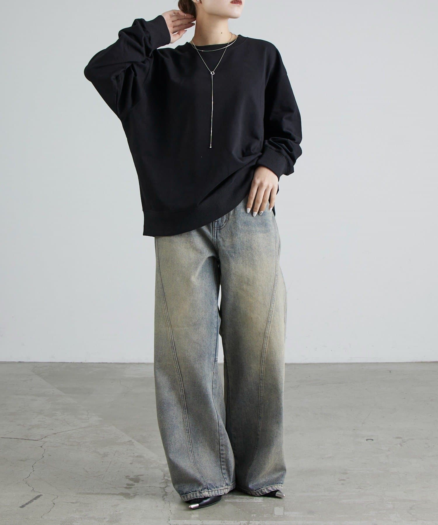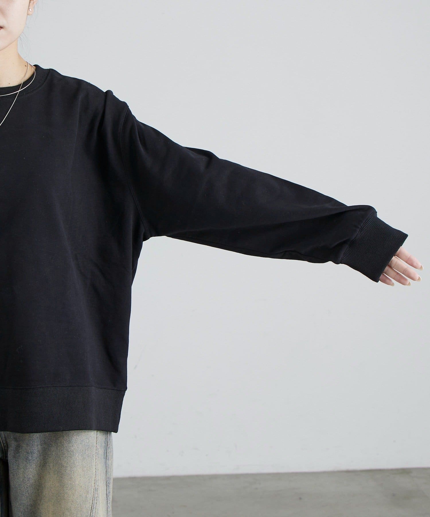 裏毛なので温かさもありつつ、一枚でお洒落が叶う一枚。