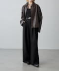 スラックスにベルトを締めたスタイリングにバサっと羽織ったコーデも雰囲気ありおススメ。
