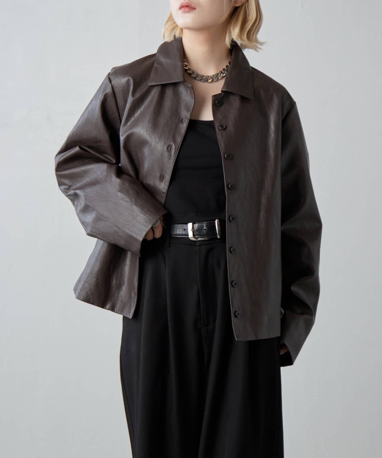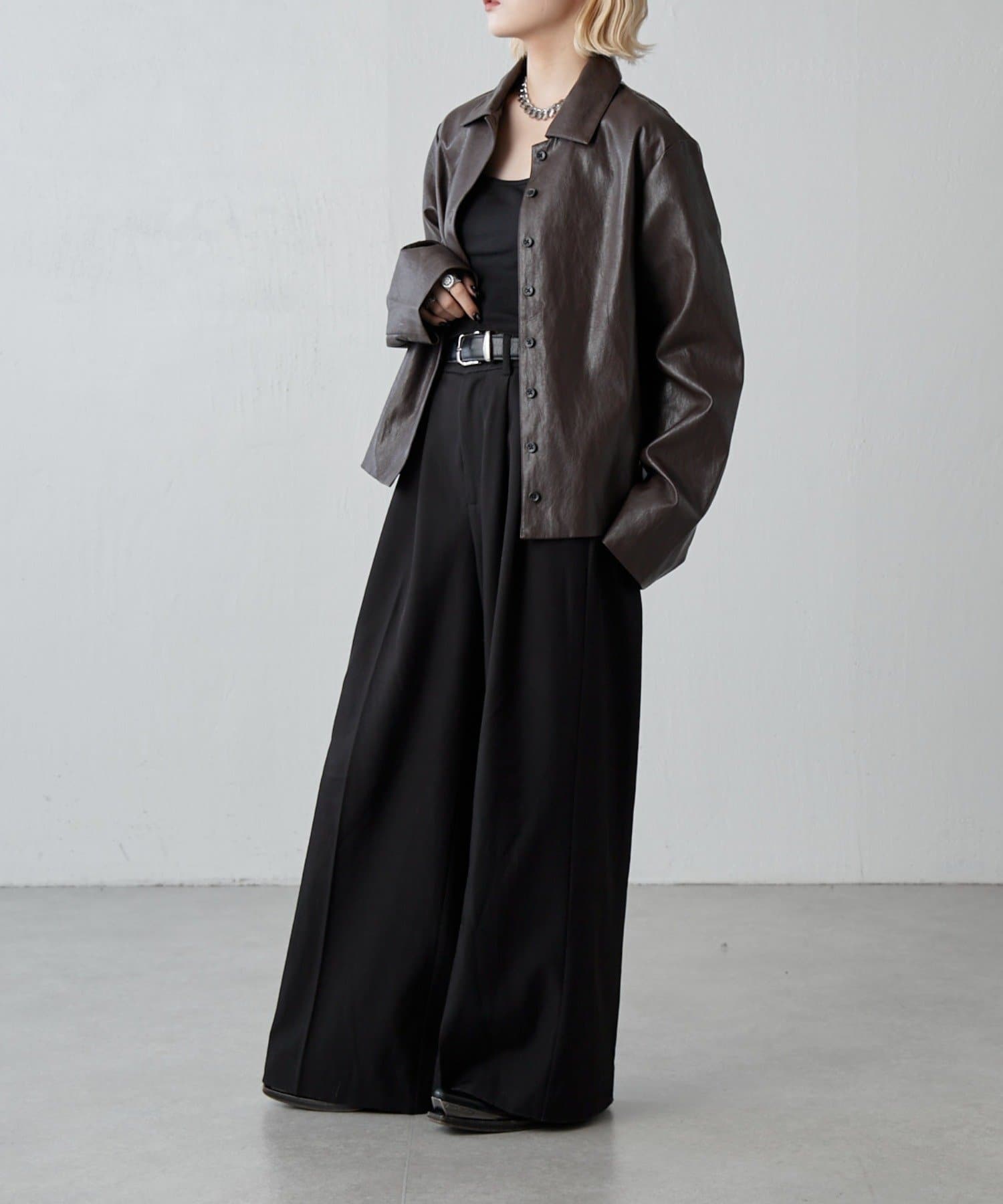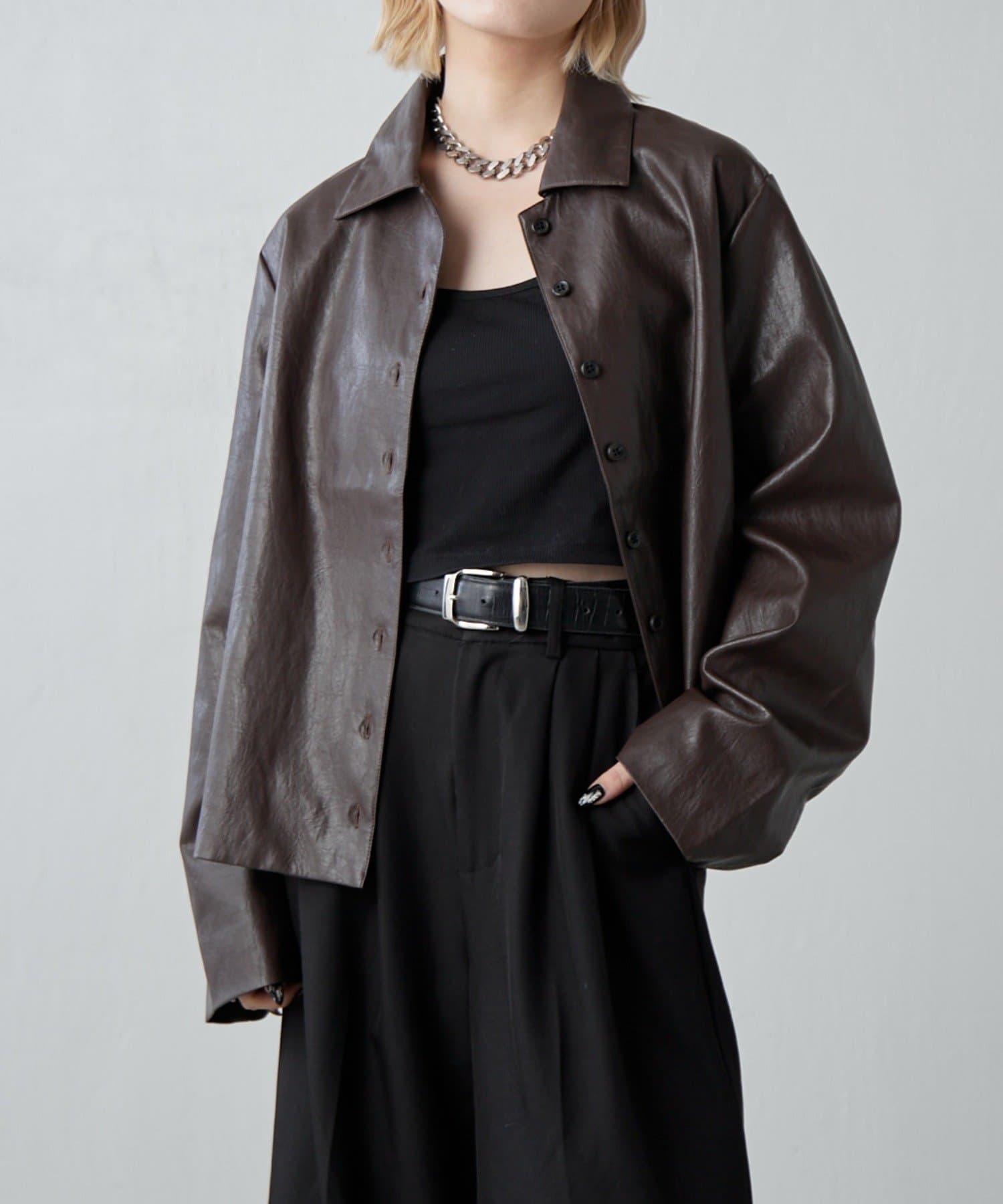 フェイクレザーシャツジャケット