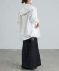 ・フードが大きく、袖口も広いので、かっこかわいいモードテイストにも着用可能な1着。