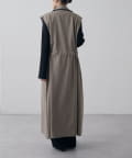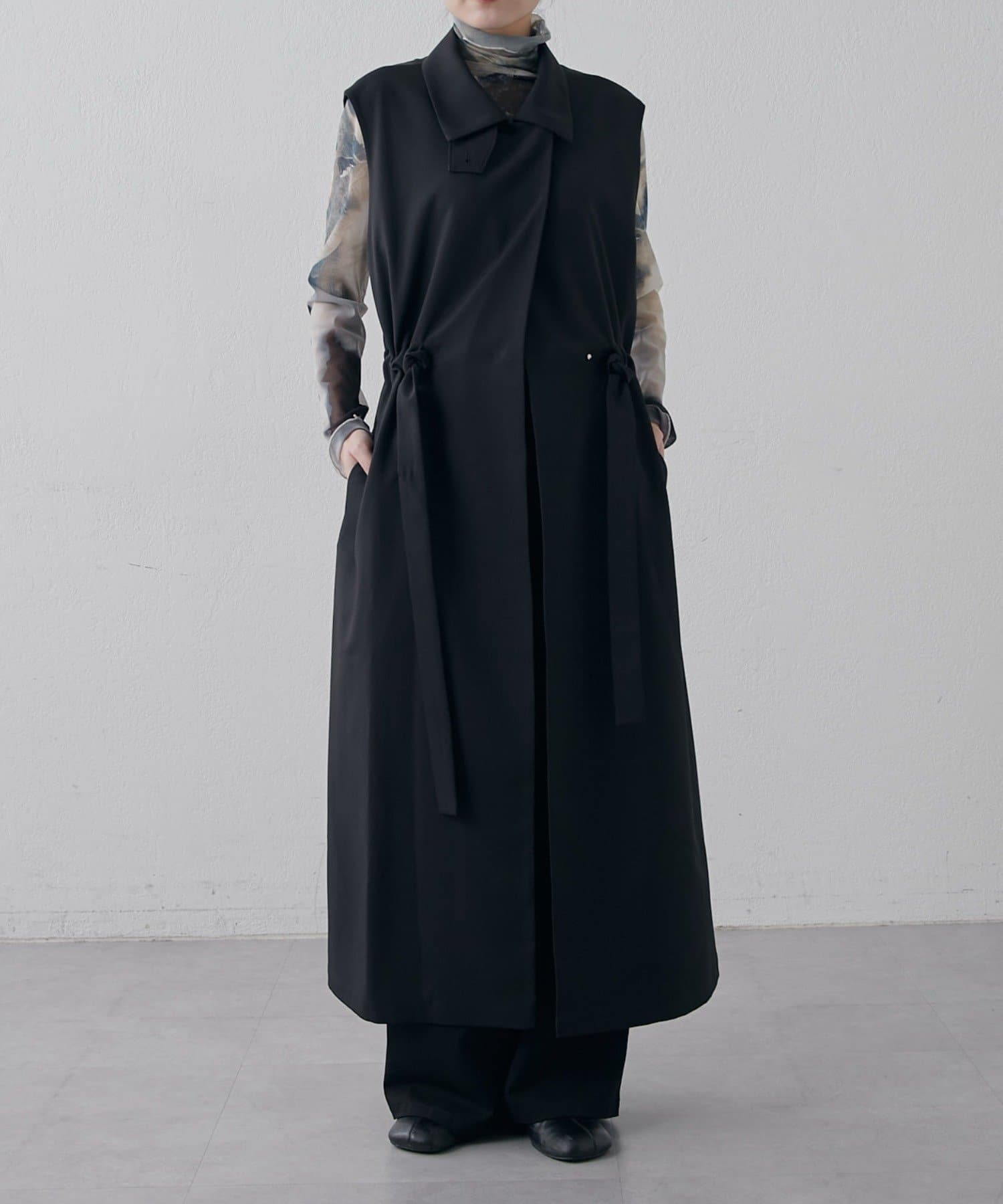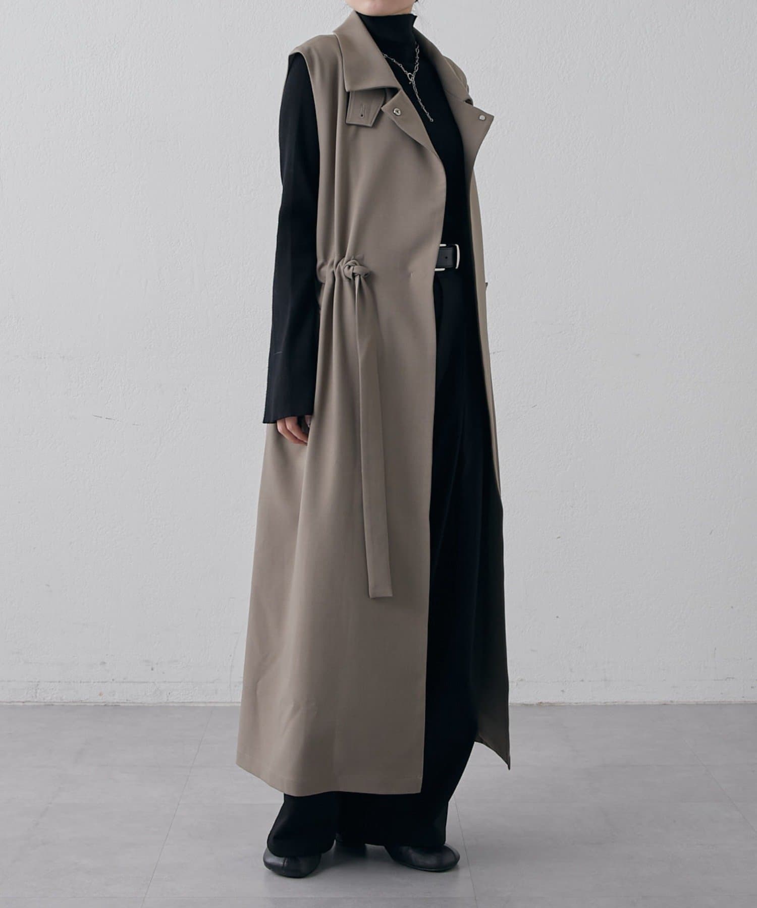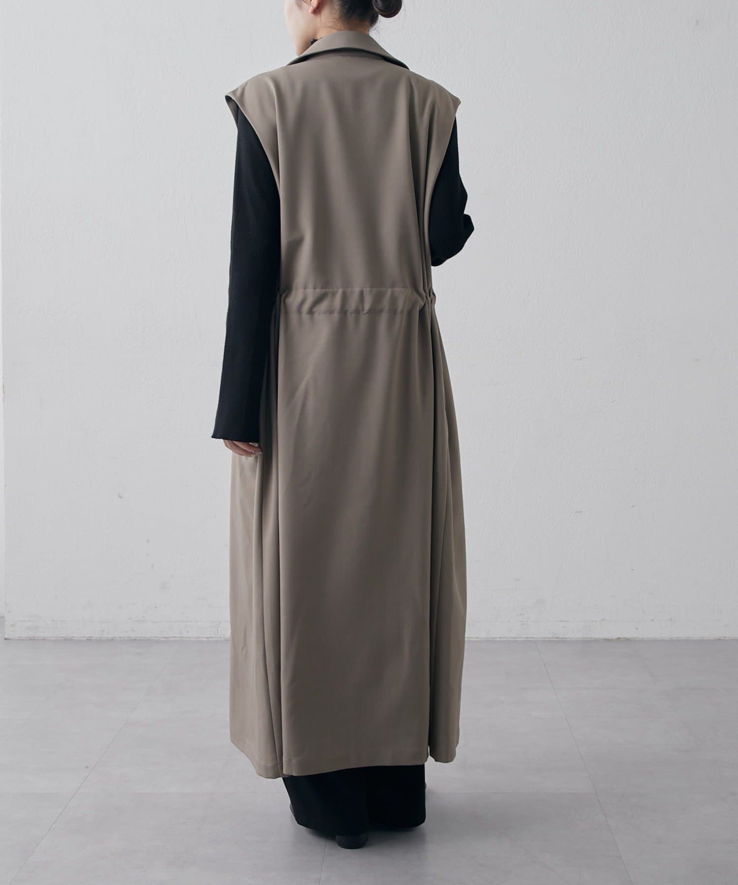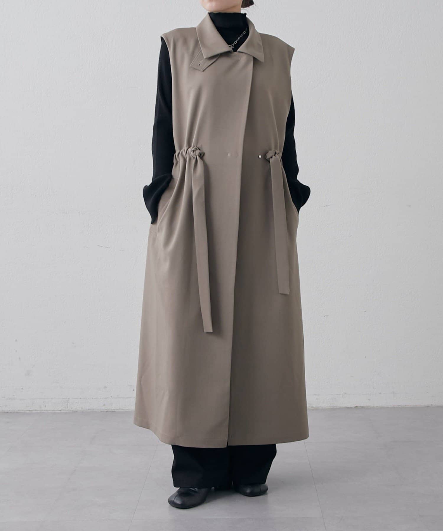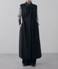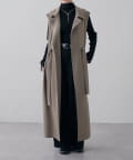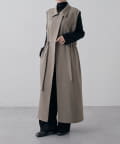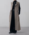 ショート丈のジャケットとロングジレを重ねて着ることで、ロングコートに見えるデザイン。