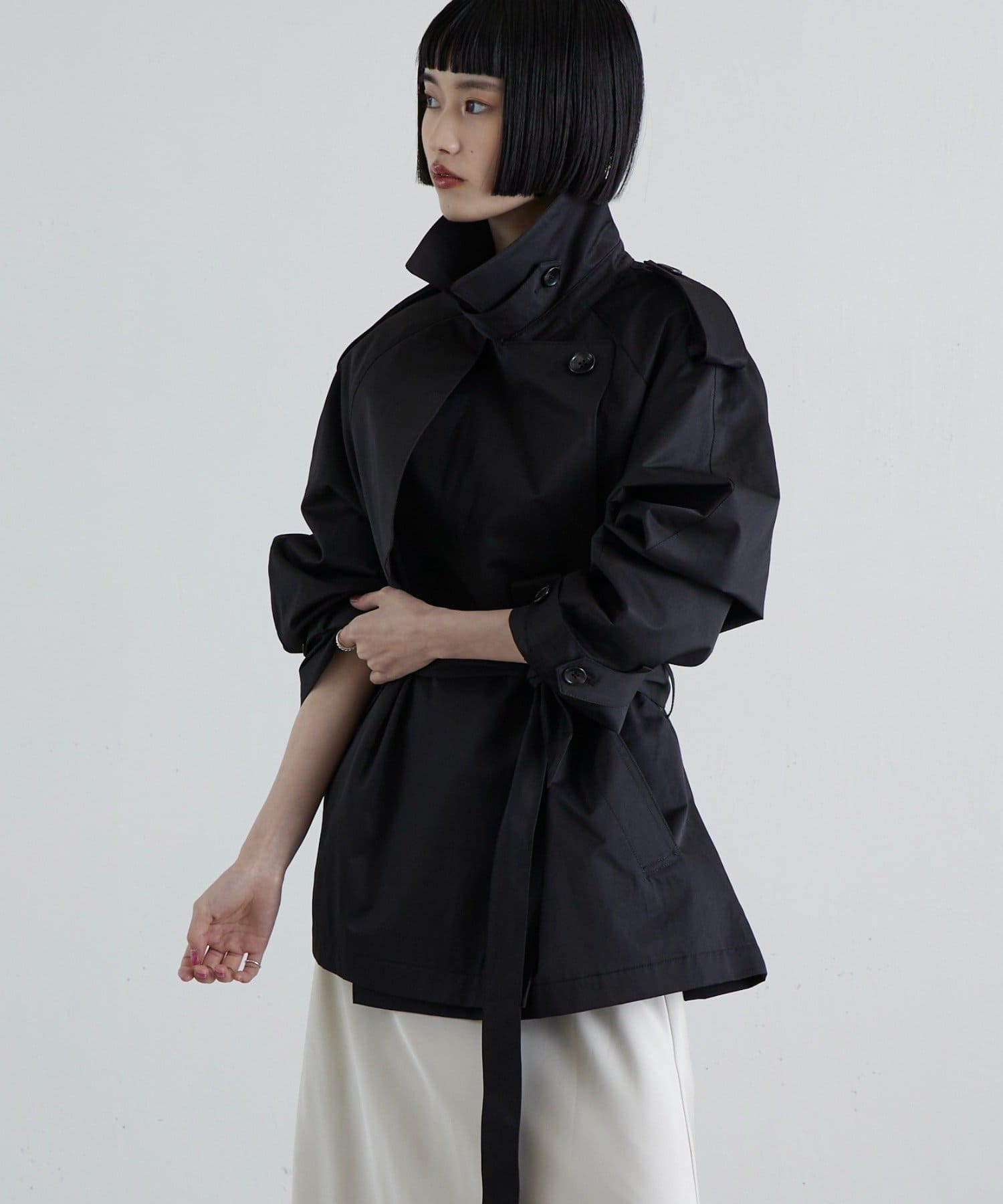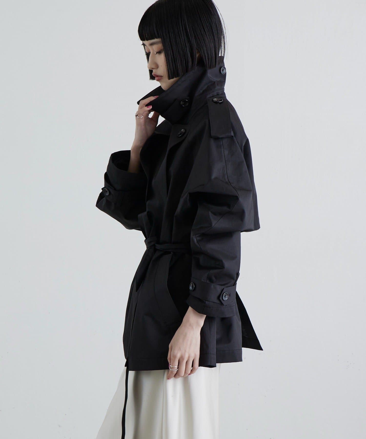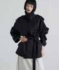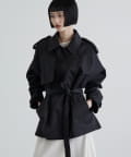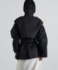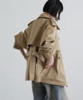 程よいハリとさりげなくナチュラルなムードのある綿ナイロン素材を使用したショートトレンチ。