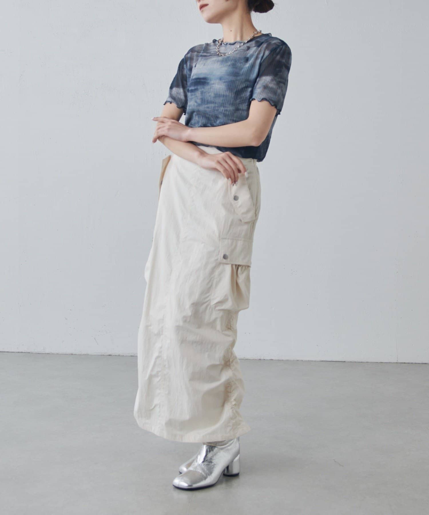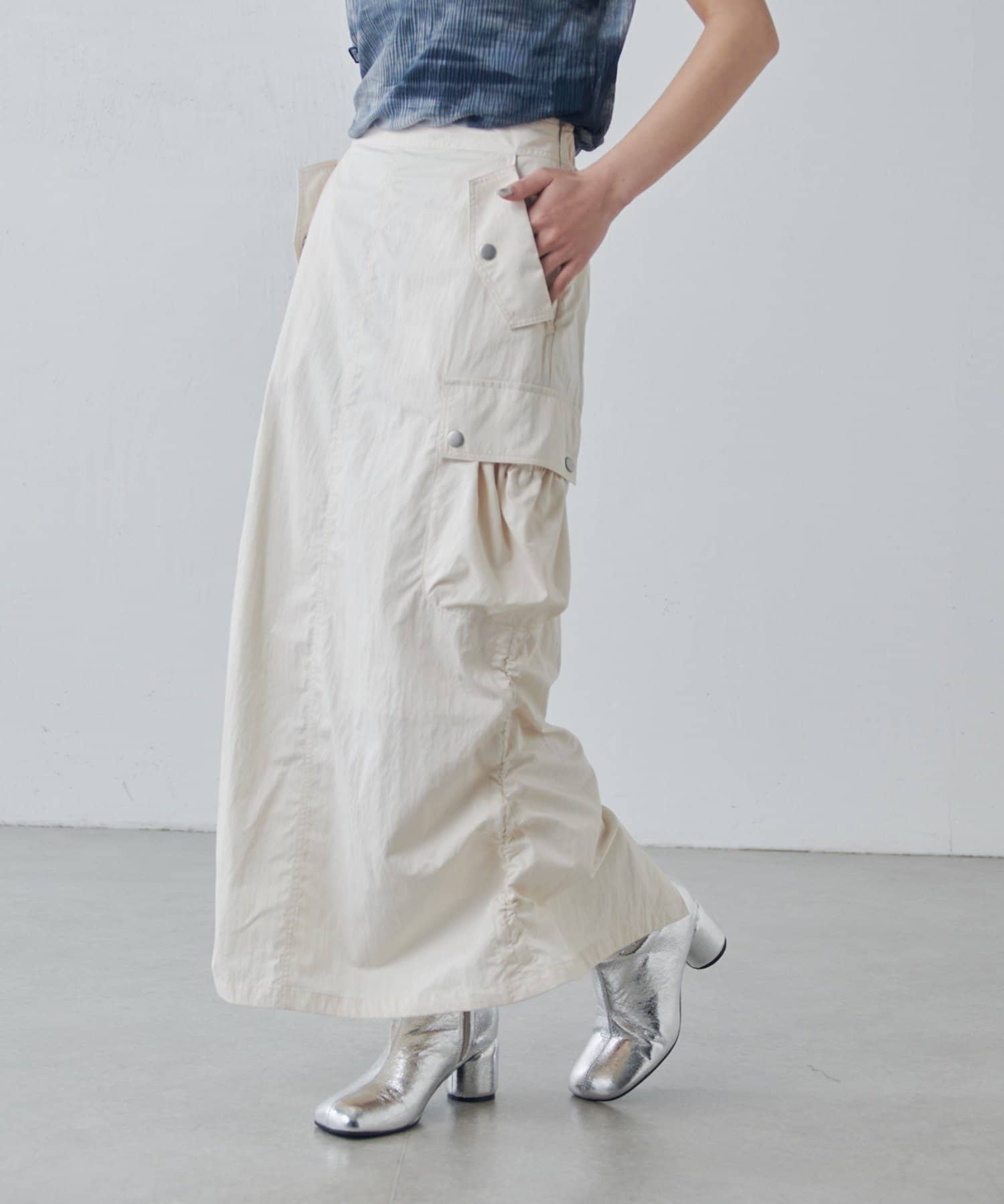 ・夏はスニーカーやサンダル、秋は長めのトラックブーツ等を合わせて長く楽しめる万能スカート