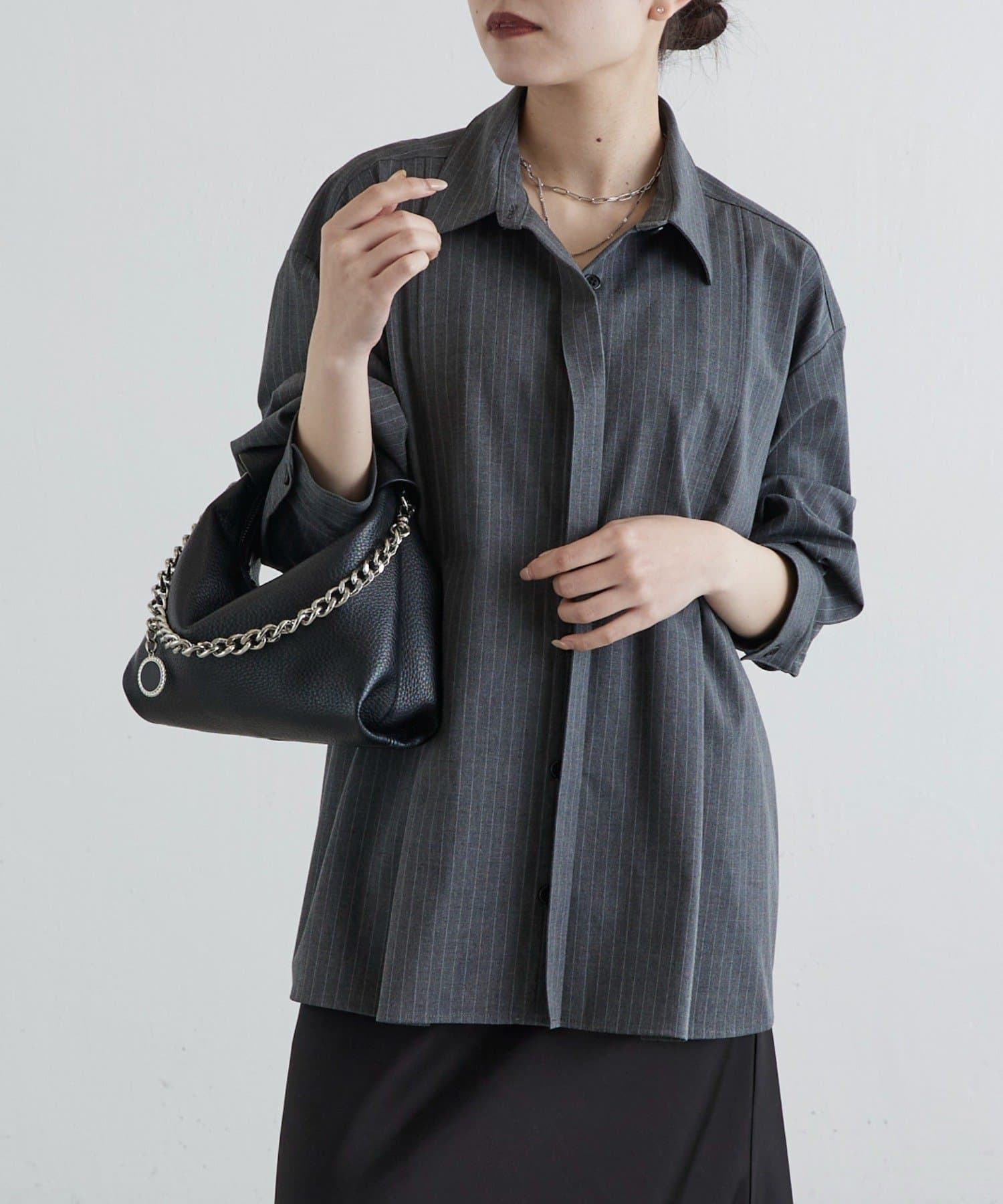 キレイめカジュアルなシャツなので、ボトムを選ばず、デニム~スカートまで幅広く着こなすことができます◎