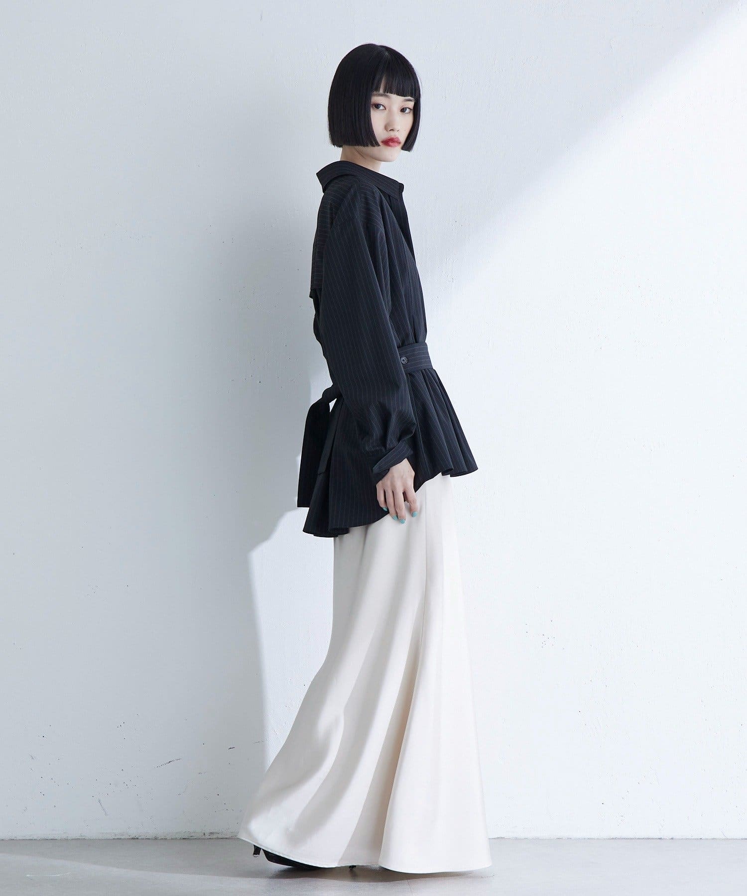 前後差のある着丈が動きにニュアンスを与え、こなれ感のある印象に仕上がります。