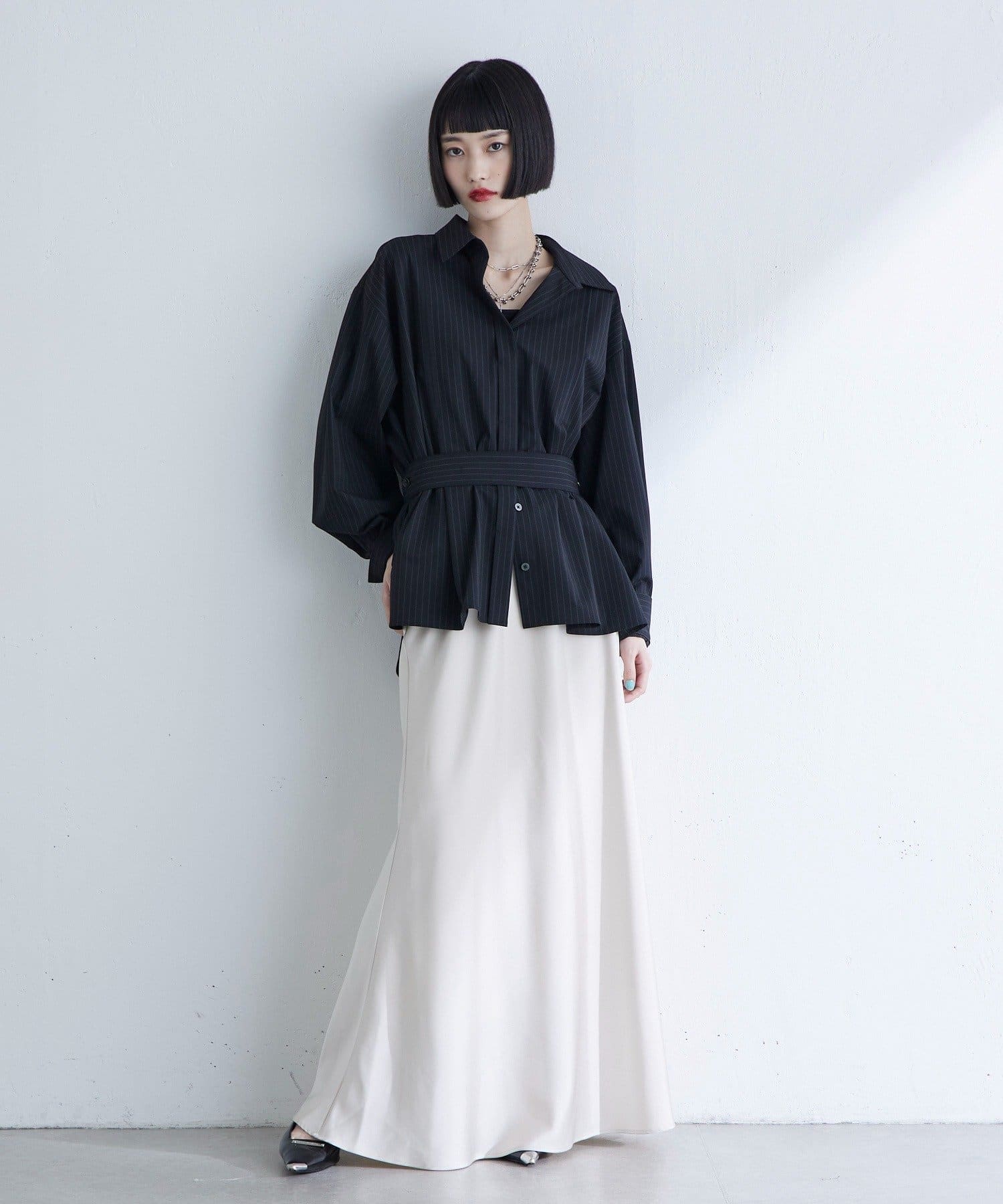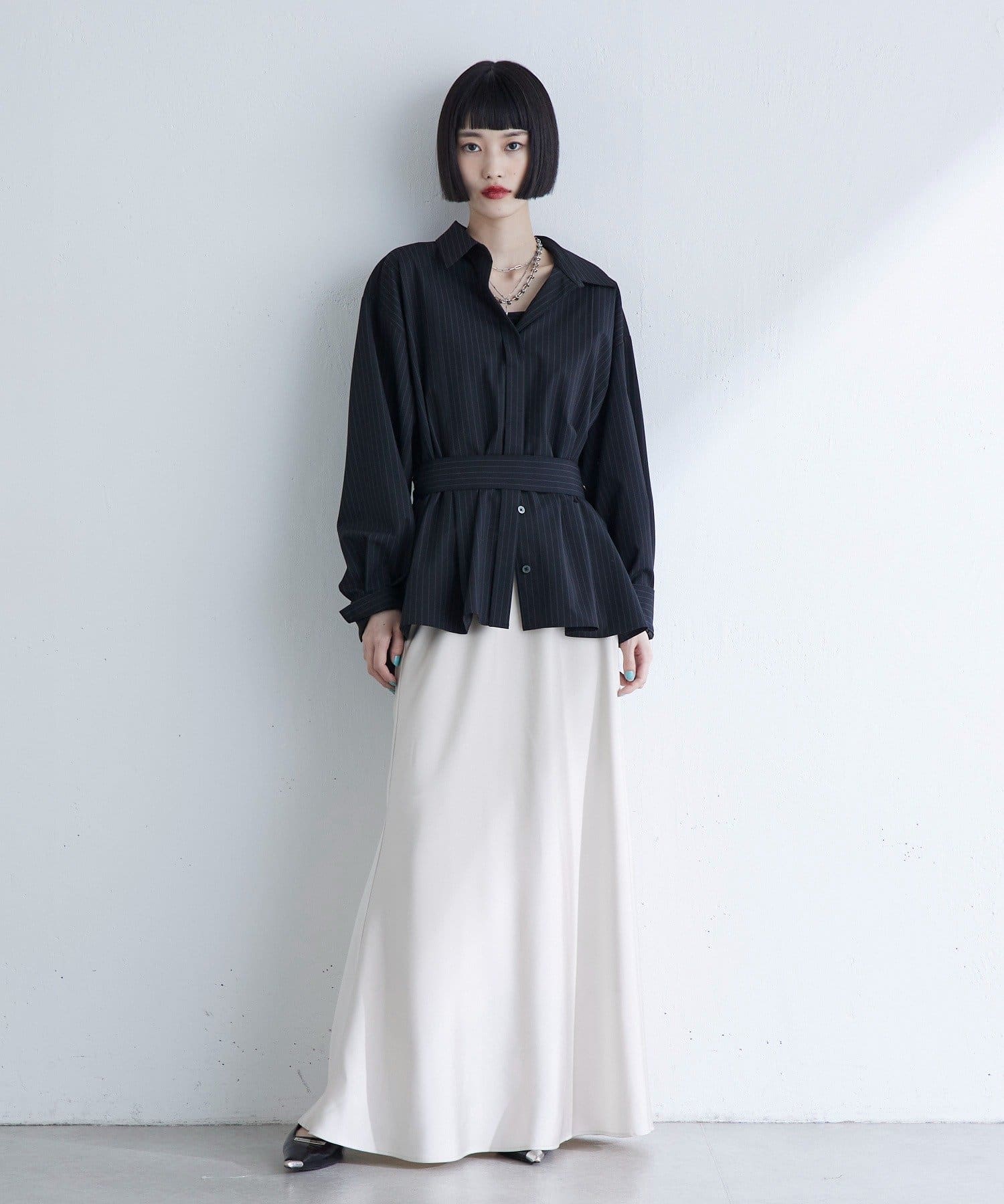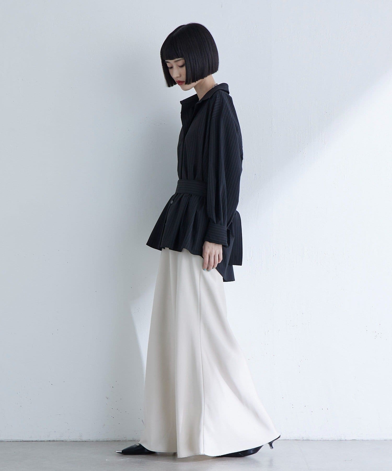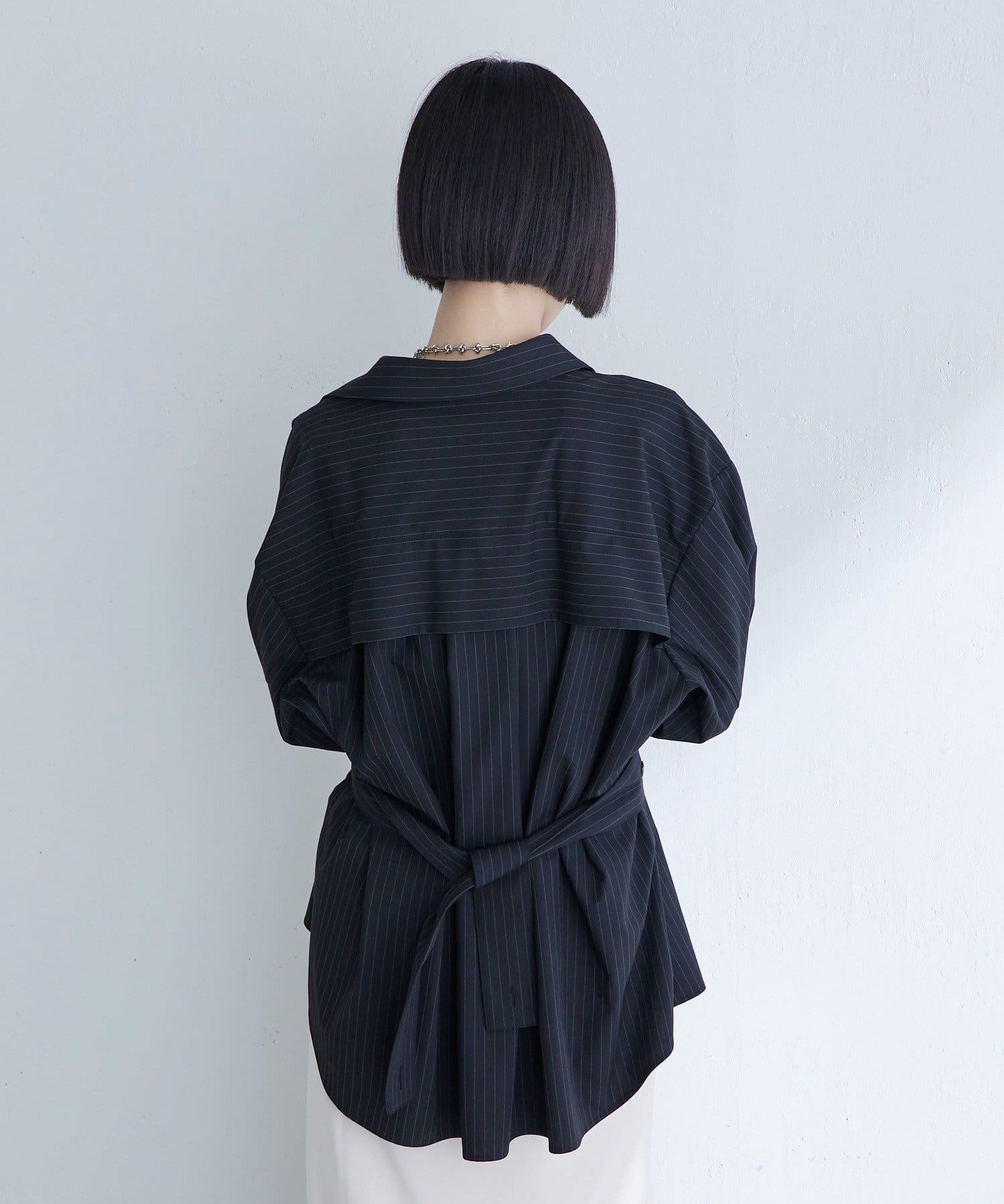 ベルトデザインストライプシャツ