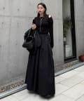 落ち感のあるワイドスラックス合わせでモードなスタイルも完成します。
