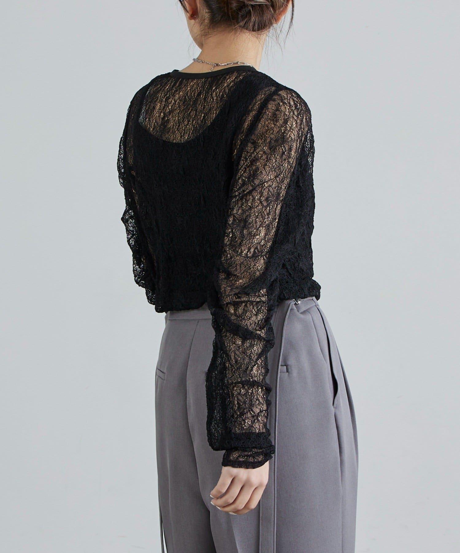 レース袖ギャザートップス