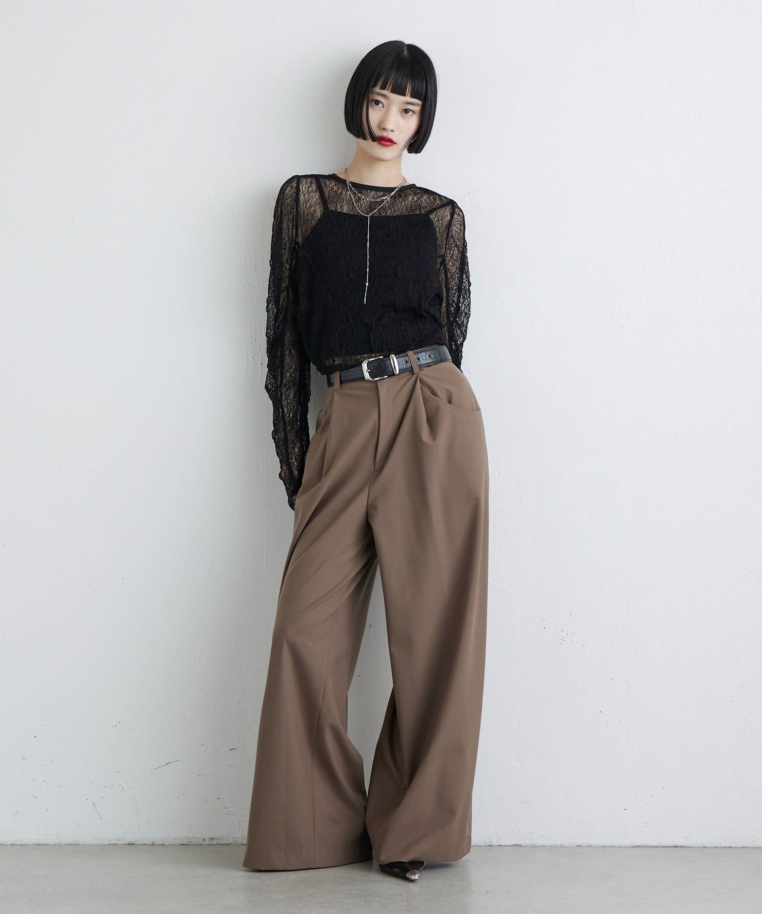 LUZ1052102A0001 【mi-企画】タックワイドパンツ