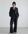 同素材のスラックスで合わせたセットアップスタイルはもちろん、