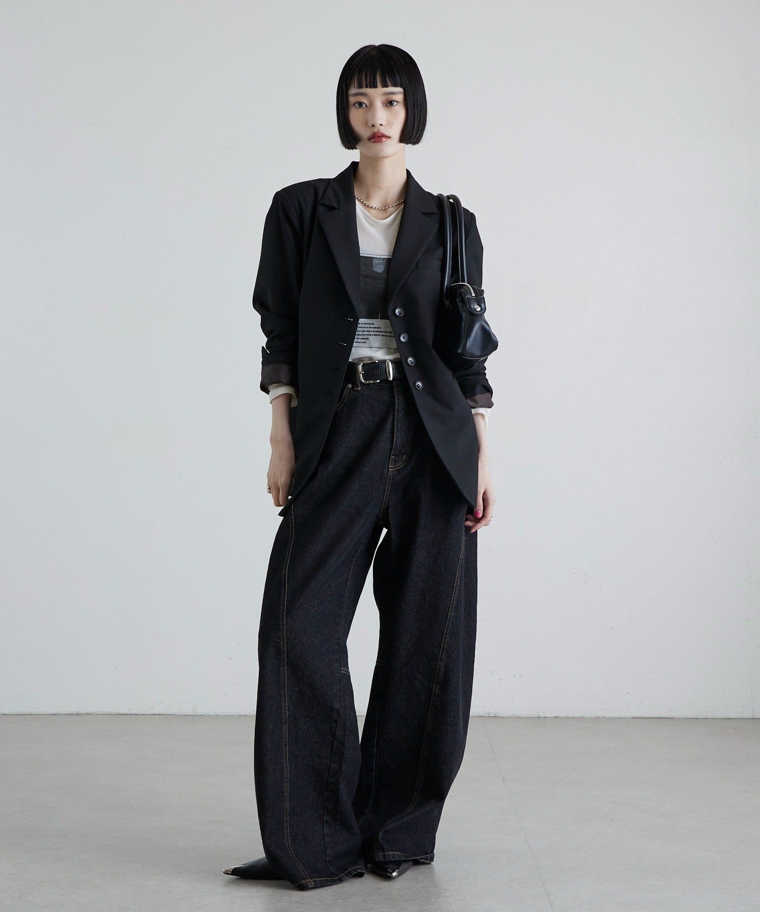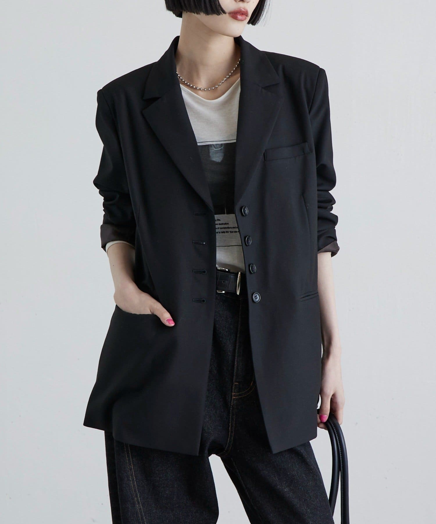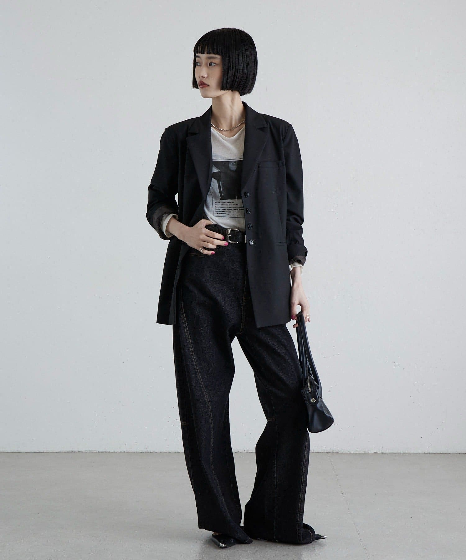 ・メンズライクなテーラリングと、ジャストめなサイズ感で女性らしさも兼ね備えたシルエット。