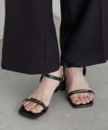 ・踵付きデザインがきちんと感を、華奢なヒールと華奢なストラップが女性らしさを演出。