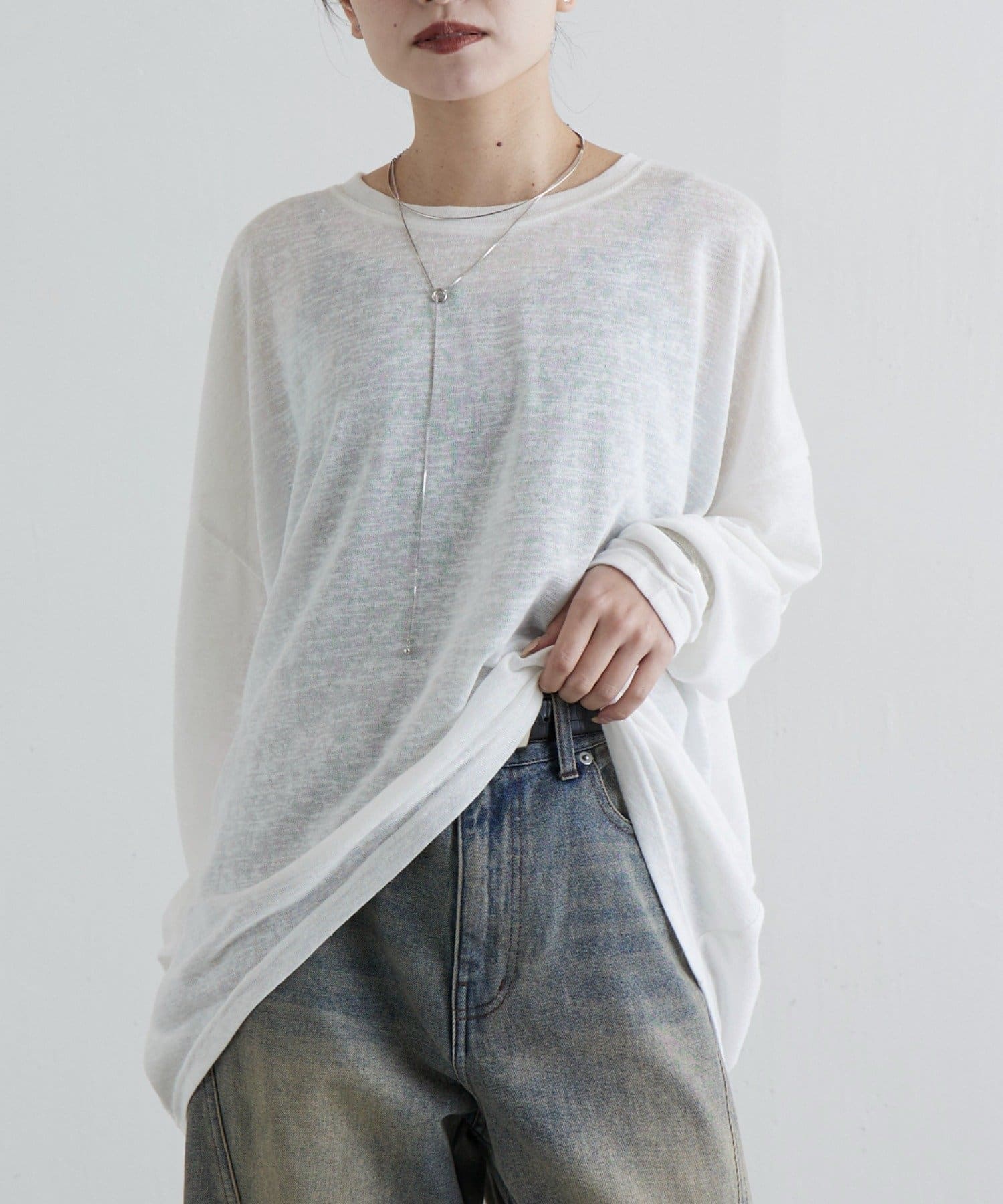 シアー感を活かしたヘルシーな肌見せスタイリングもおすすめです。