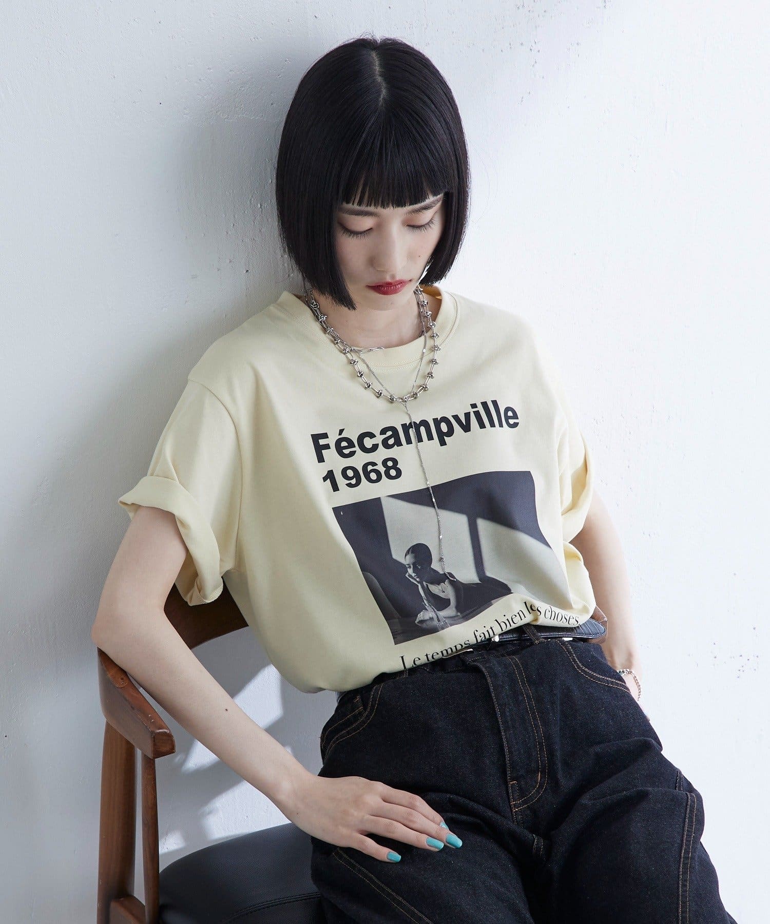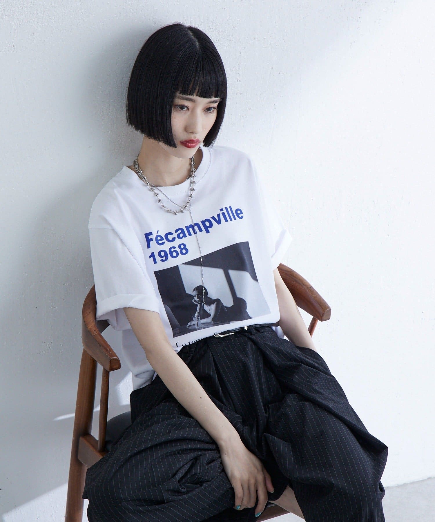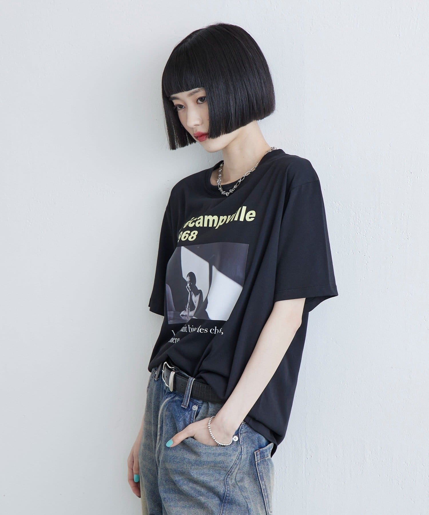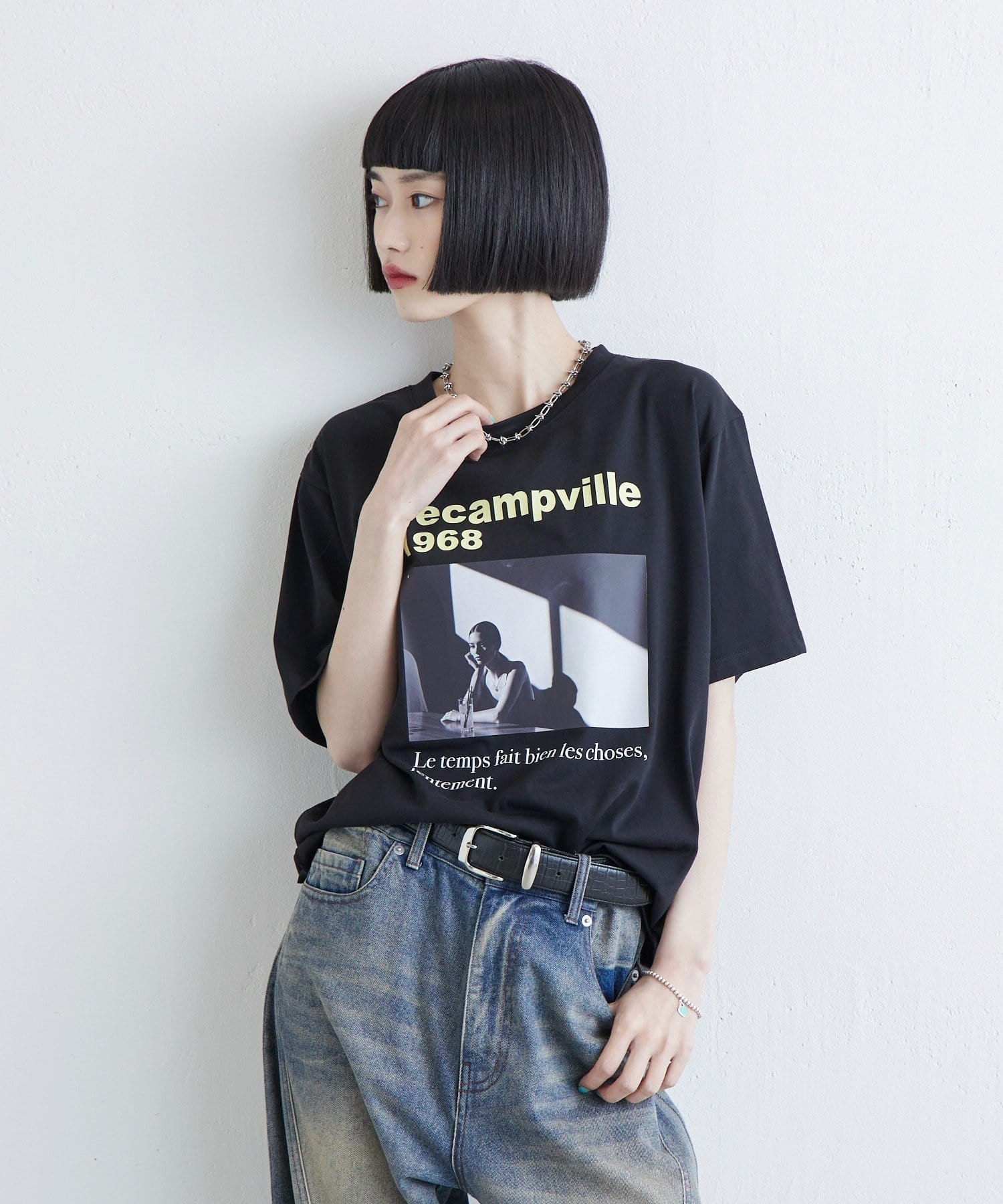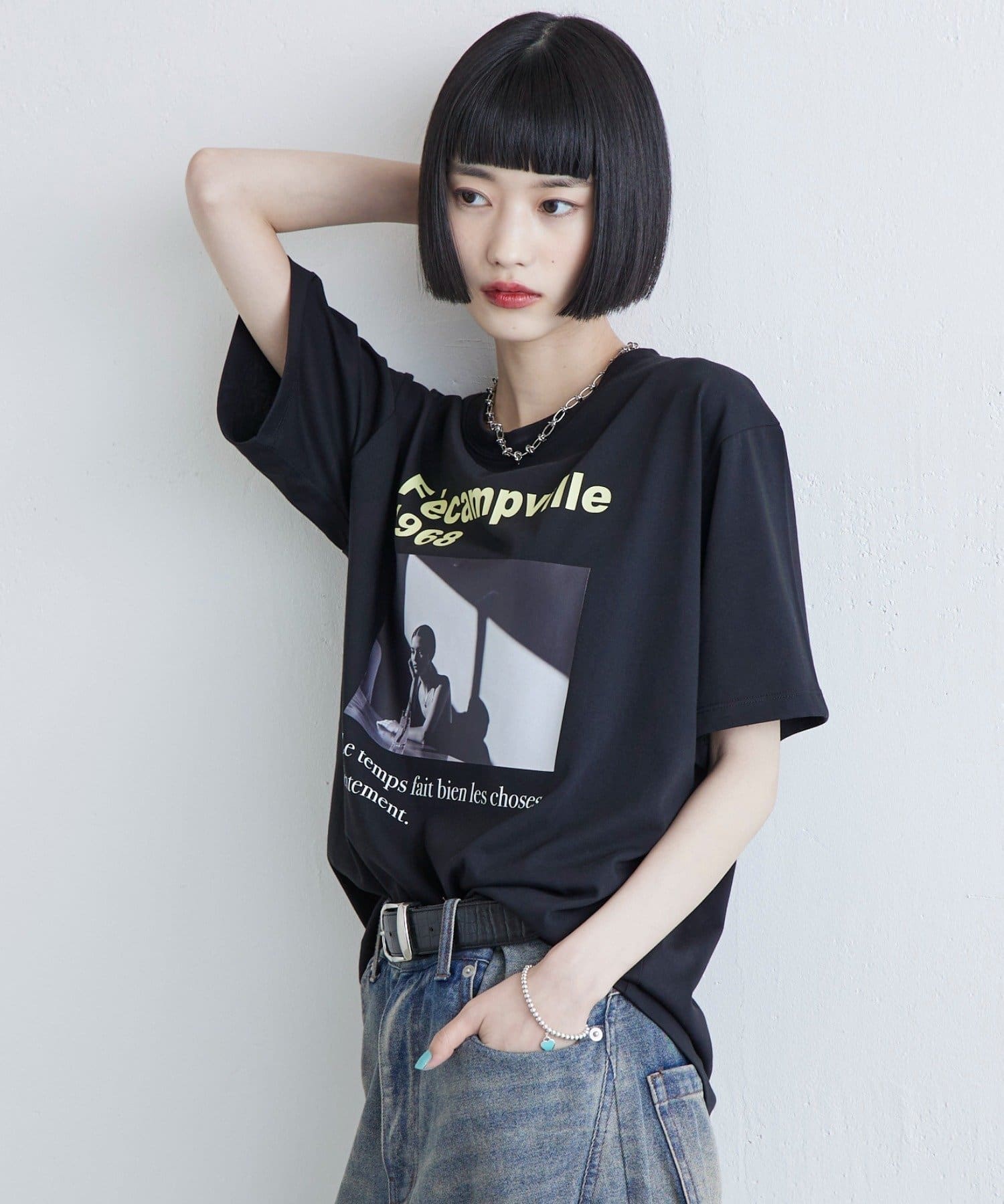 都会的な雰囲気漂うフォトプリントをあしらった半袖Tシャツです。