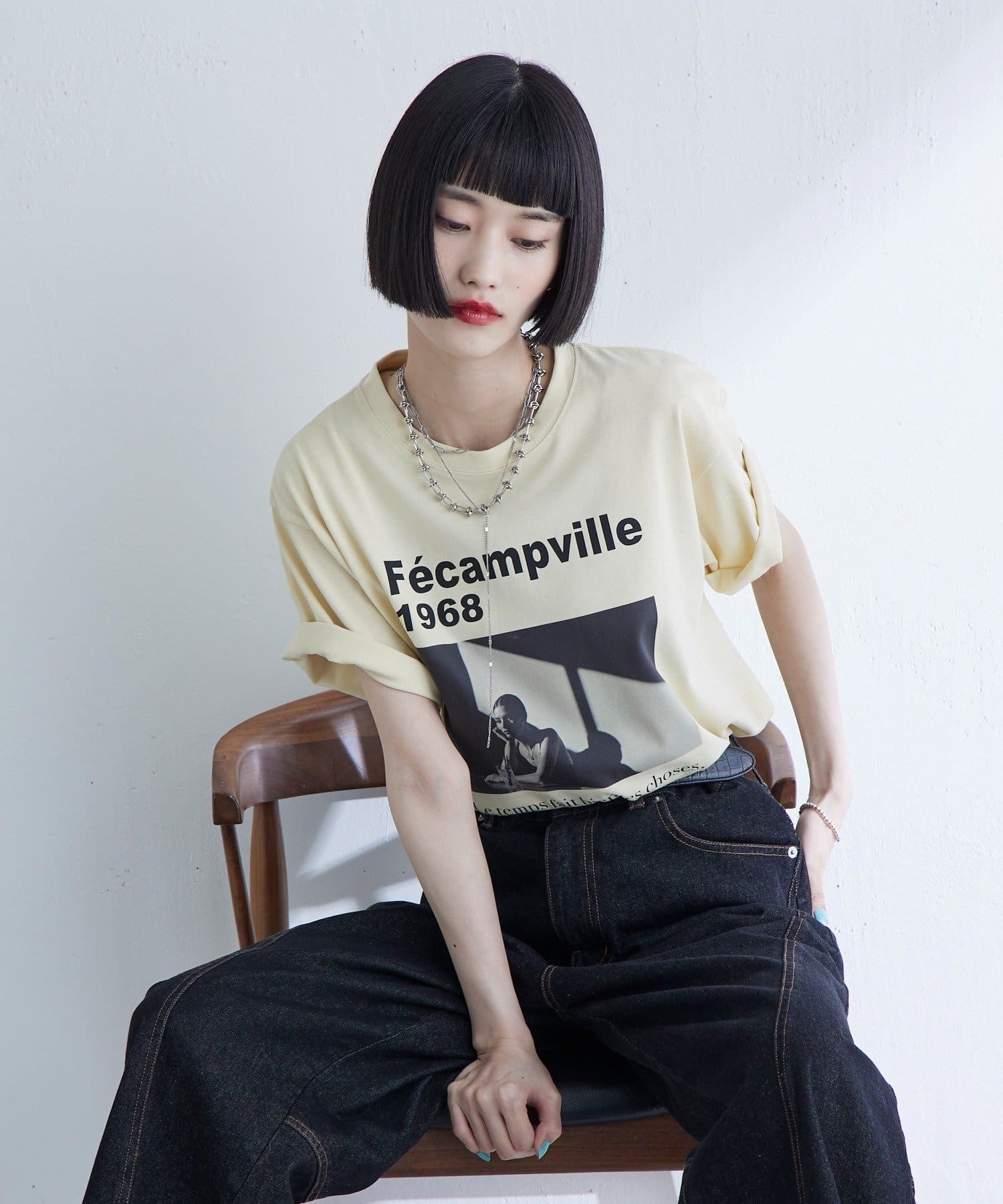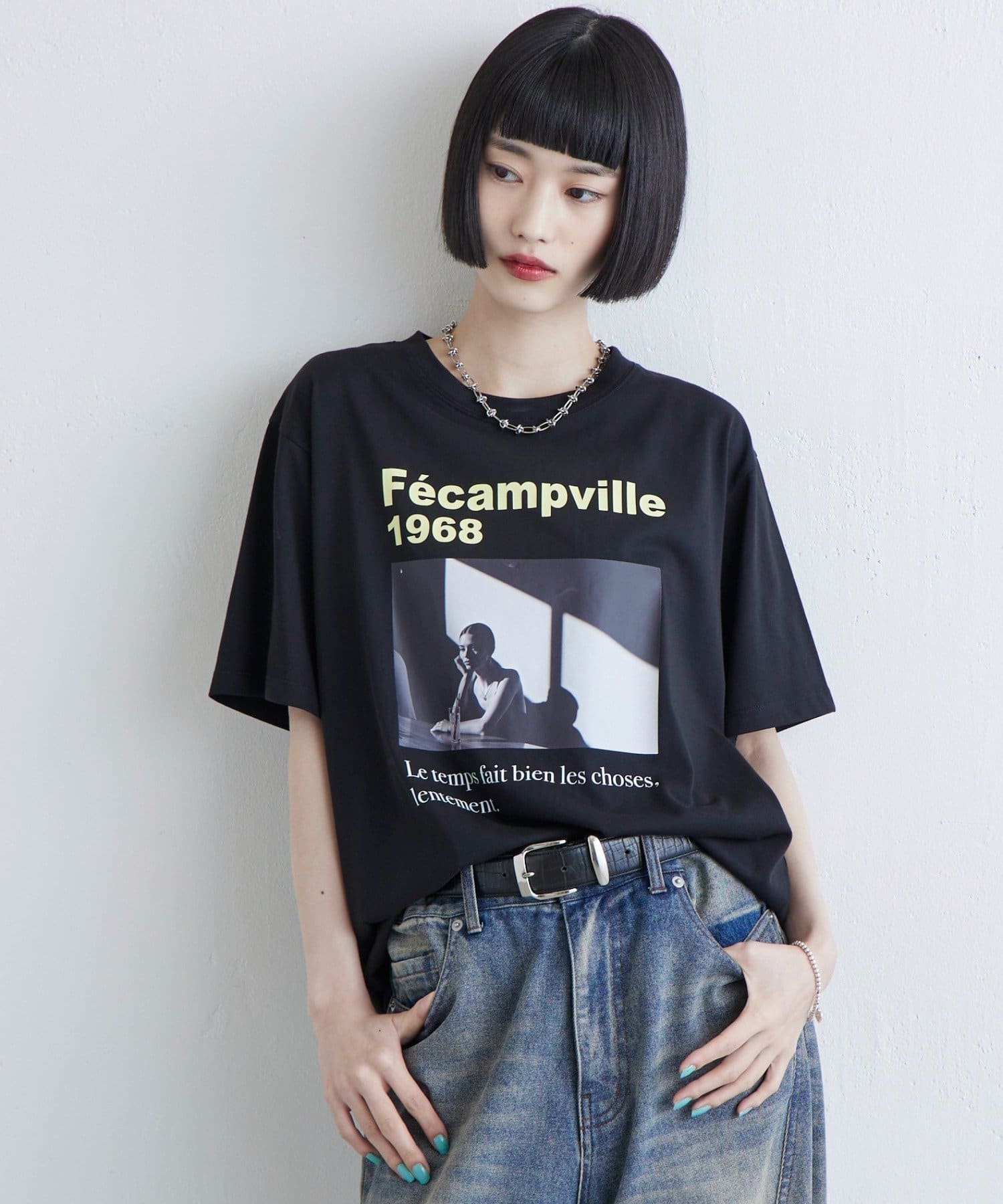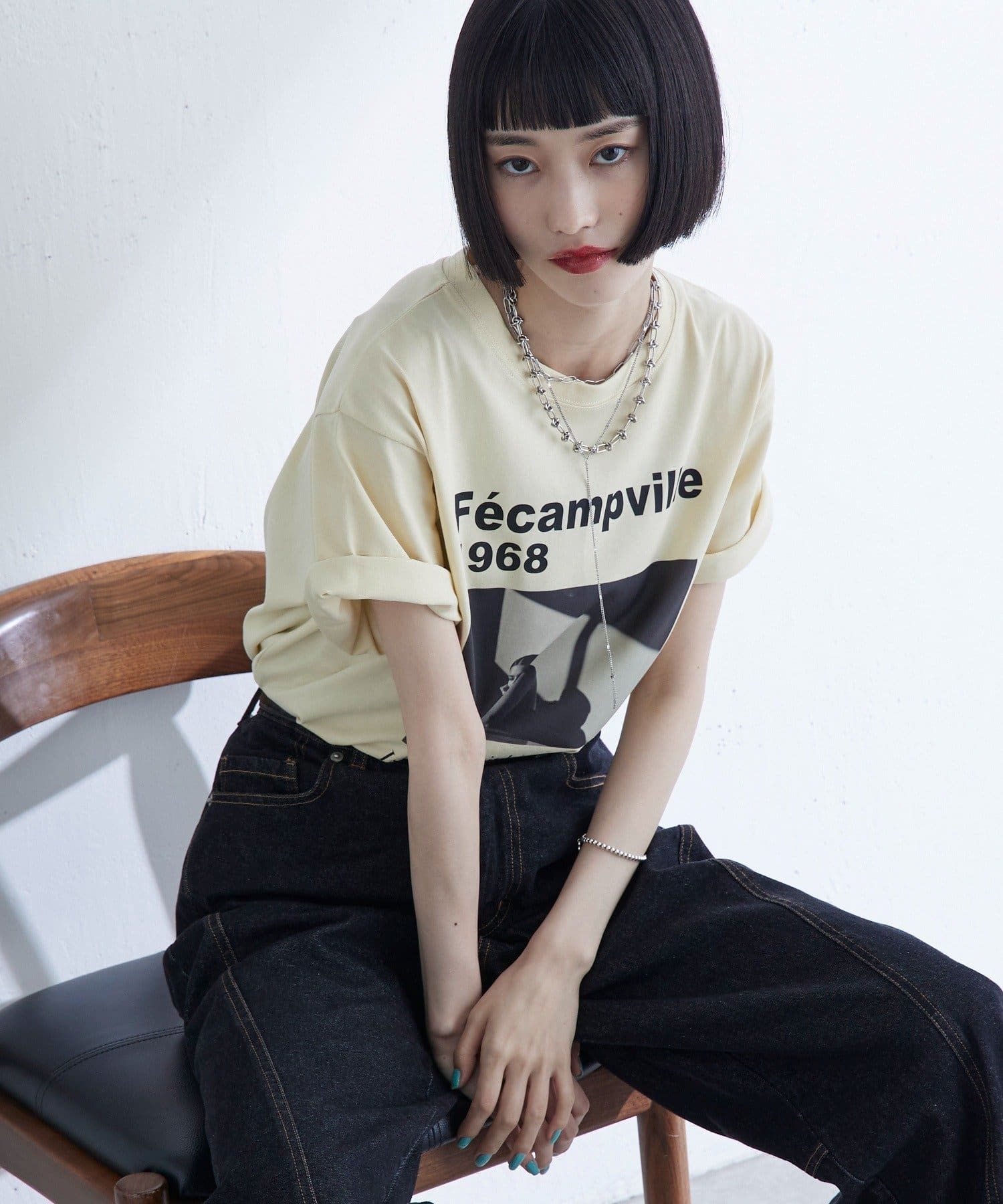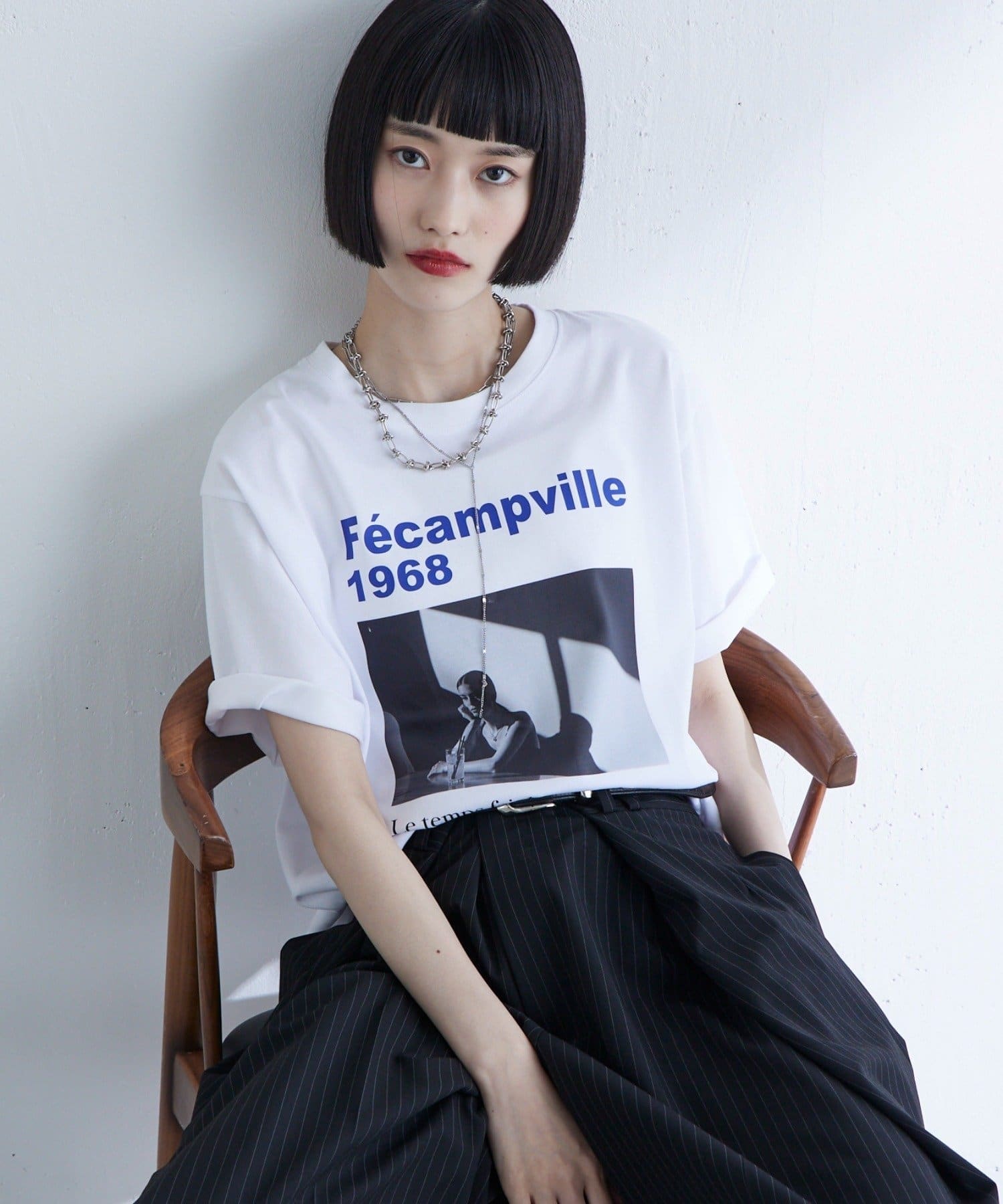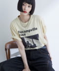 都会的な雰囲気漂うフォトプリントをあしらった半袖Tシャツです。