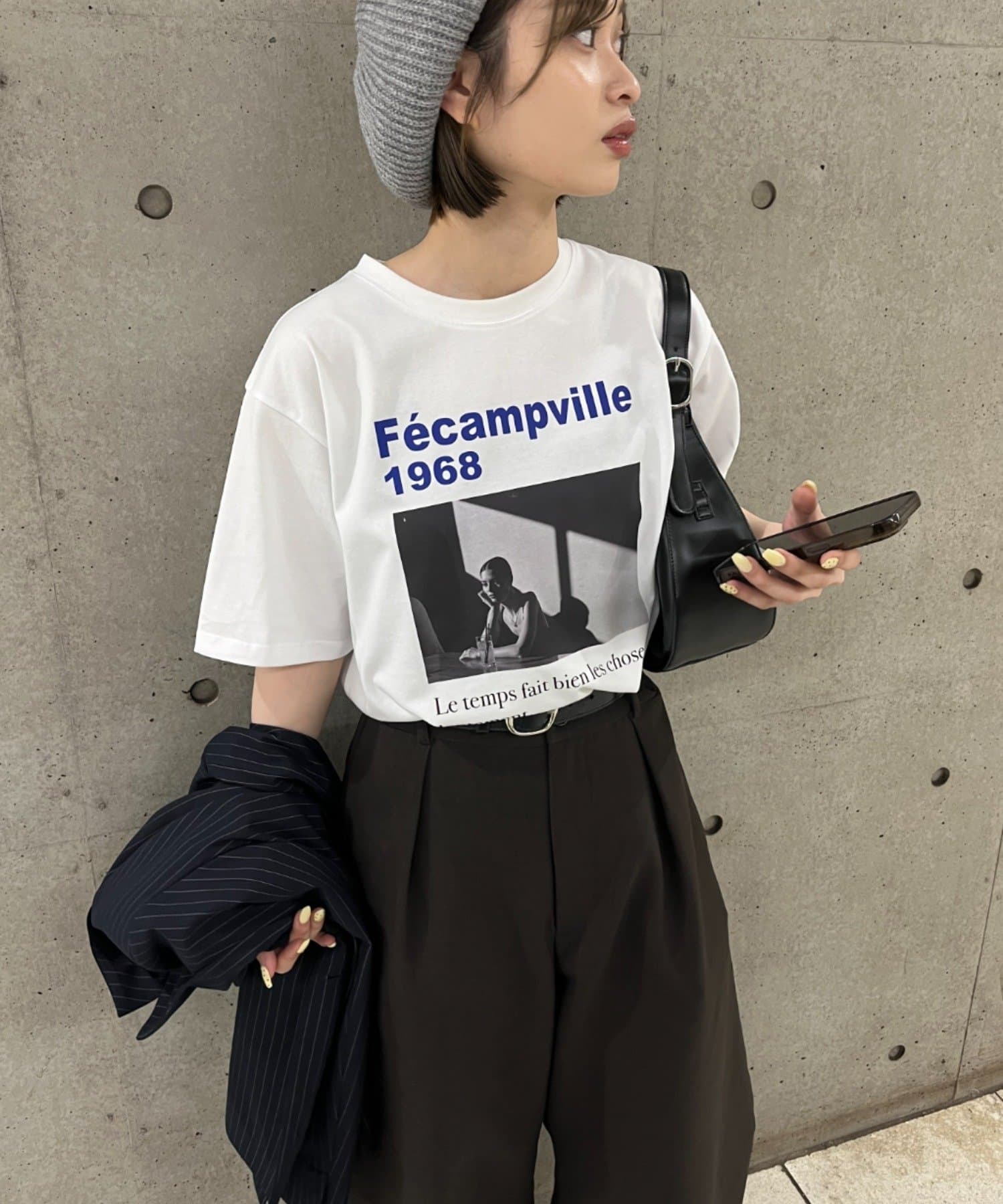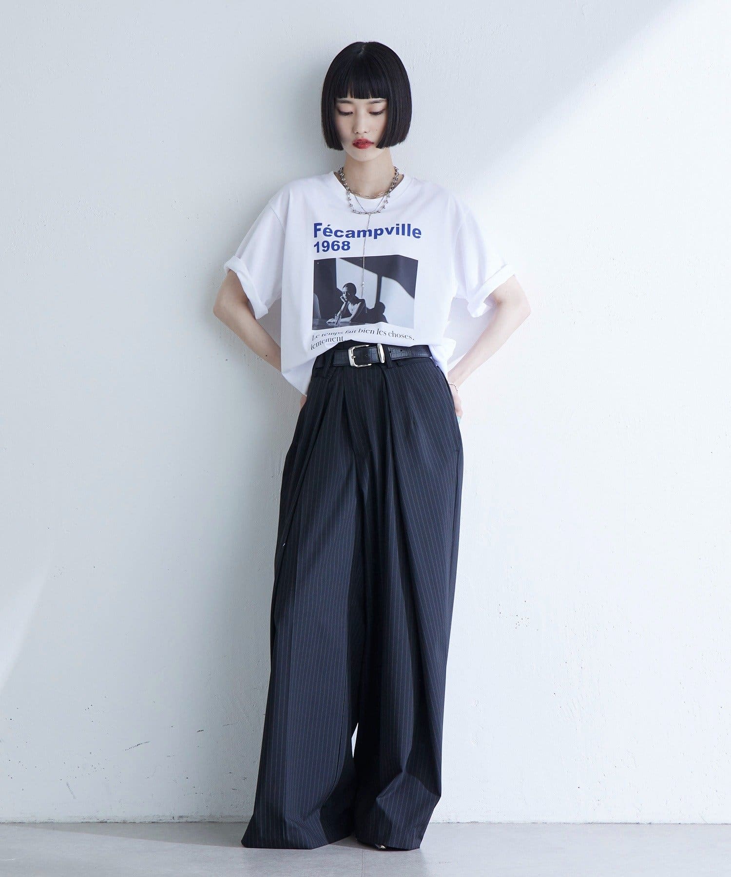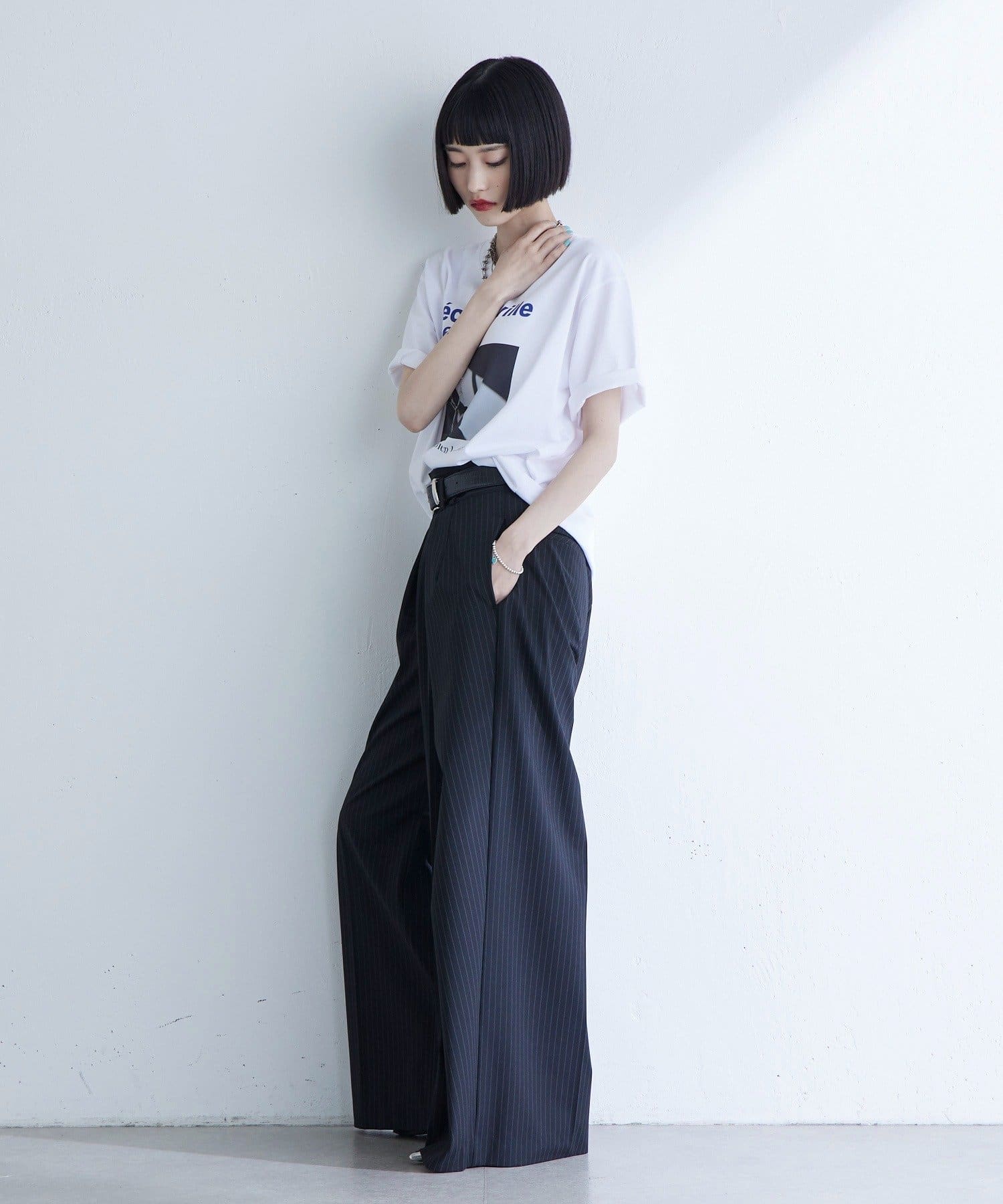 デイリーづかいのしやすいフォトデザインで、ワイドスラックス合わせでキレイめカジュアルスタイルはもちろん