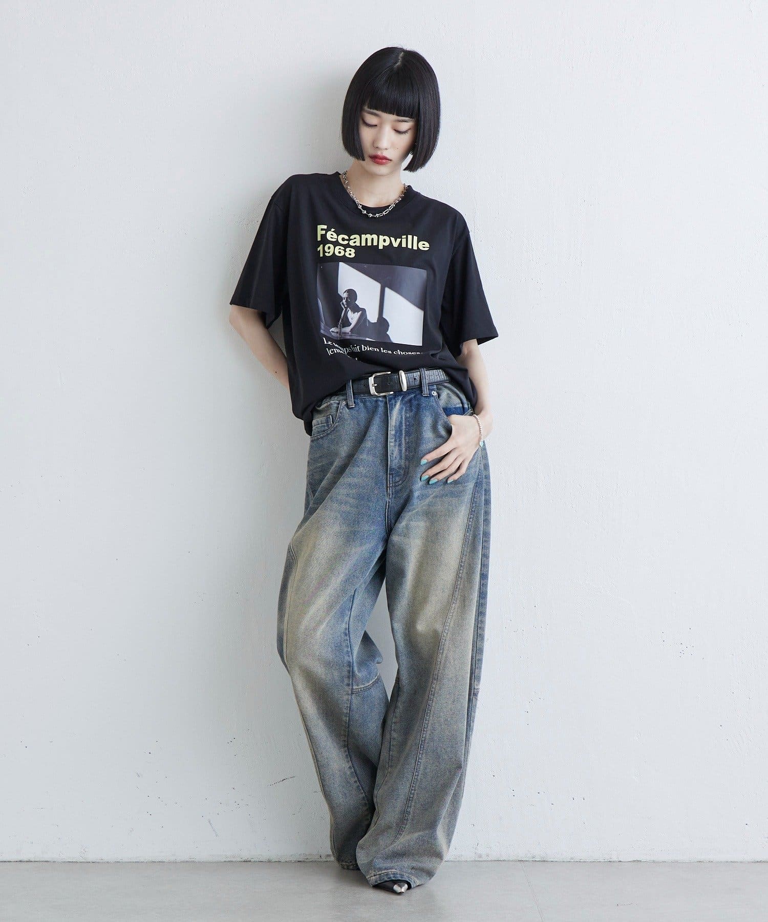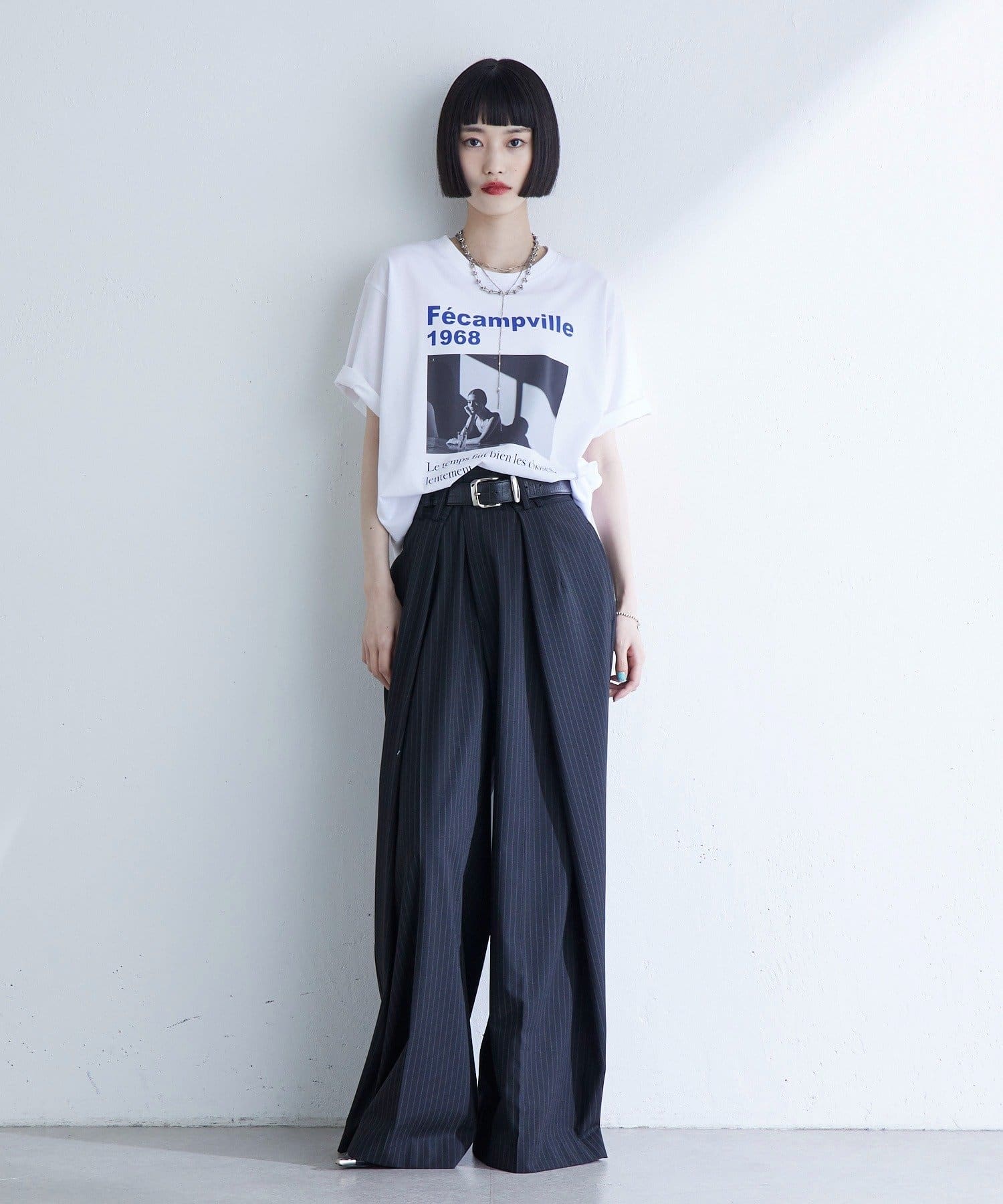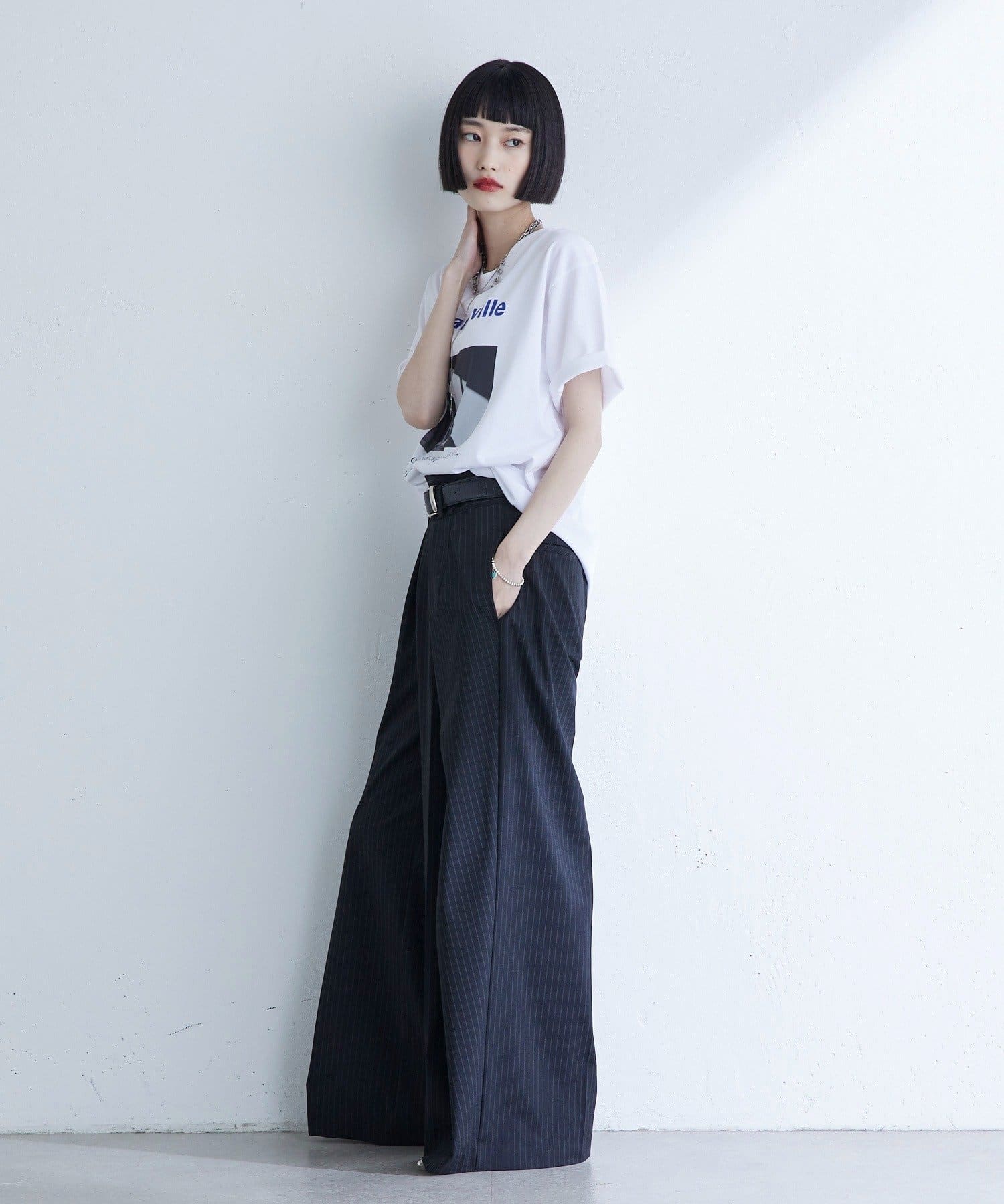 デイリーづかいのしやすいフォトデザインで、ワイドスラックス合わせでキレイめカジュアルスタイルはもちろん