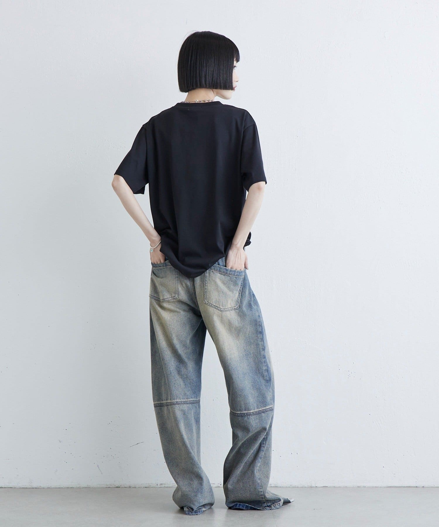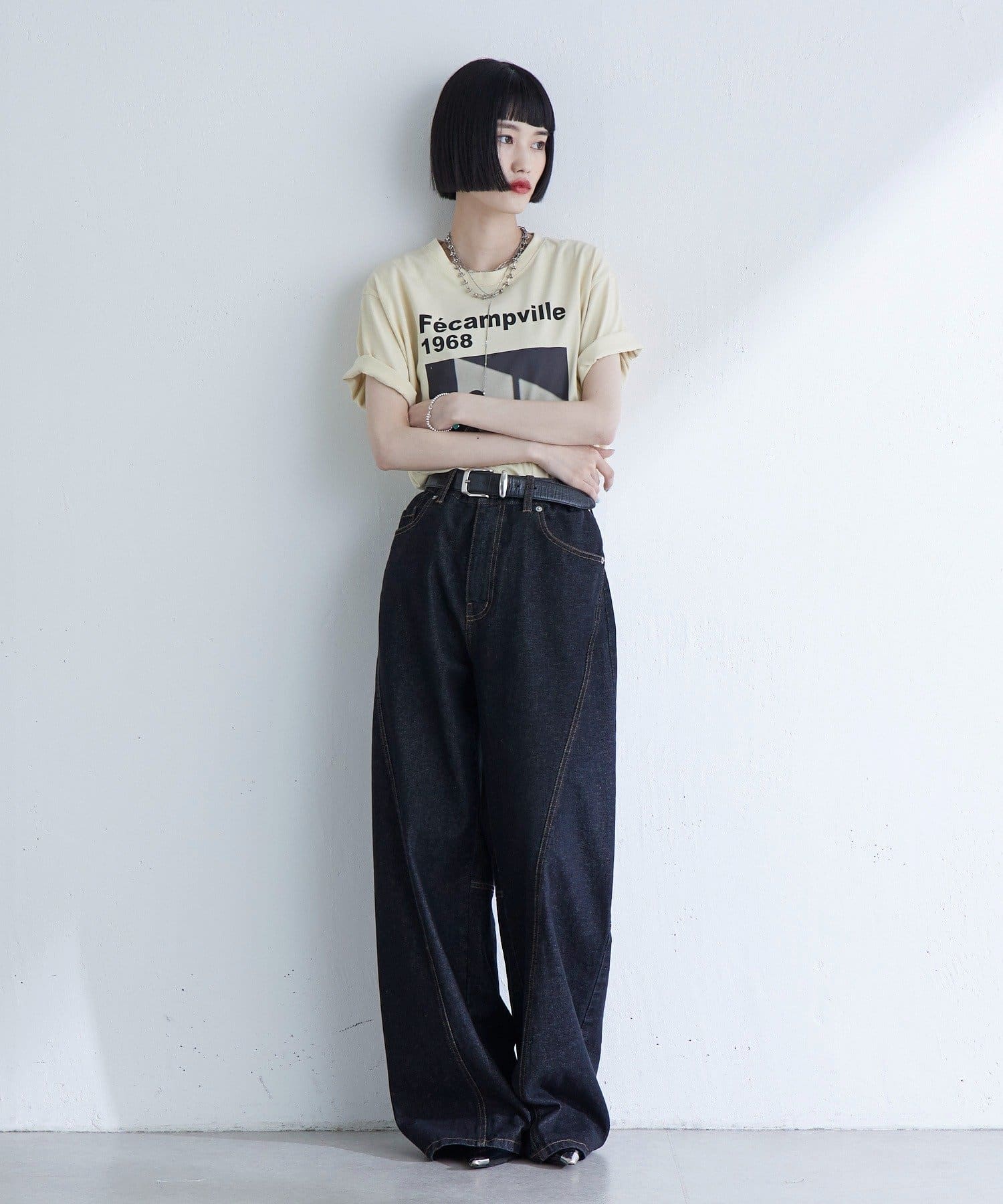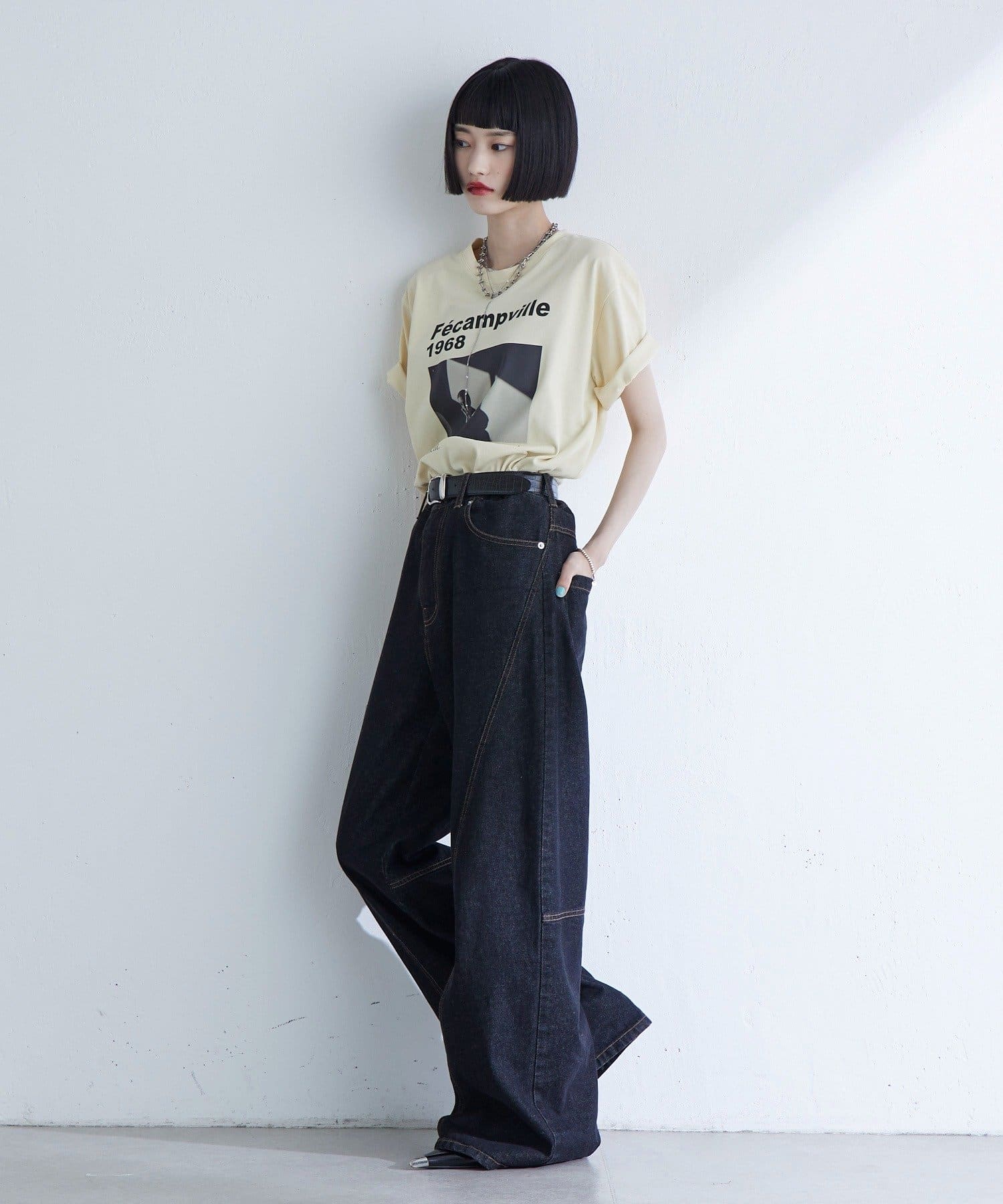 LUZ1061103A0002 切替デザインワイドデニムパンツ