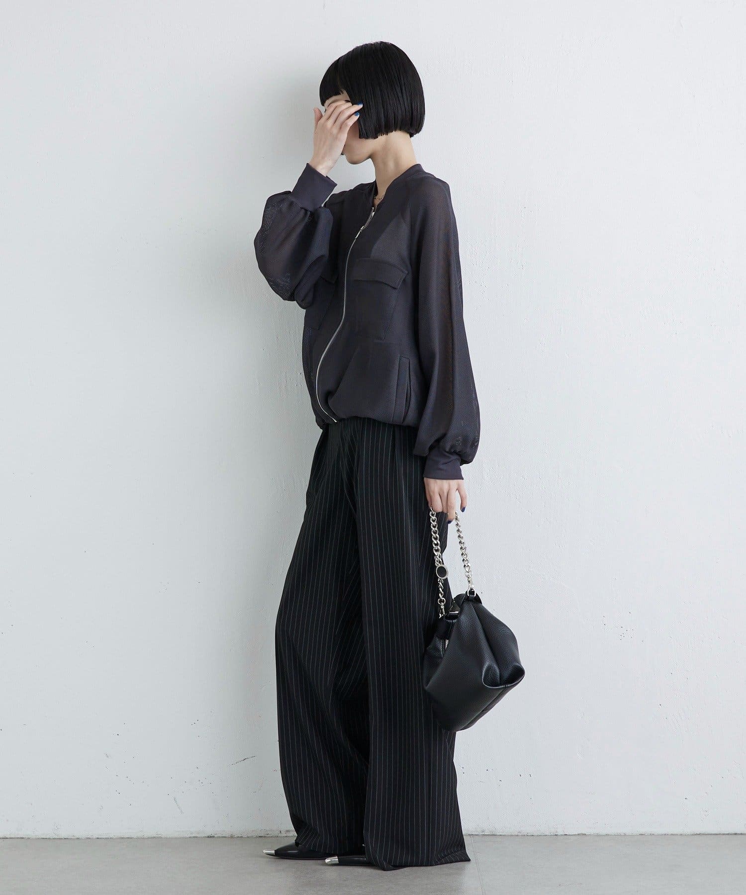 凛とした芯のある女性。 自立した、女性のワードローブをイメージ。洗練されたかっこよさの中に、女性らしさ・かわいさ・セクシーさを持つ。自分自身のスタイル(自分らしさ・個性・生き方・感覚...)を表現できるひとつの手段としての服。肩肘張らない、心地よいリラックス感のあるスタイルを上質な素材、優雅なシルエットで提案。