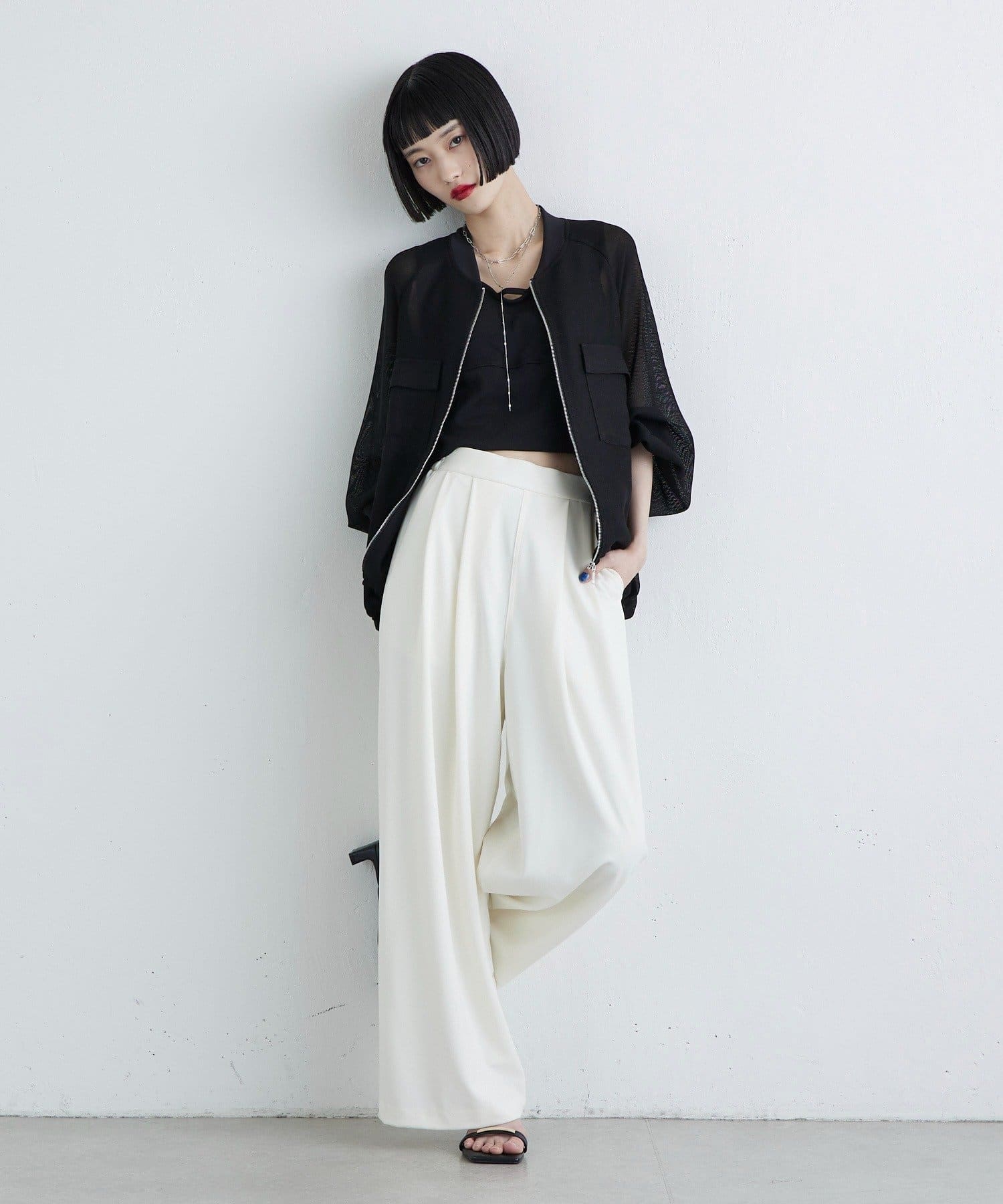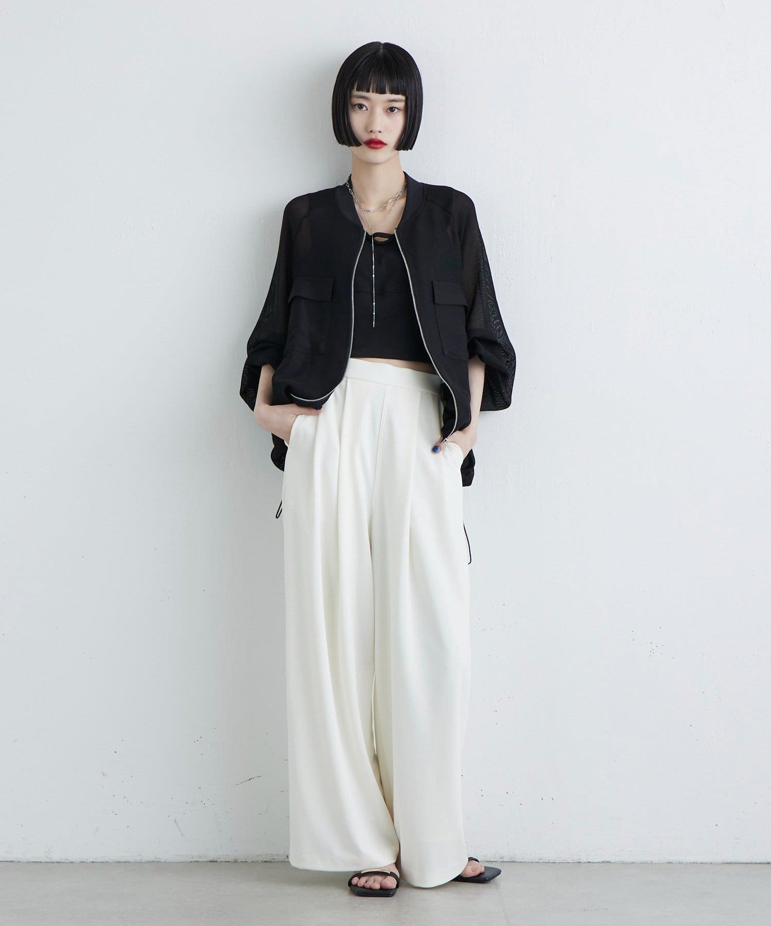 ・メッシュとシアー感のある素材を使用。