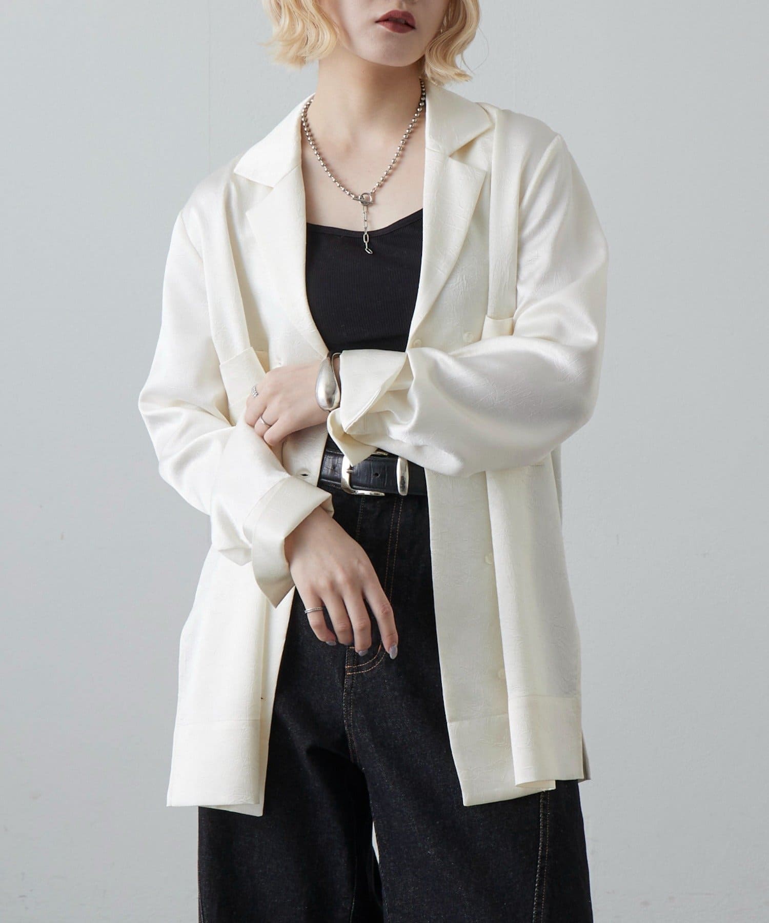 ・上品な光沢感が女性らしさを演出してくれるジャケットライクシャツ。