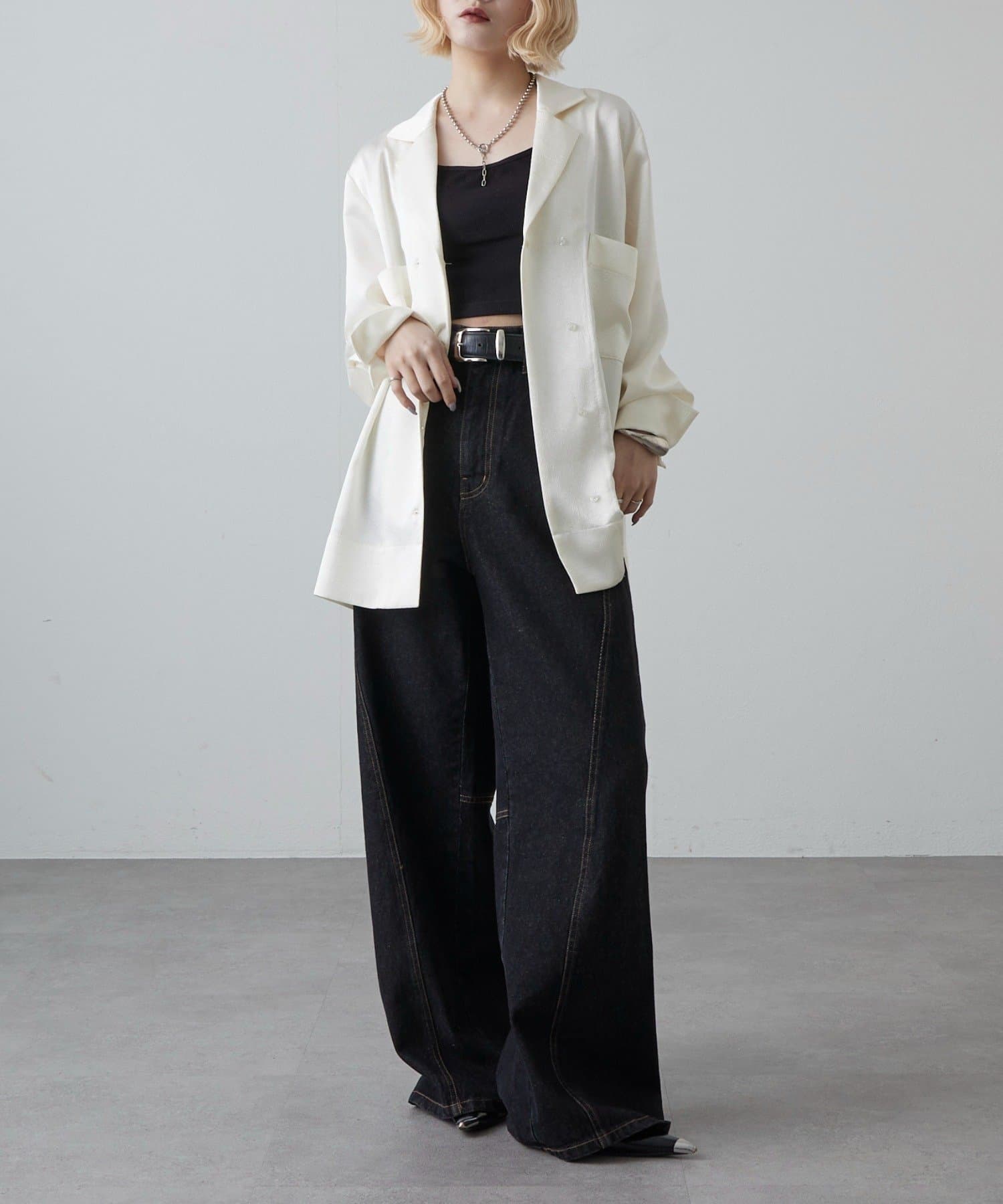 ・ワイドスラックスと合わせてキレイめコーデはもちろん、デニム合わせでキレイめカジュアルなスタイルも今季らしくてオススメです。