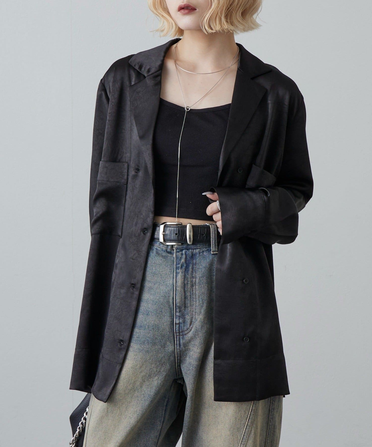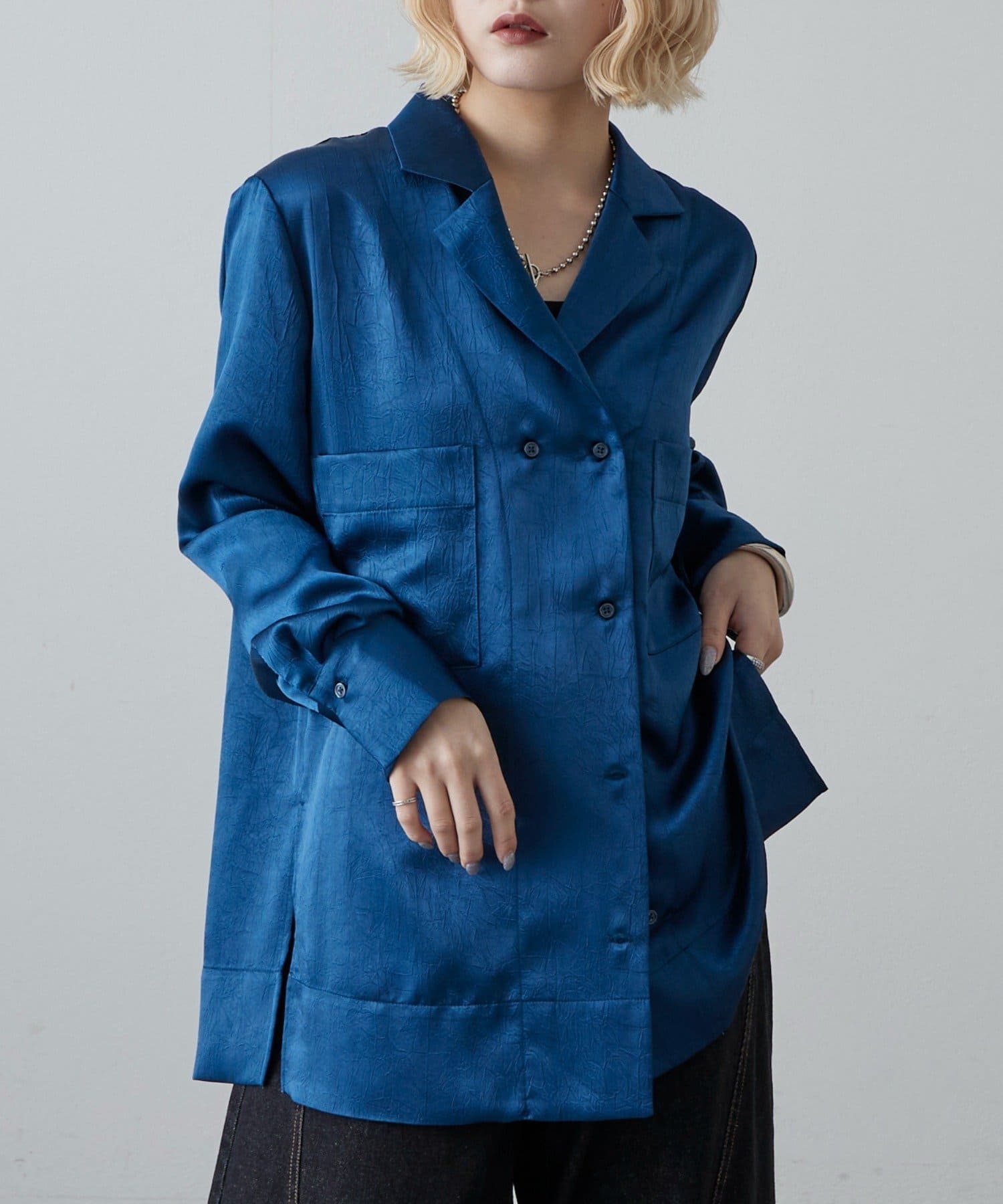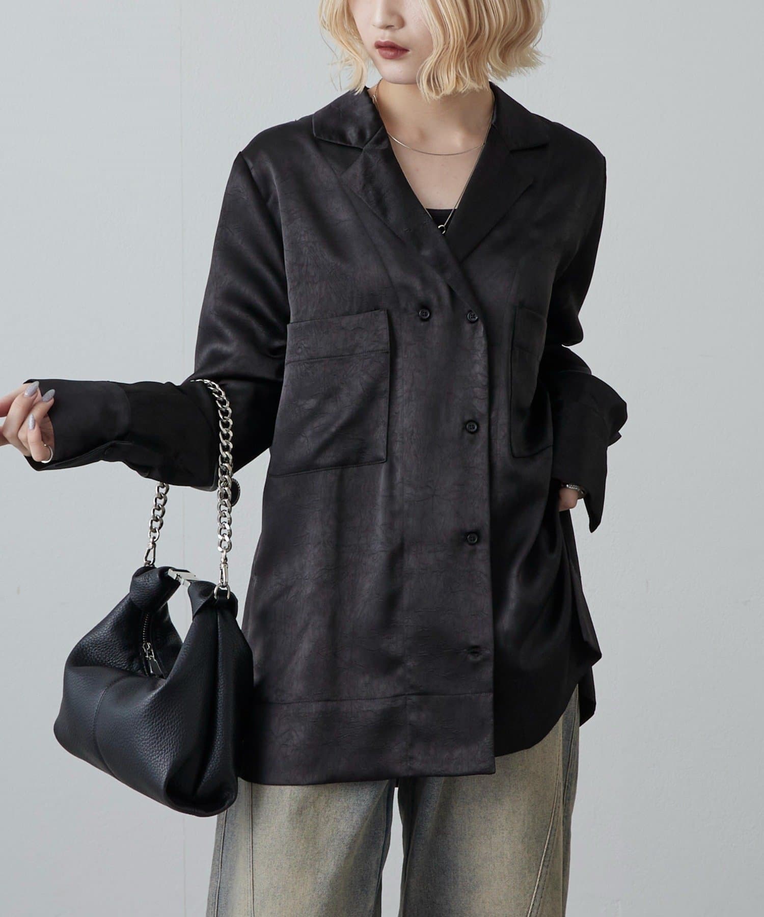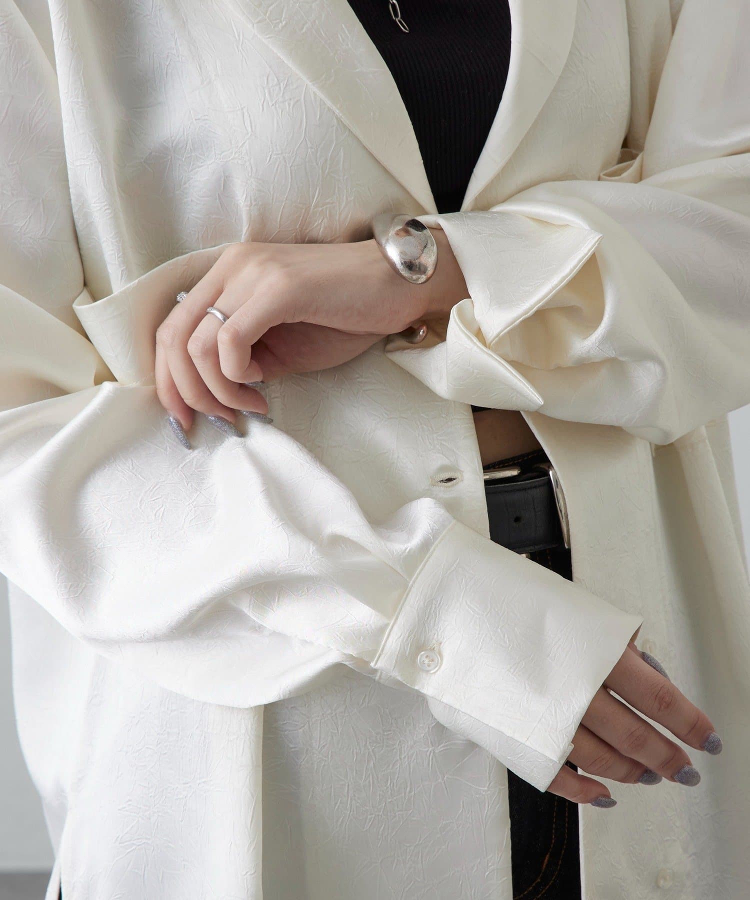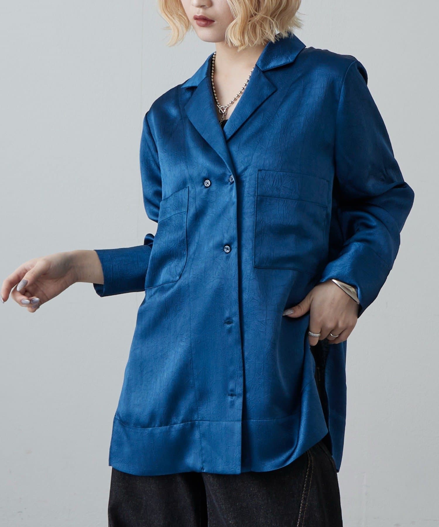 ・上品な光沢感が女性らしさを演出してくれるジャケットライクシャツ。