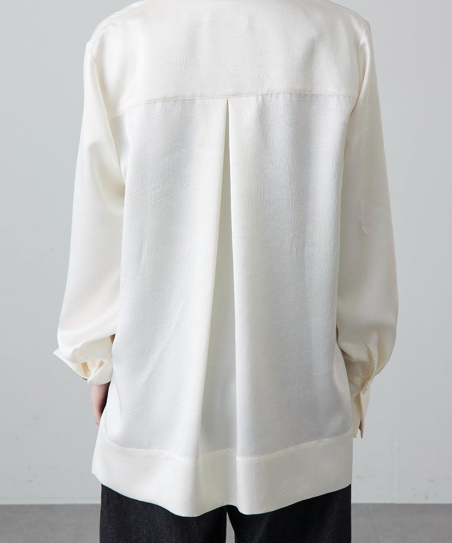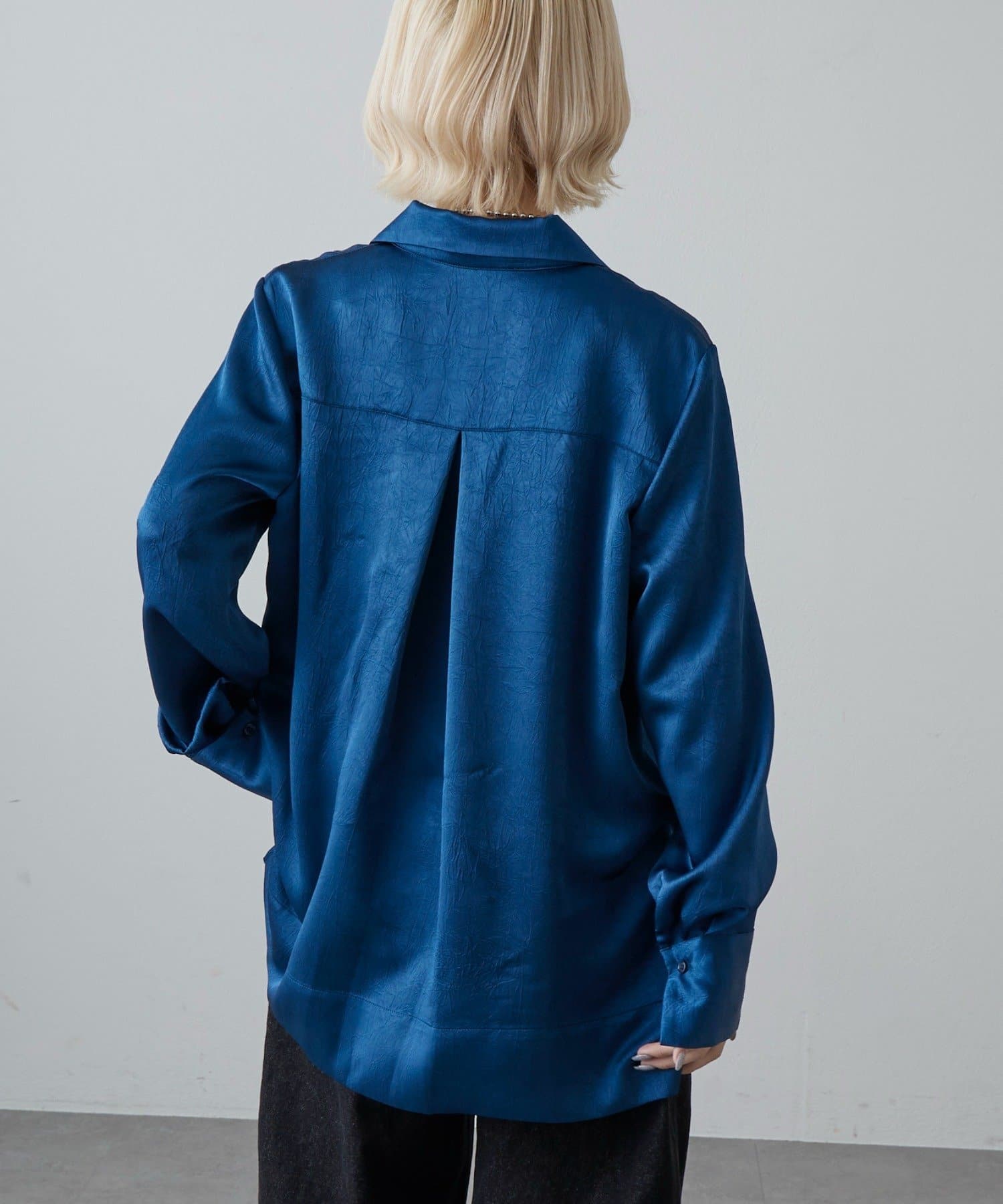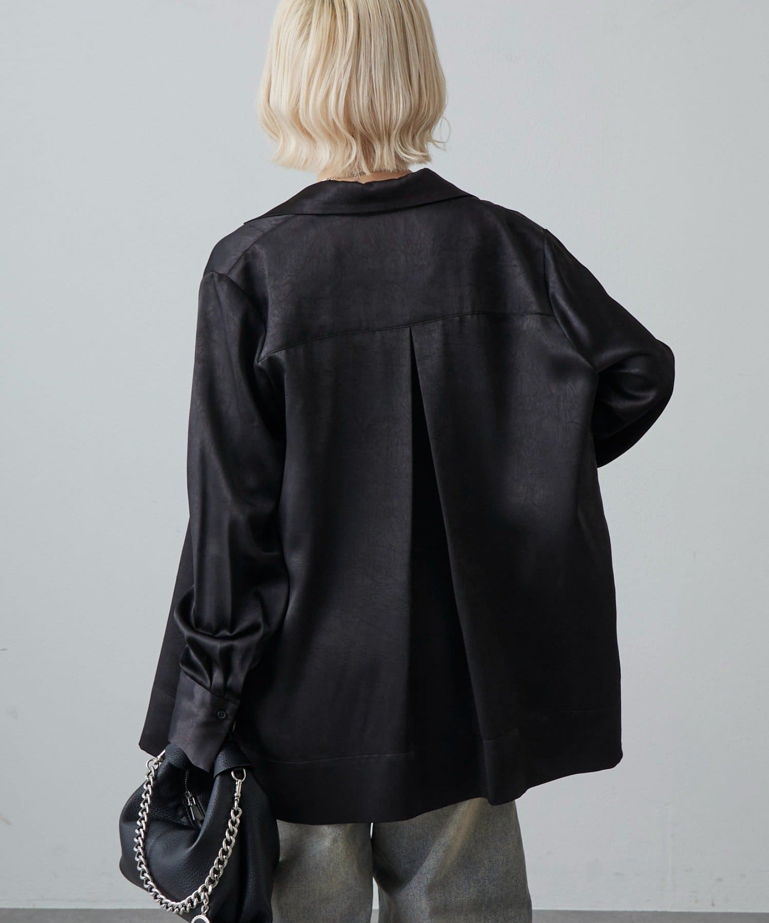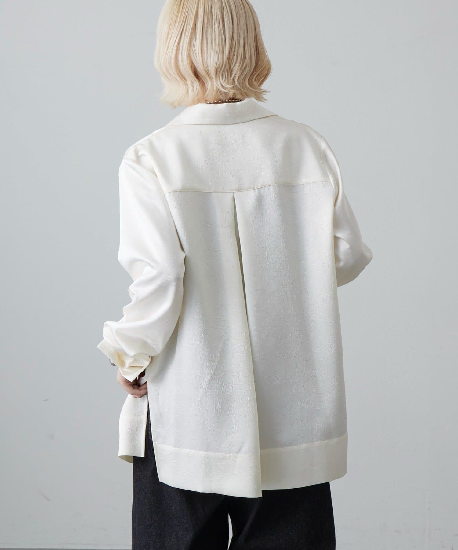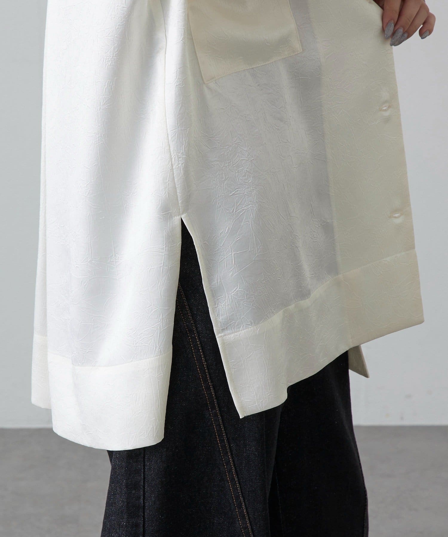・上品な光沢感が女性らしさを演出してくれるジャケットライクシャツ。