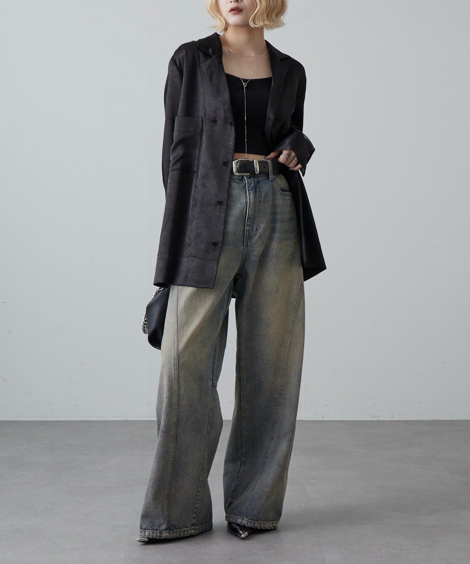 ・ワイドスラックスと合わせてキレイめコーデはもちろん、デニム合わせでキレイめカジュアルなスタイルも今季らしくてオススメです。