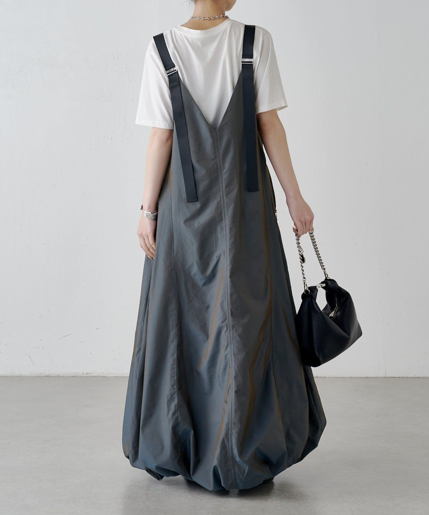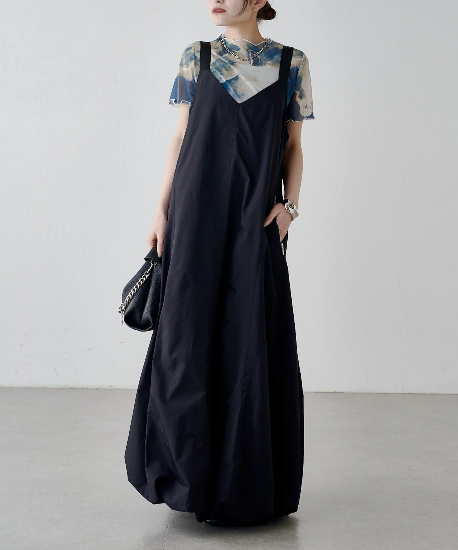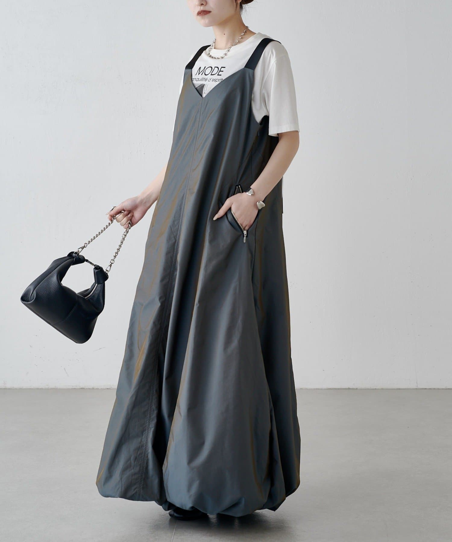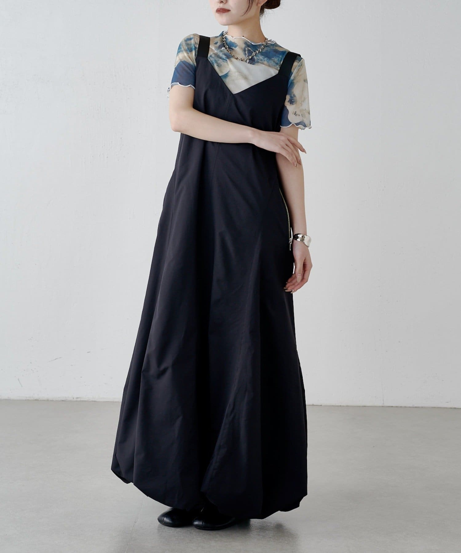 ・動きのあるバルーンシルエットがトレンドライクな印象のキャミワンピース。