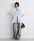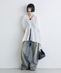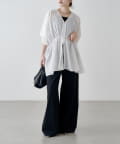 ゆったりシルエットのシャツなので、ワイドなスラックスやデニムパンツと合わせると綺麗なバランスで着こなせます!