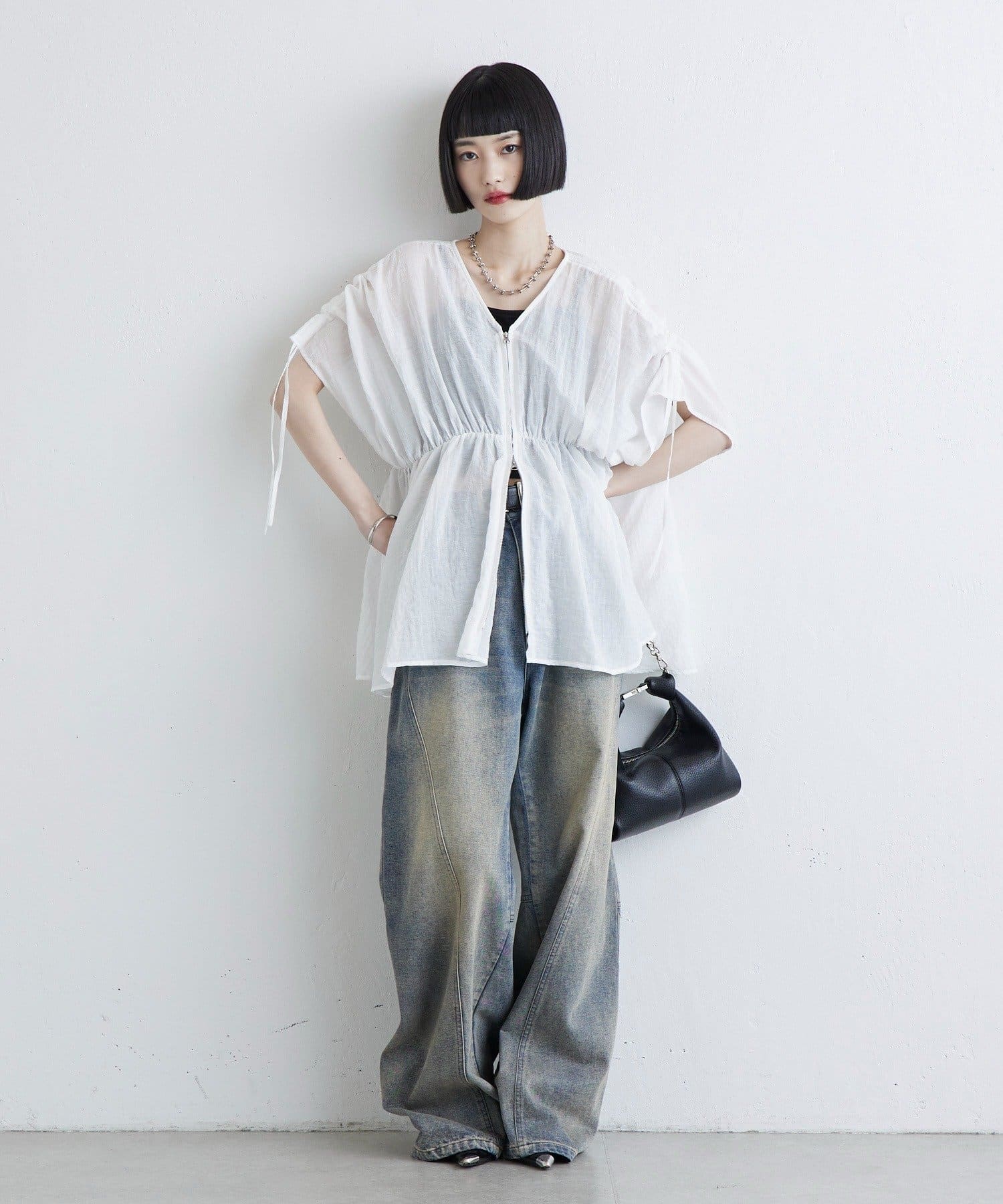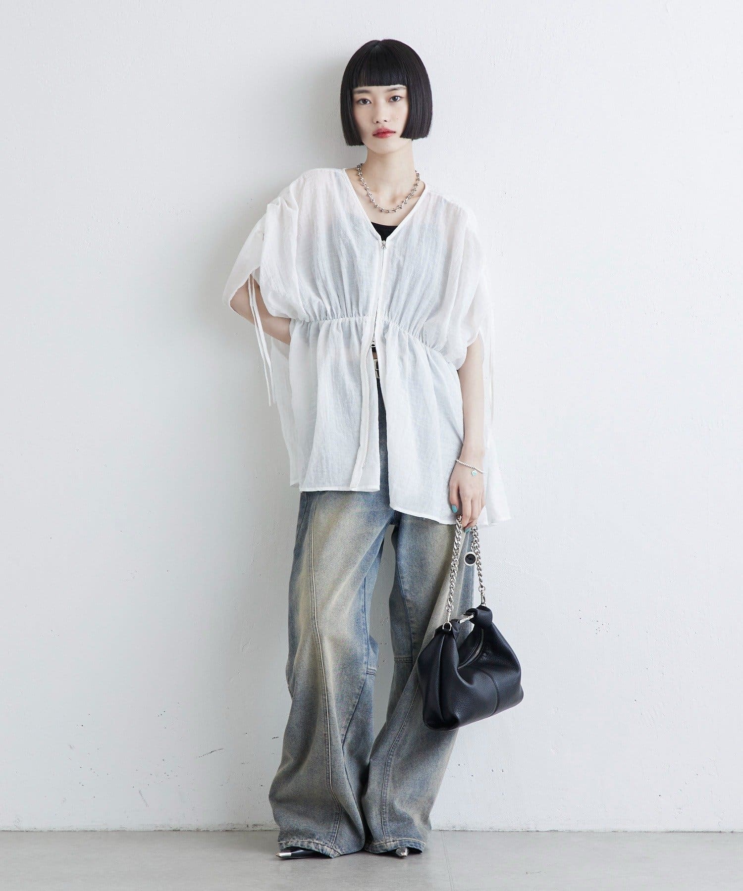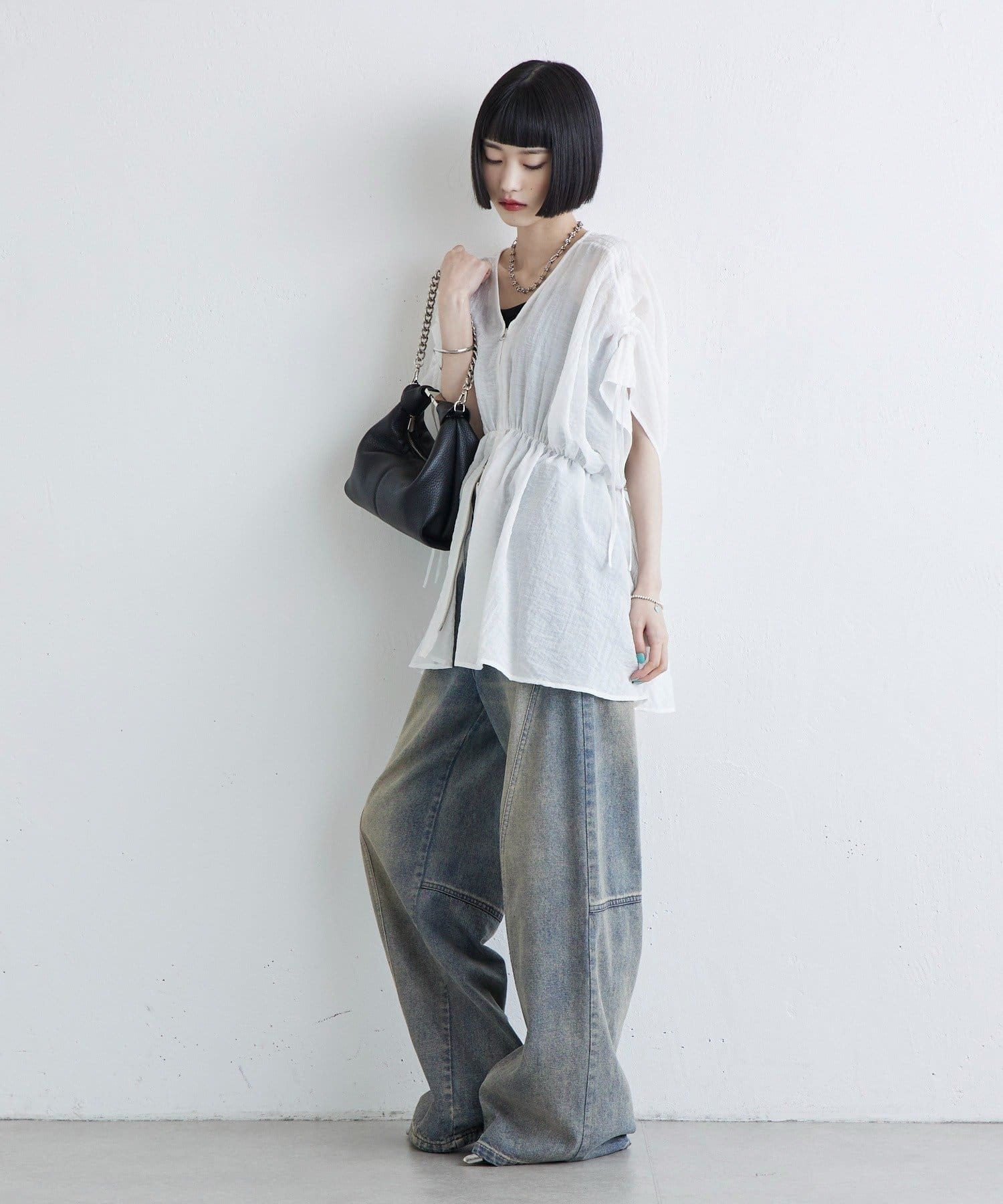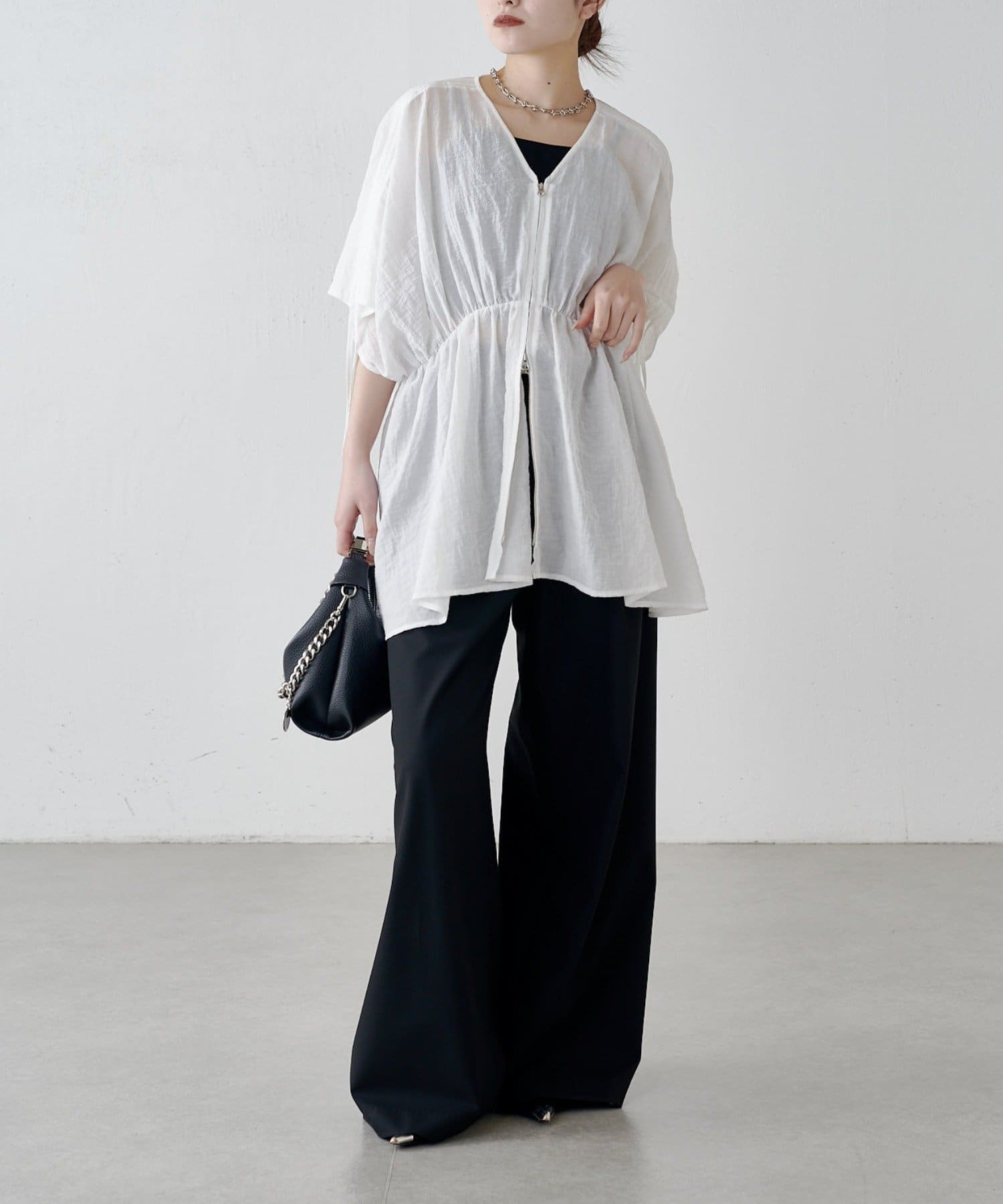 一枚で着るのはもちろん、キャミやタンクトップの上から羽織った