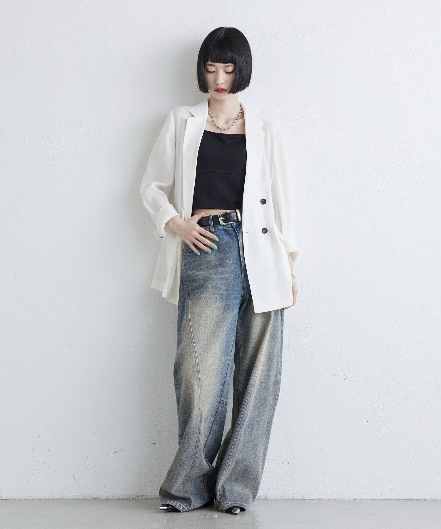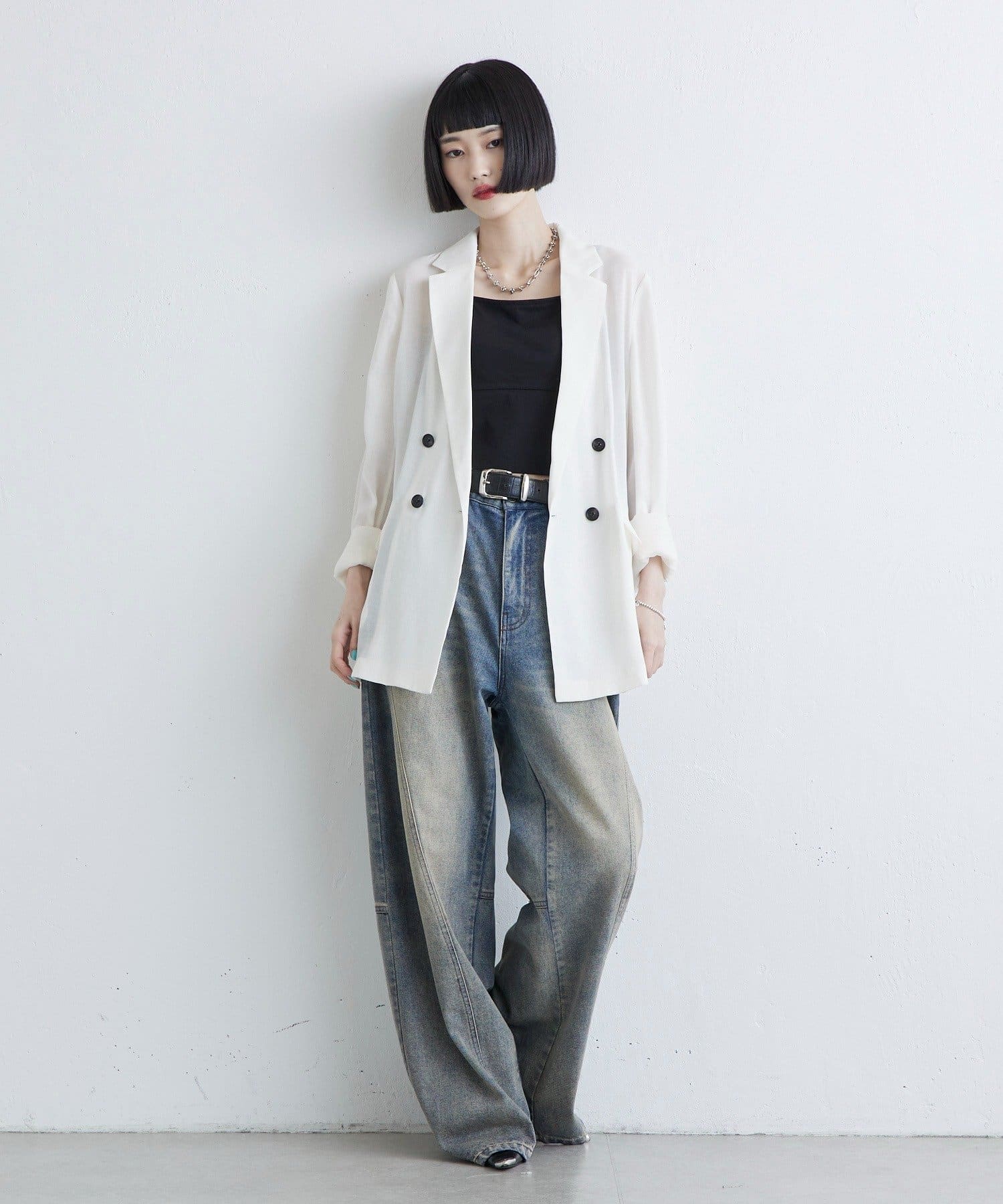 ロゴTなどのカジュアルなインナーと合わせてデニム合わせをすると