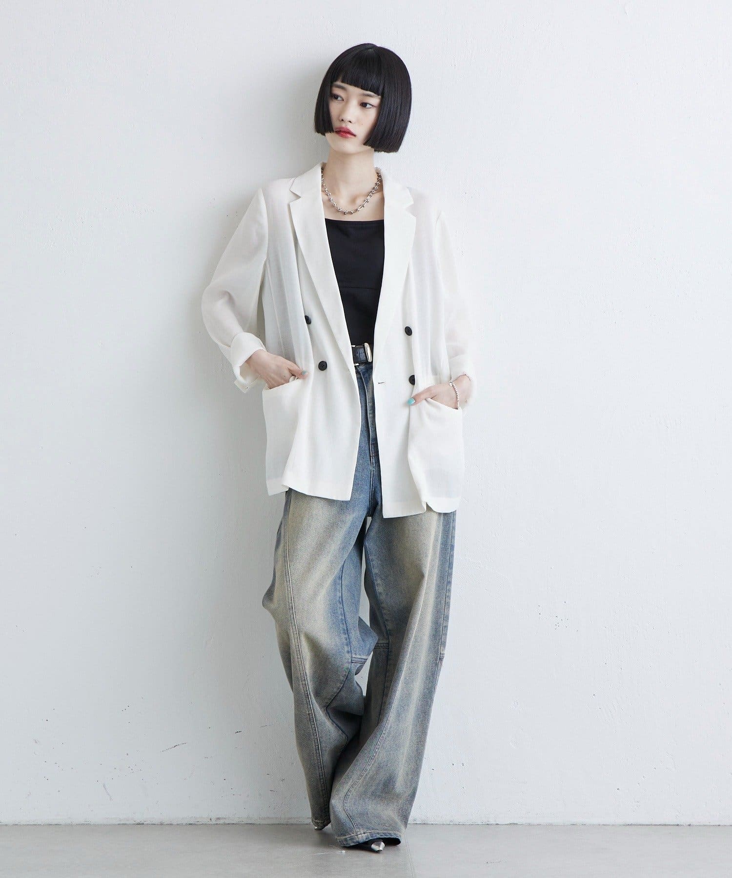 また、ダブルジャケットなのでプライベートでもオフィスでもシーン選ばず着用しやすいです◎