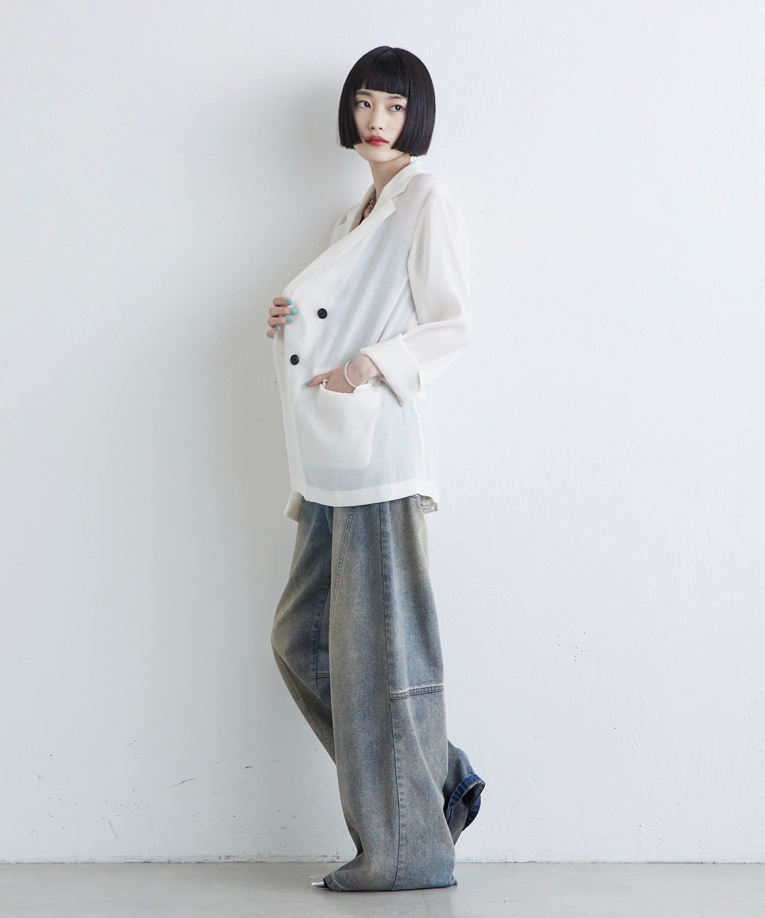 夏まで涼しく着ていただけるように、シアー素材を使用しました。
