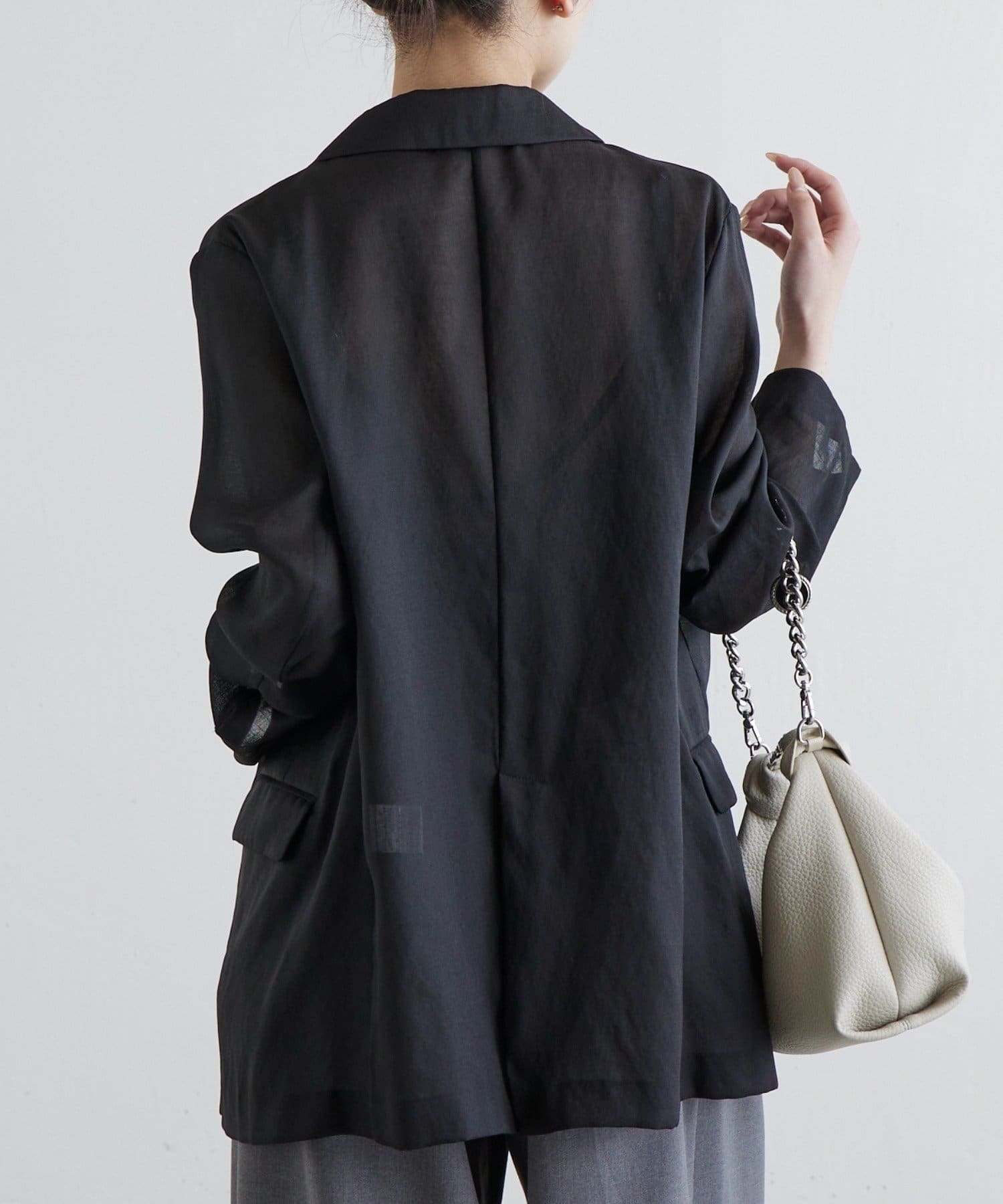 裏地なしの一枚仕立てに、やや透け感をプラスしたことで、涼しげな印象をプラス〇
