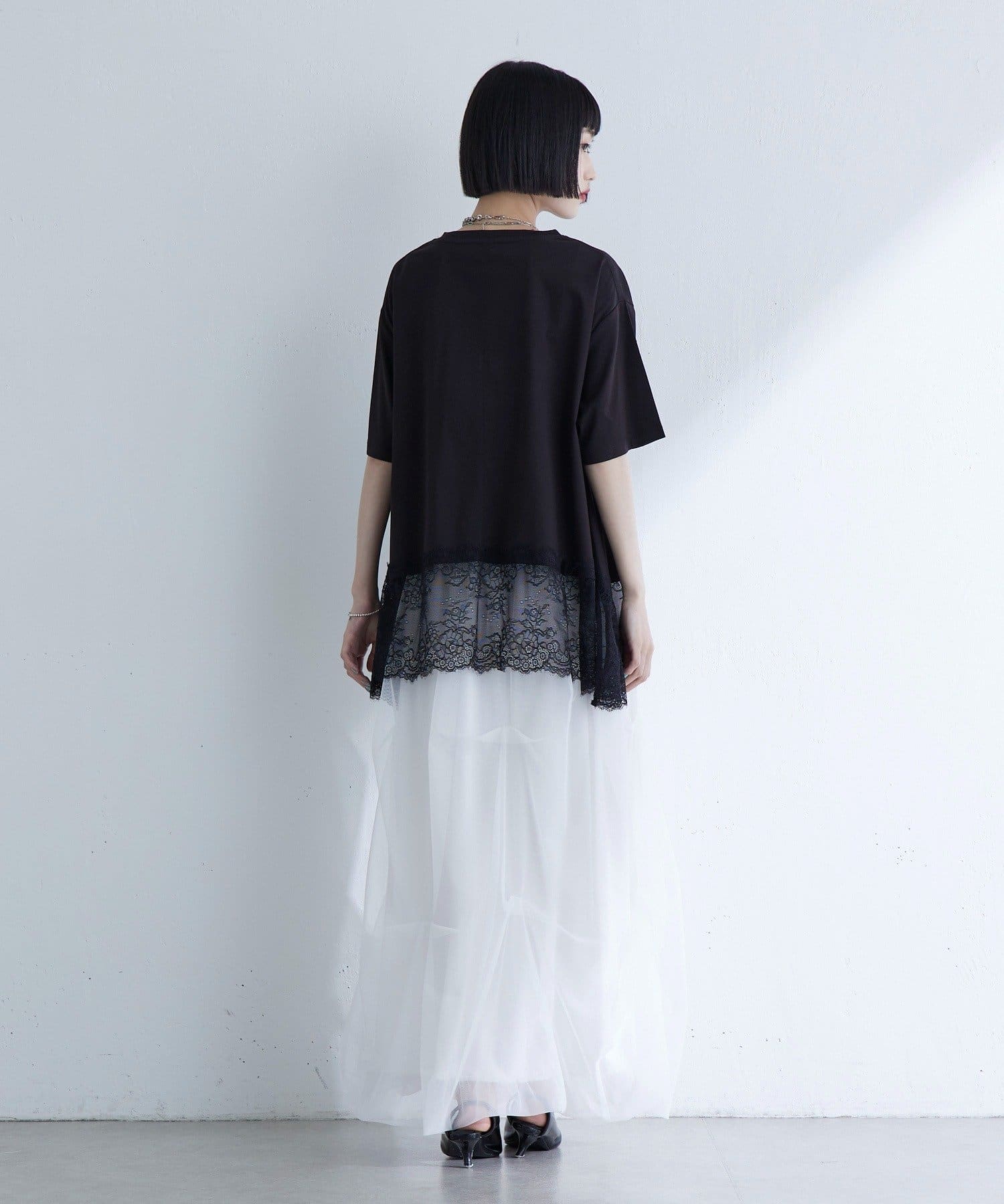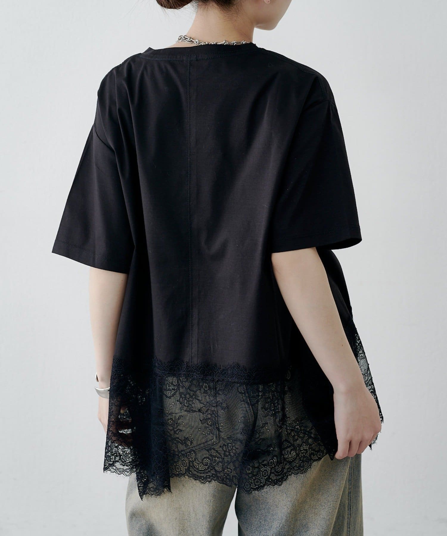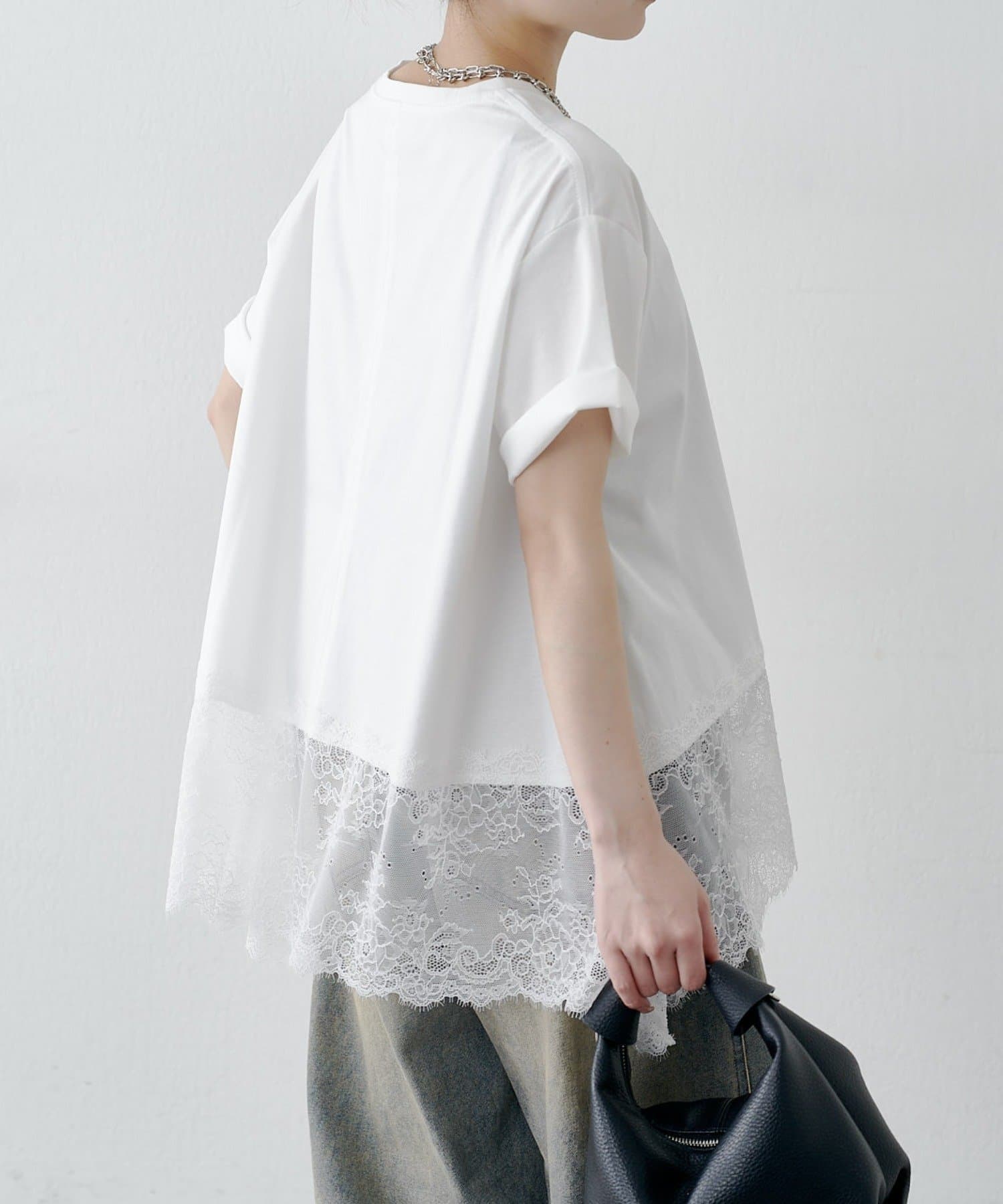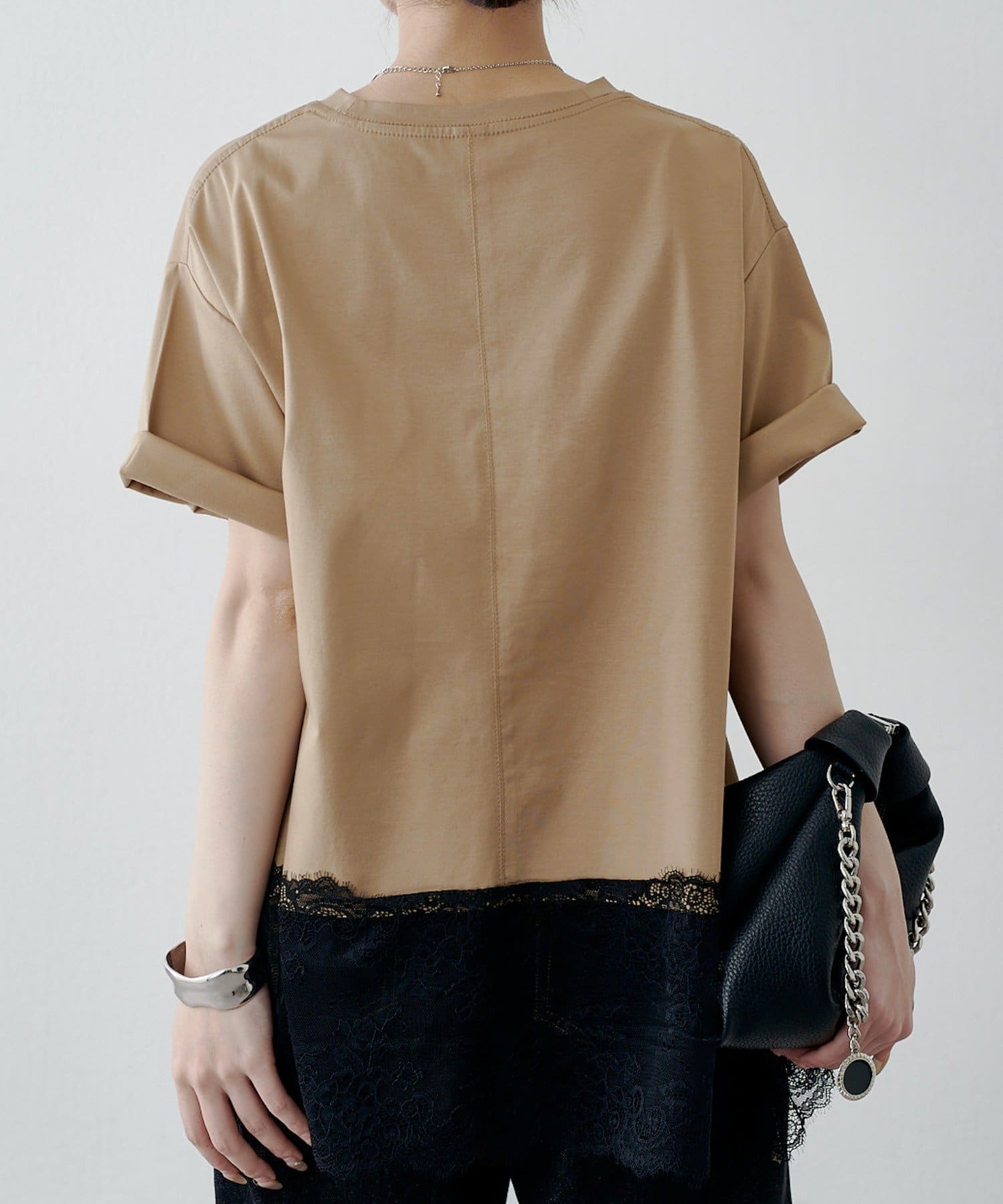 ・裾部分にレースを切り替えた華やかなデザイントップス