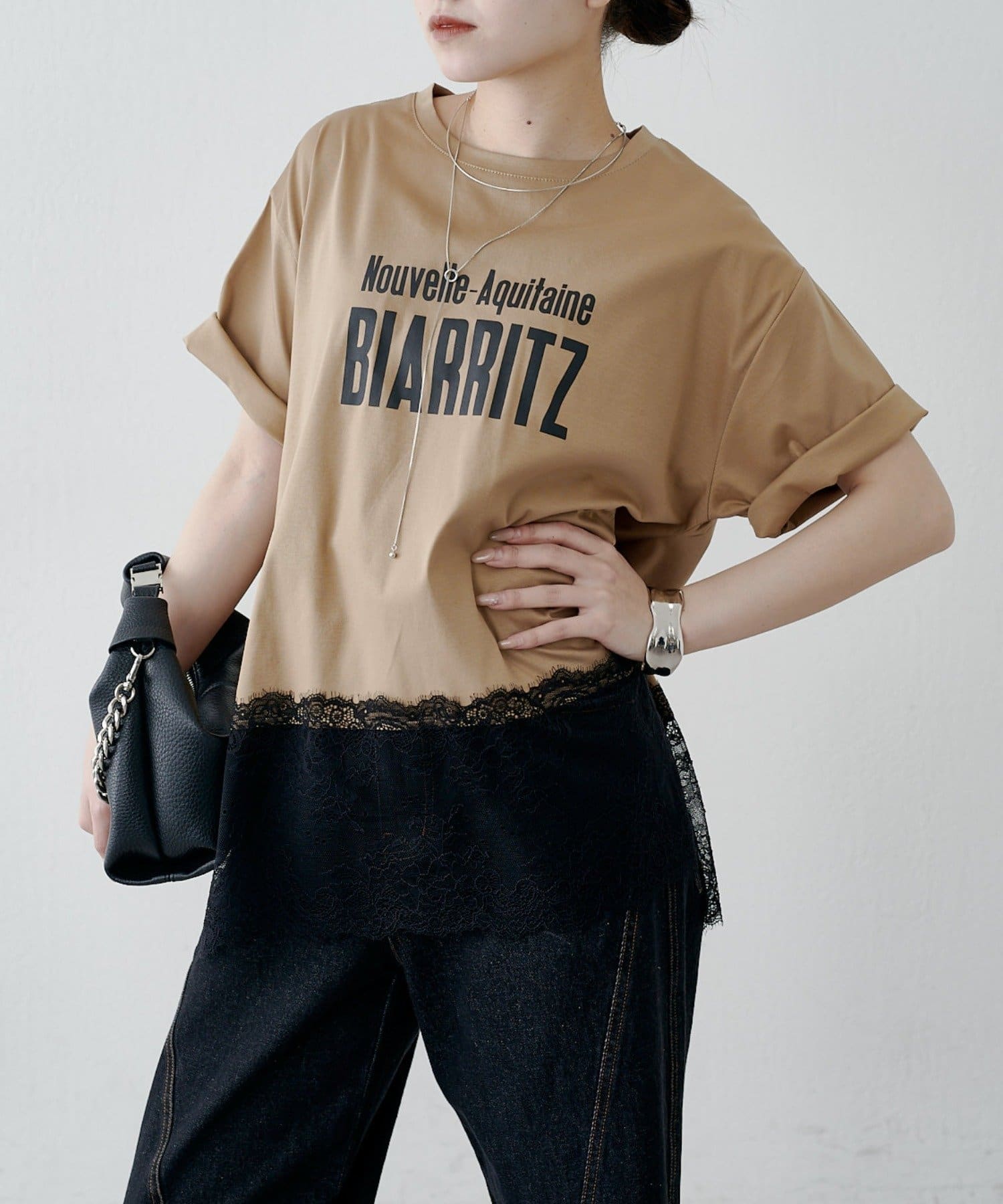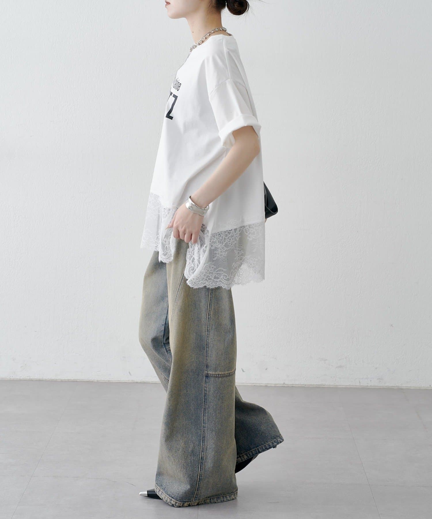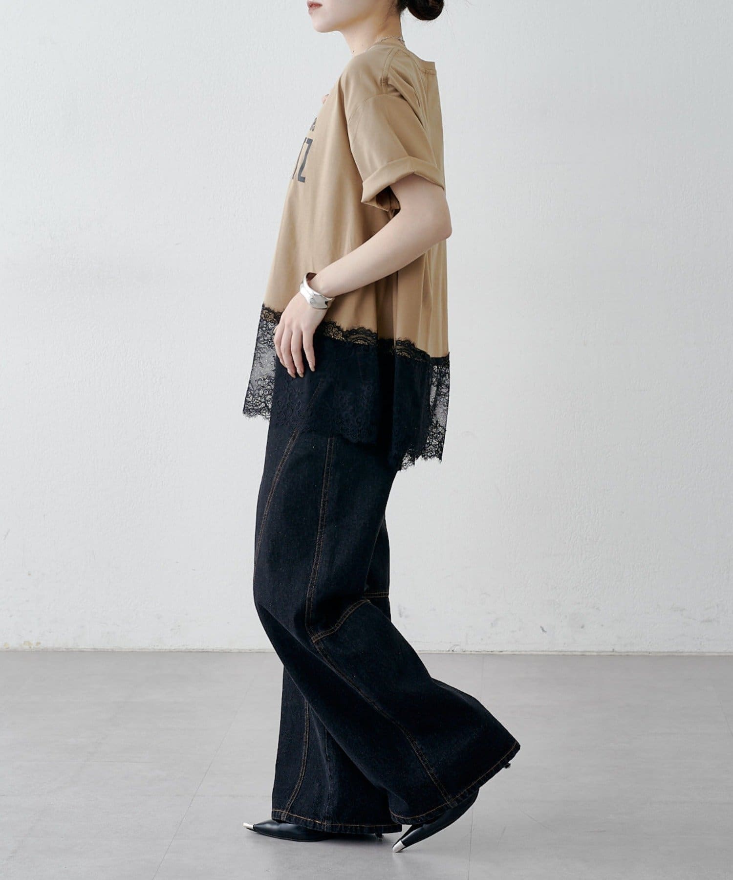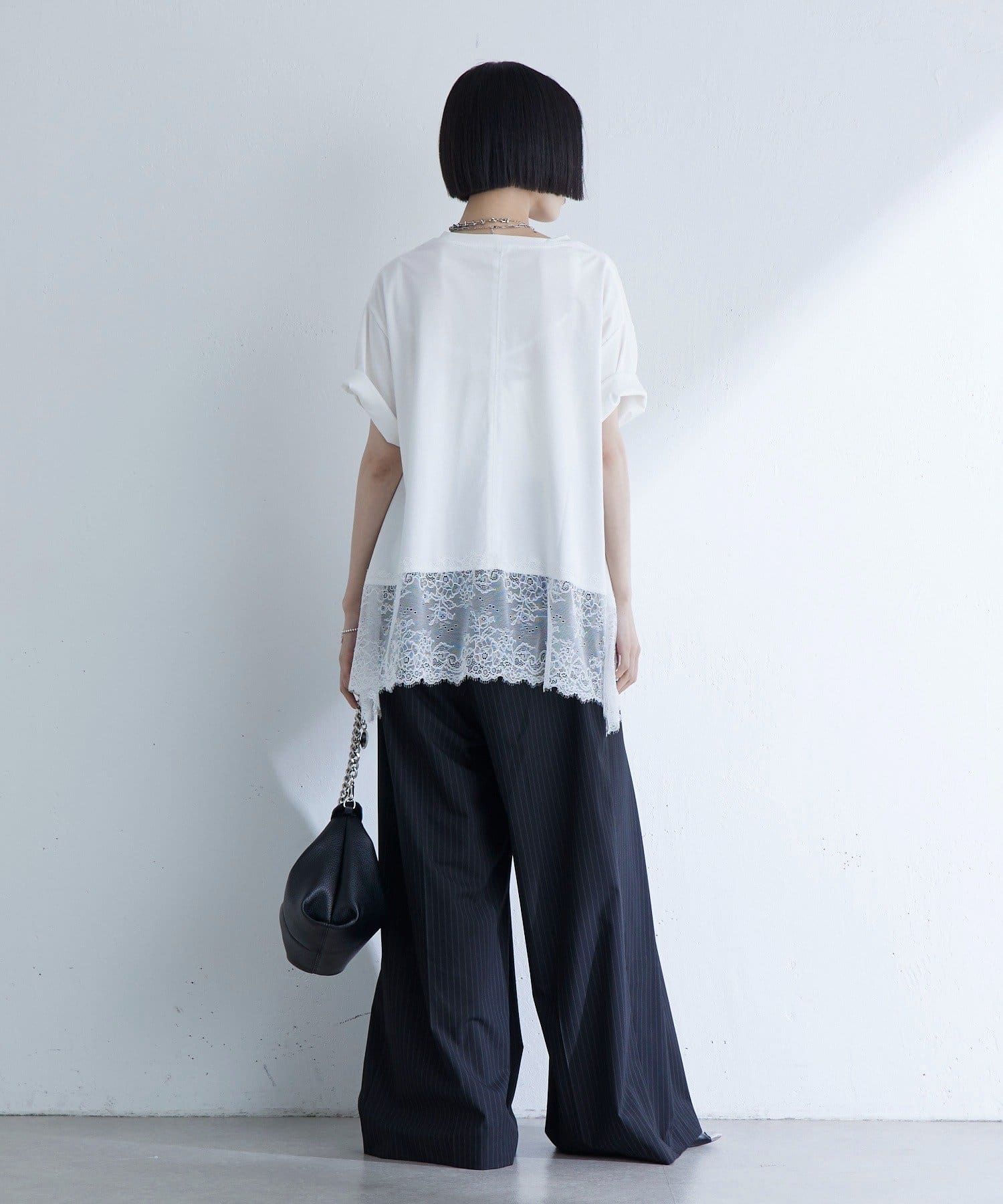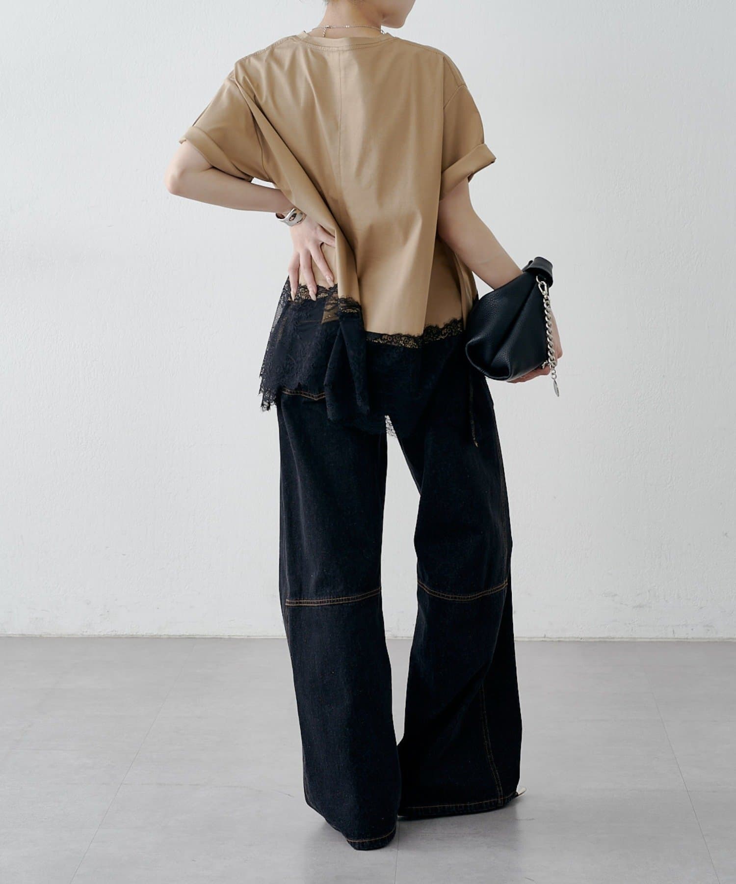 ・裾部分にレースを切り替えた華やかなデザイントップス