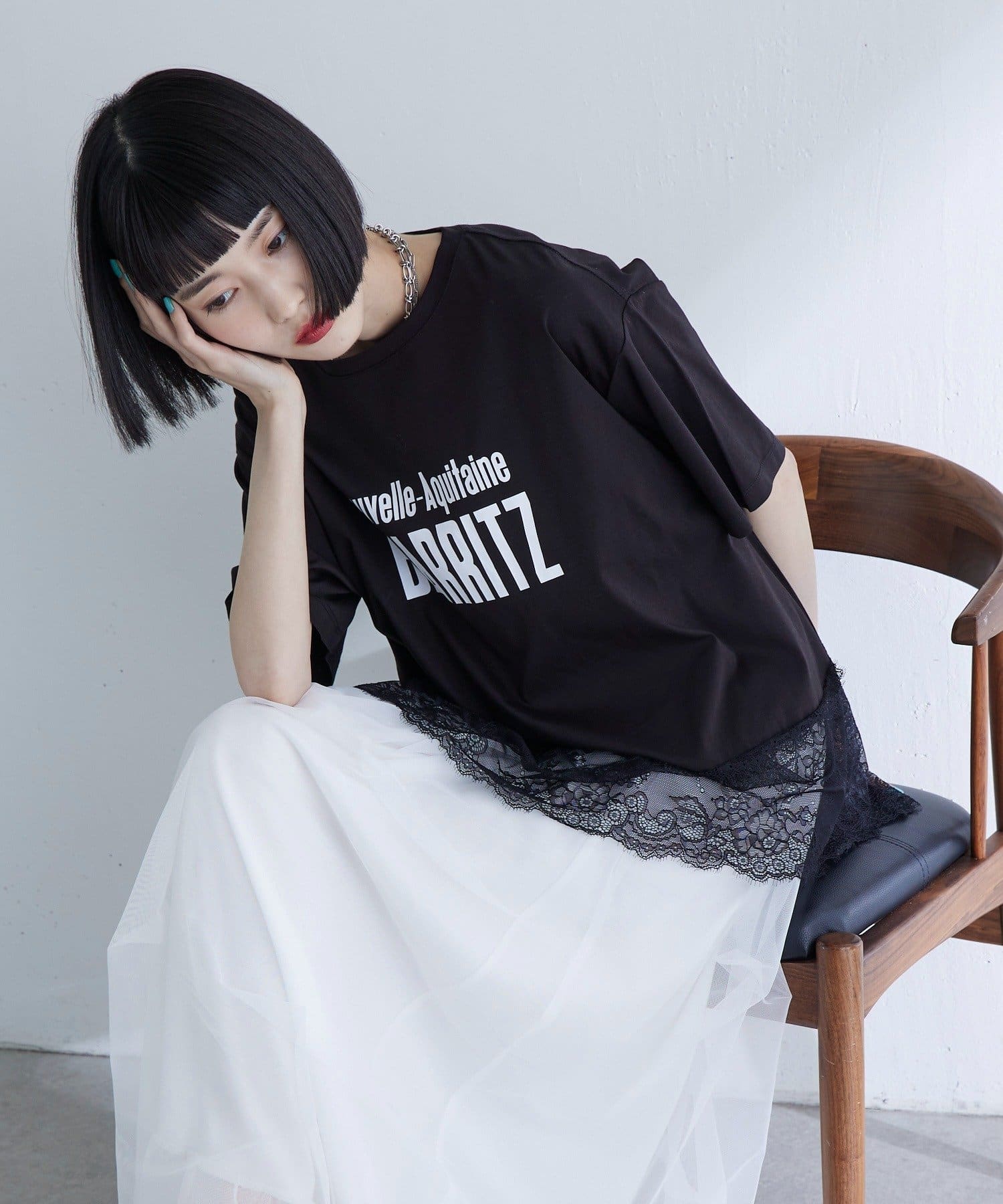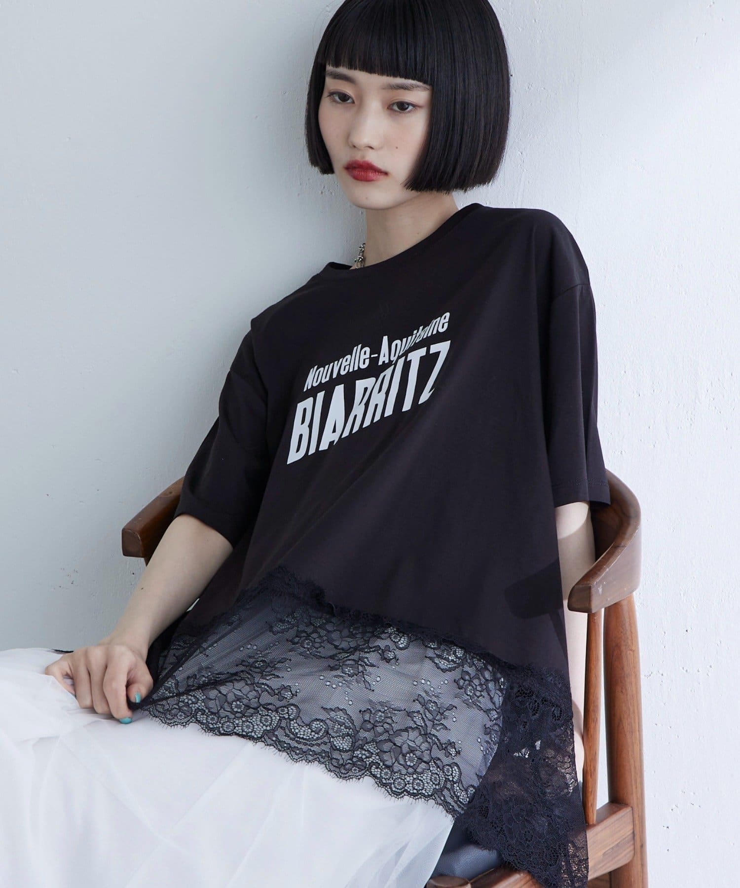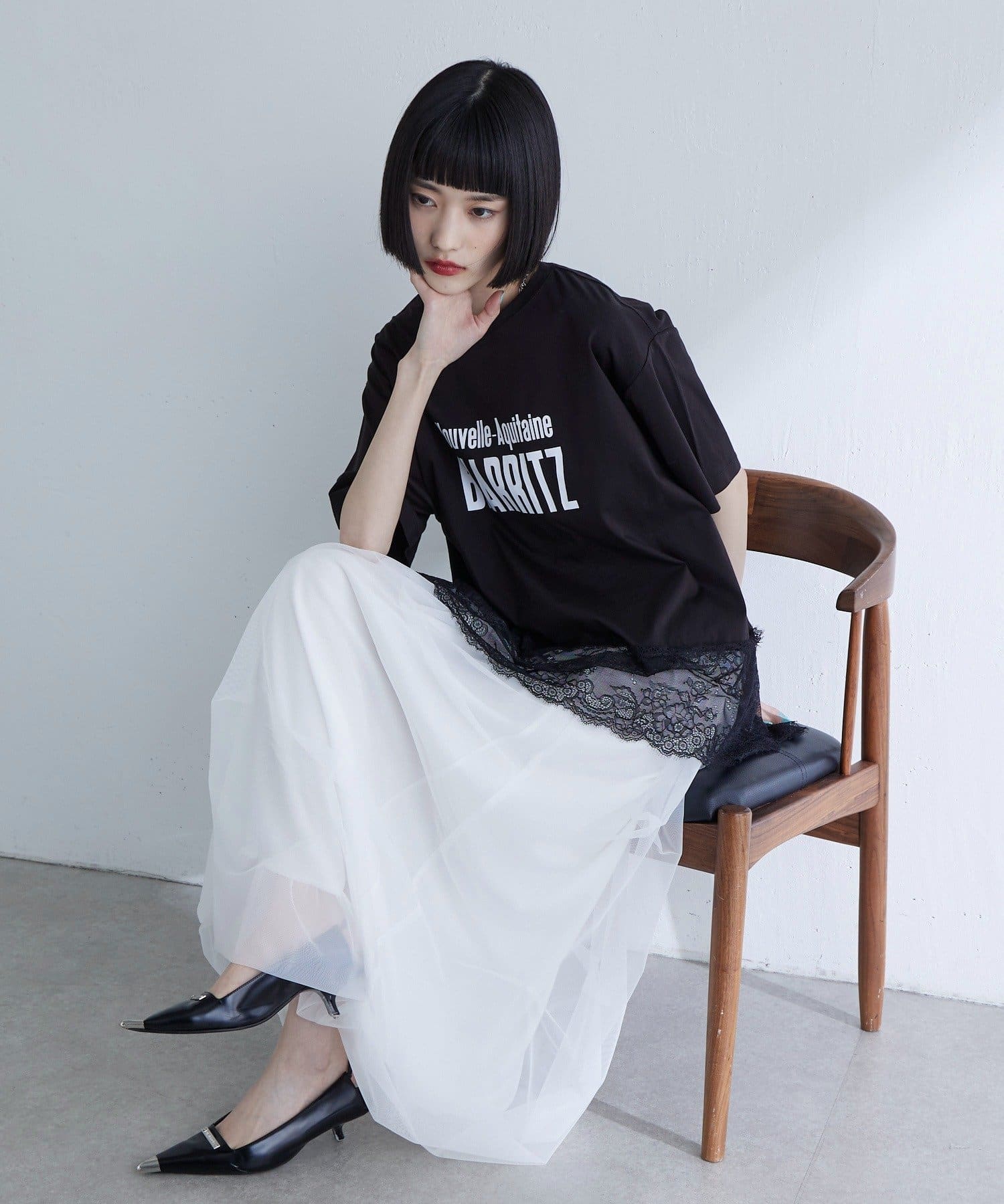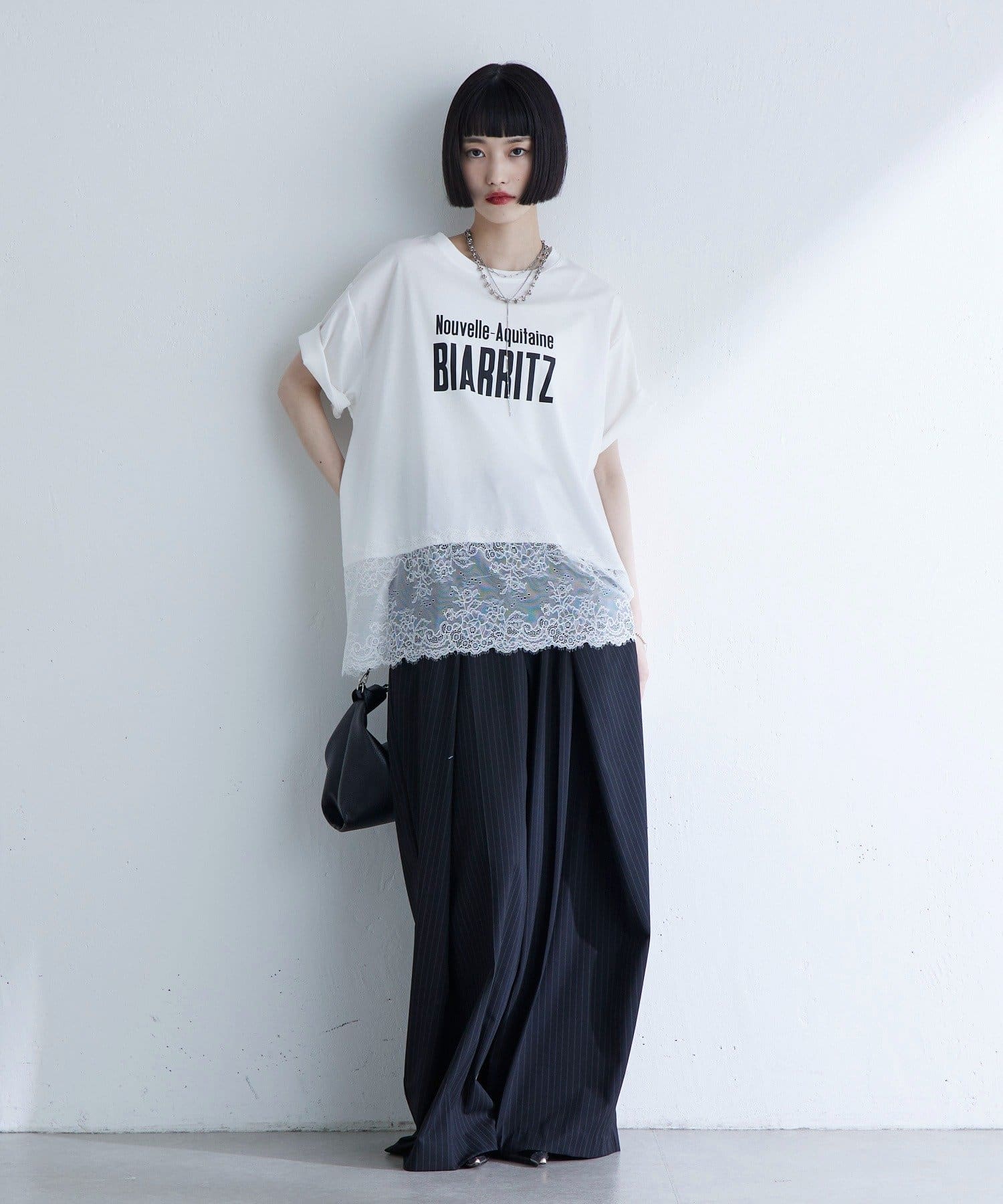 ・裾部分にレースを切り替えた華やかなデザイントップス