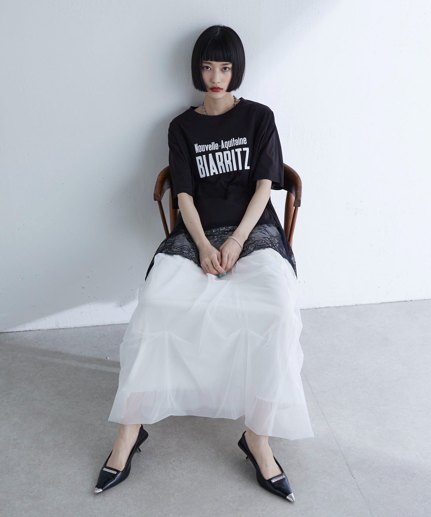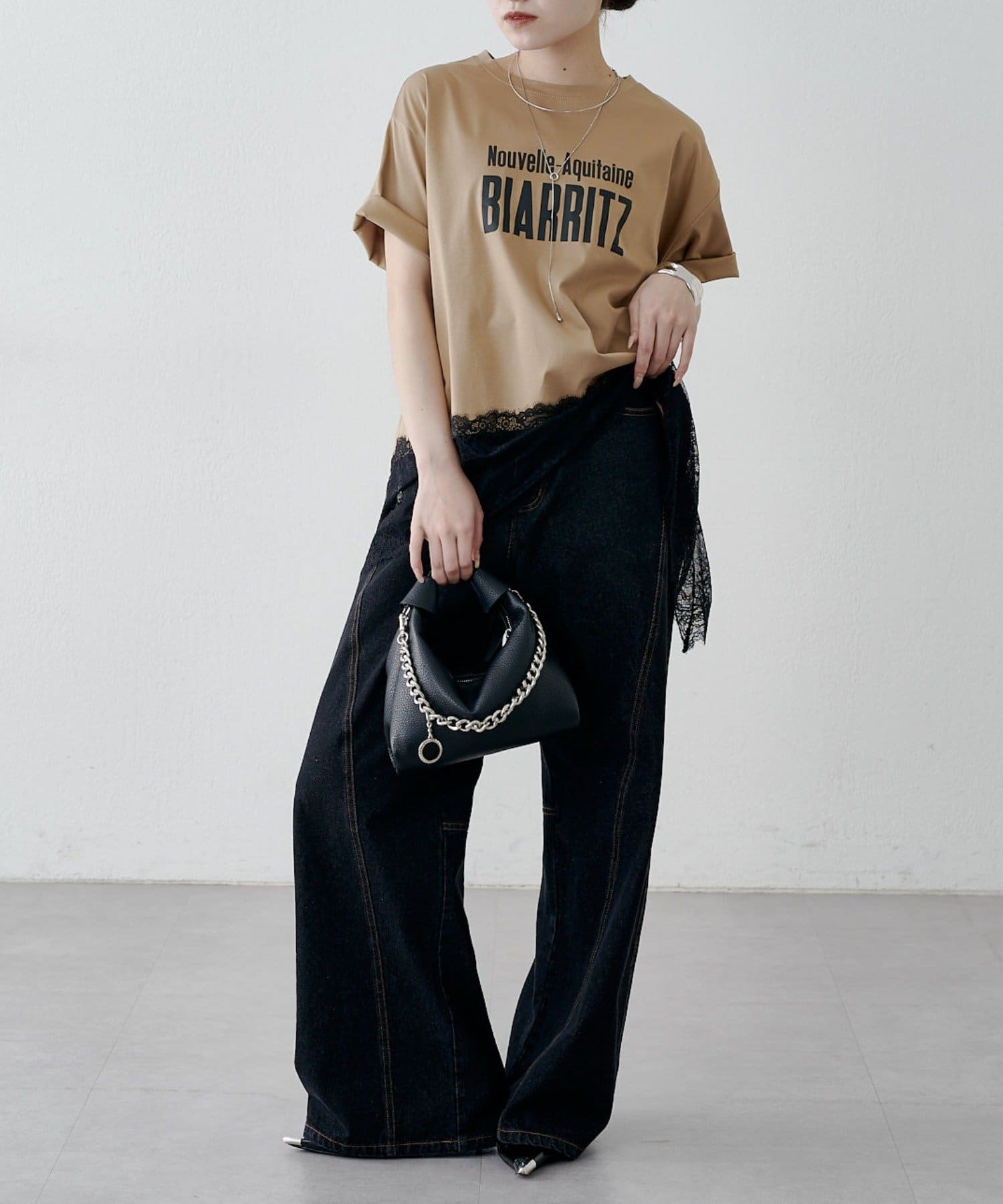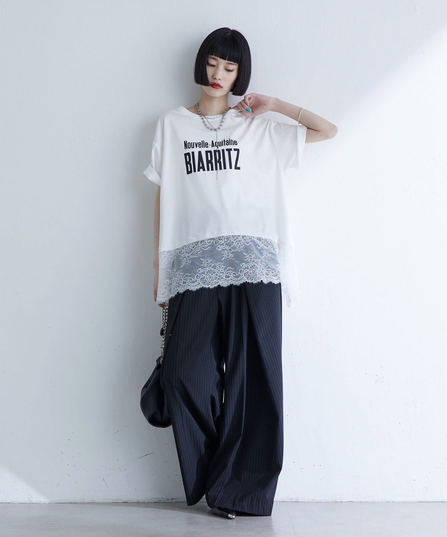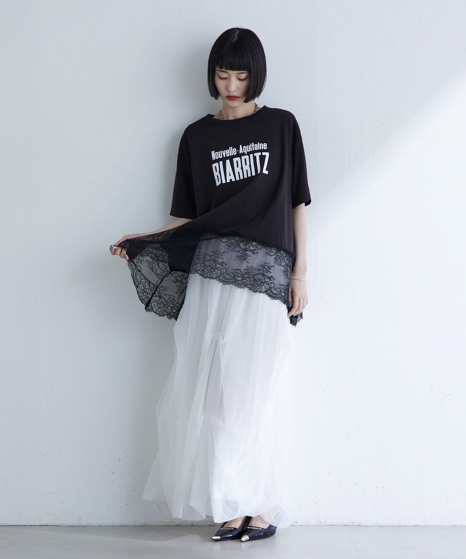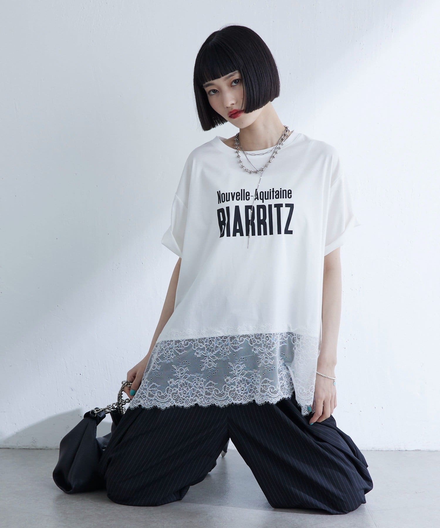 ・裾部分にレースを切り替えた華やかなデザイントップス