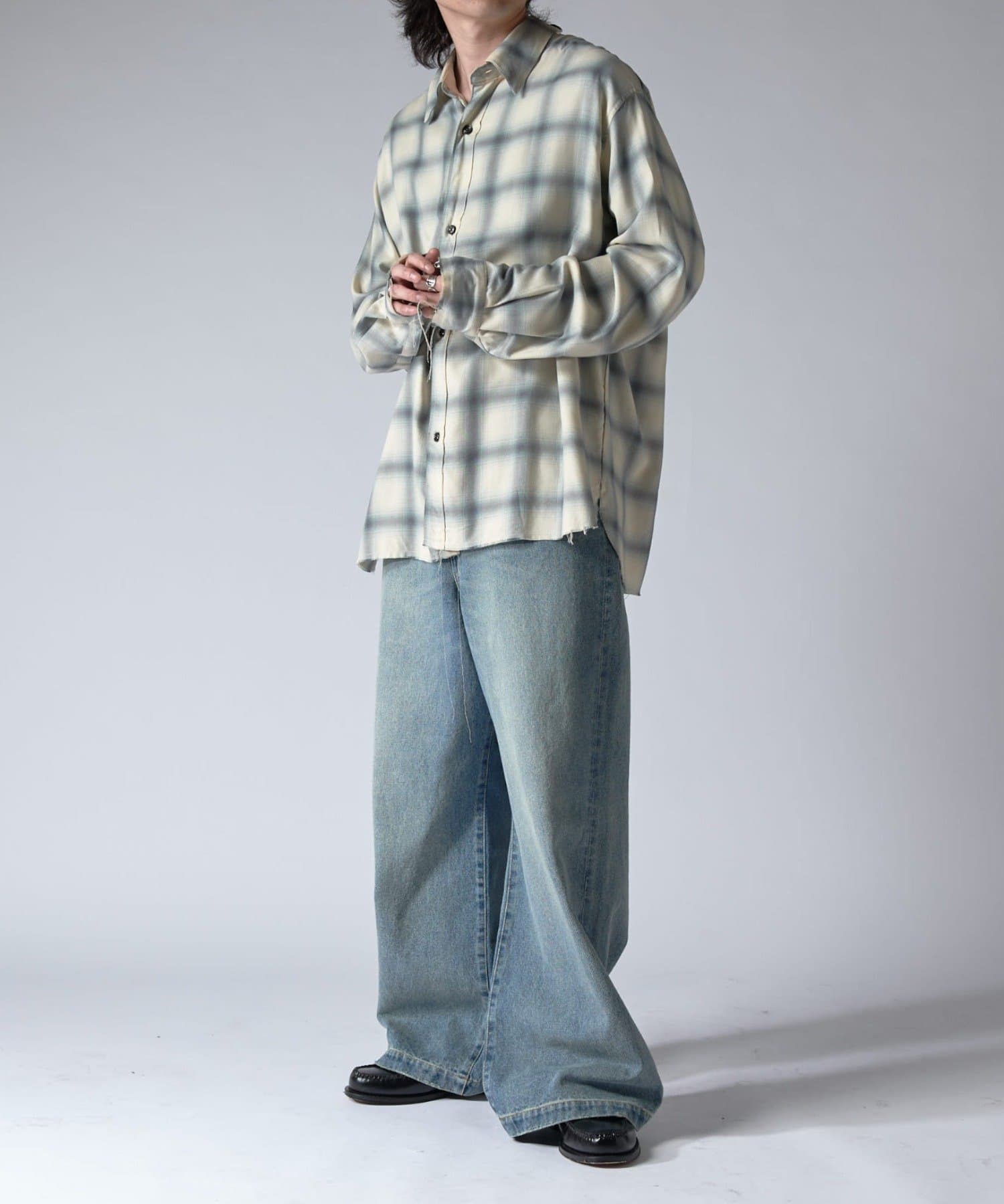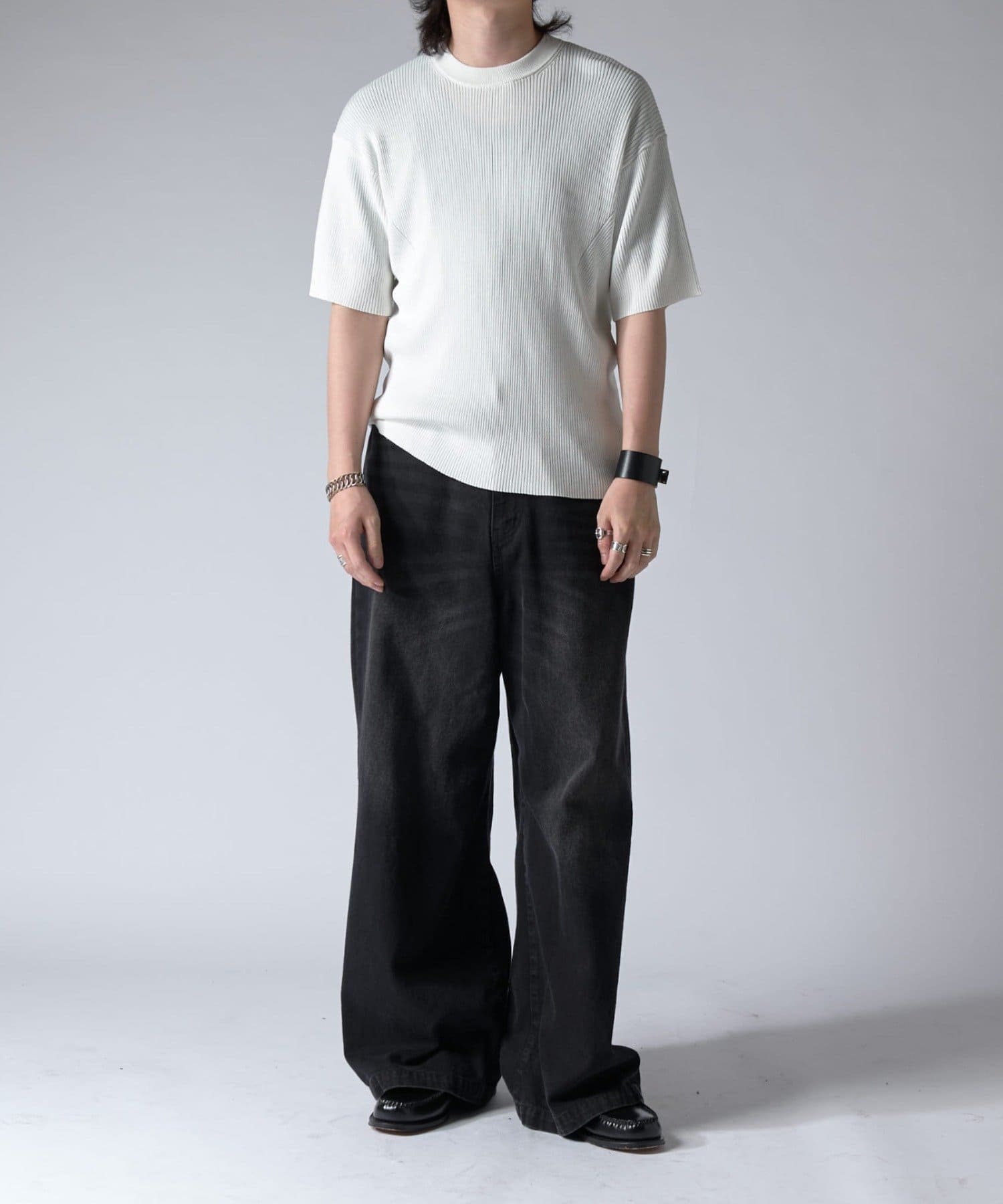 キレイめでも合わせて頂けるエレファントジーンズなので、TシャツやロンTはもちろん、シャツやキレイめな印象のタートルネックニットに組み合わせて頂くのがオススメ。
