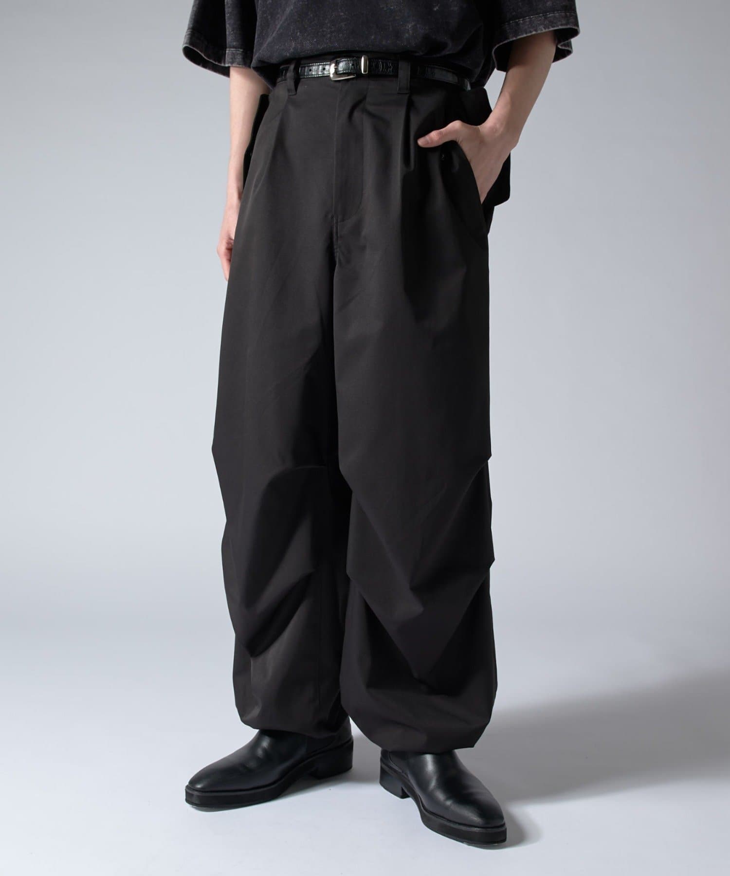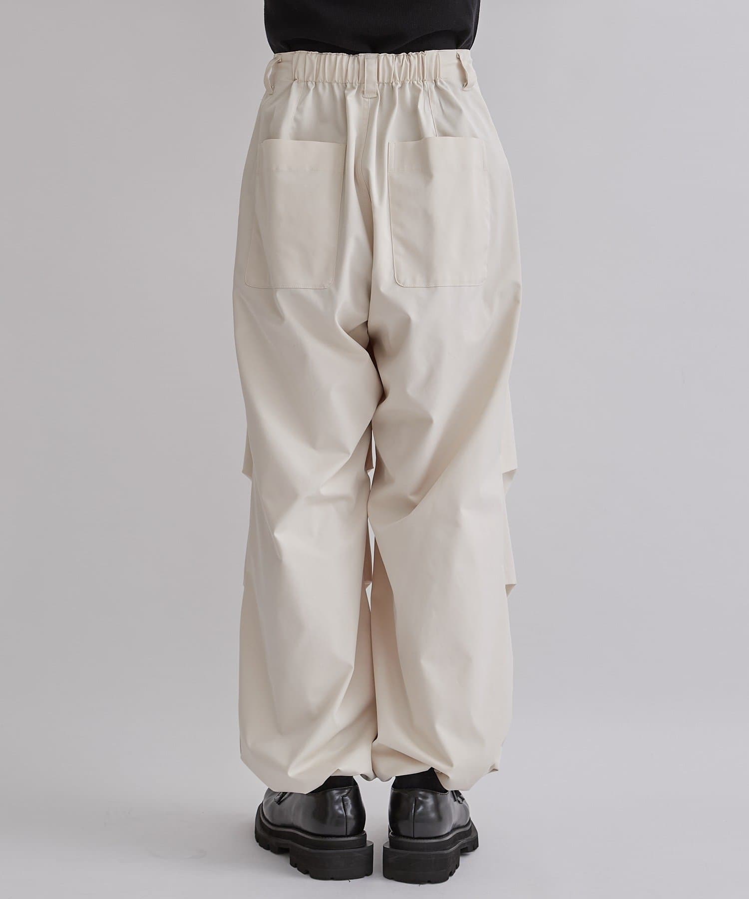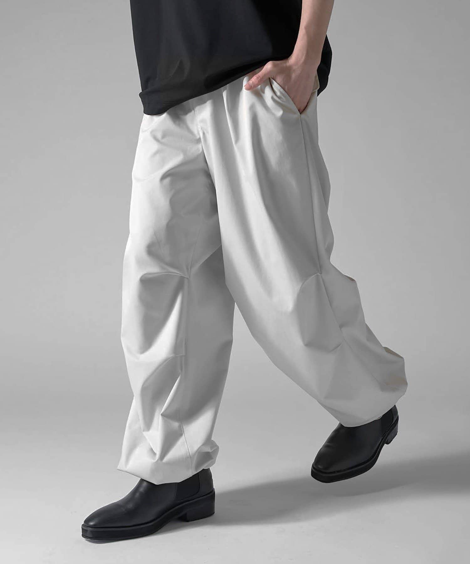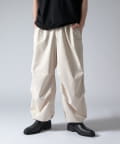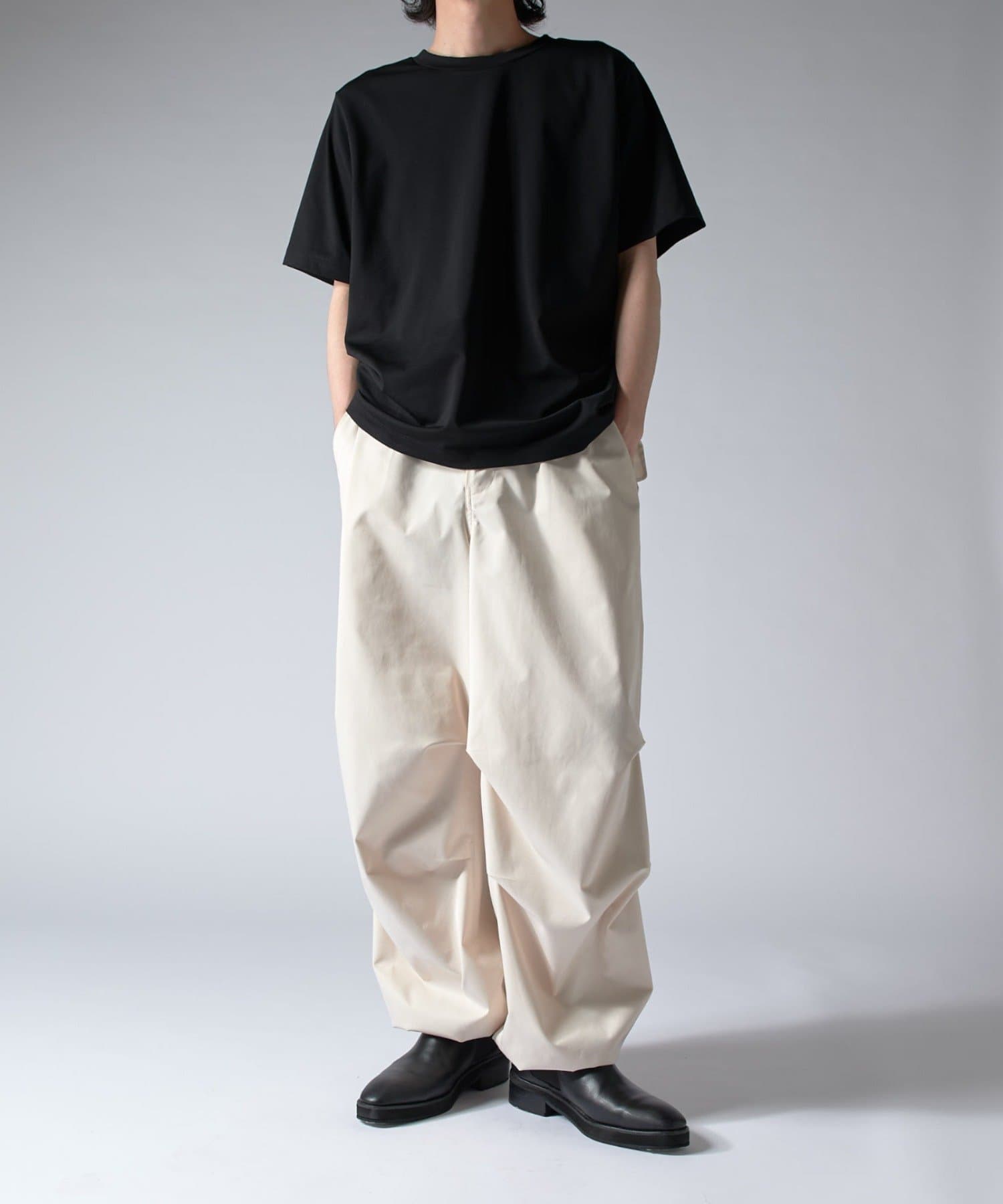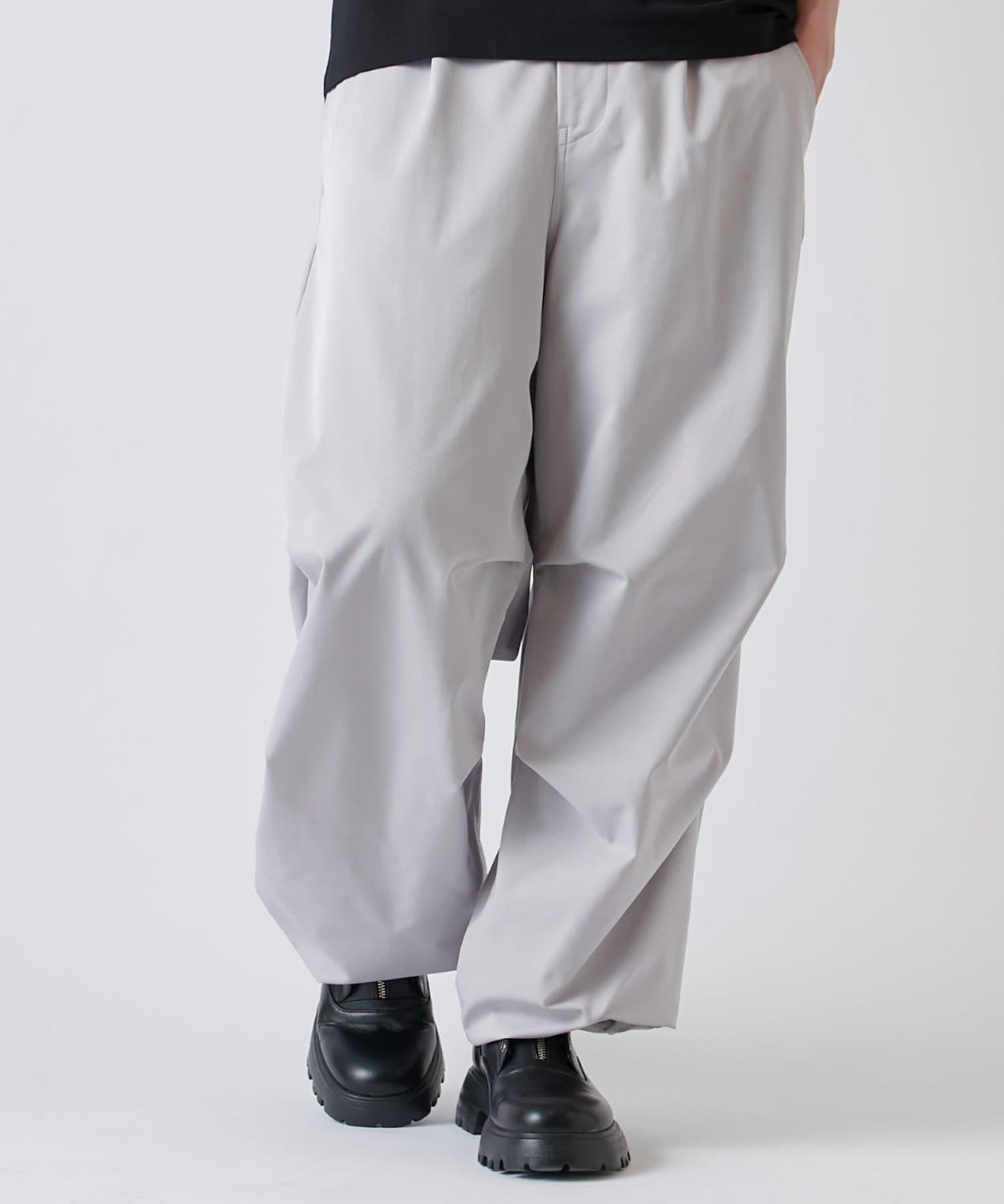 ワイドパンツの太さをパラシュートパンツに落とし込んだ、シンプルアイディアのパンツ。