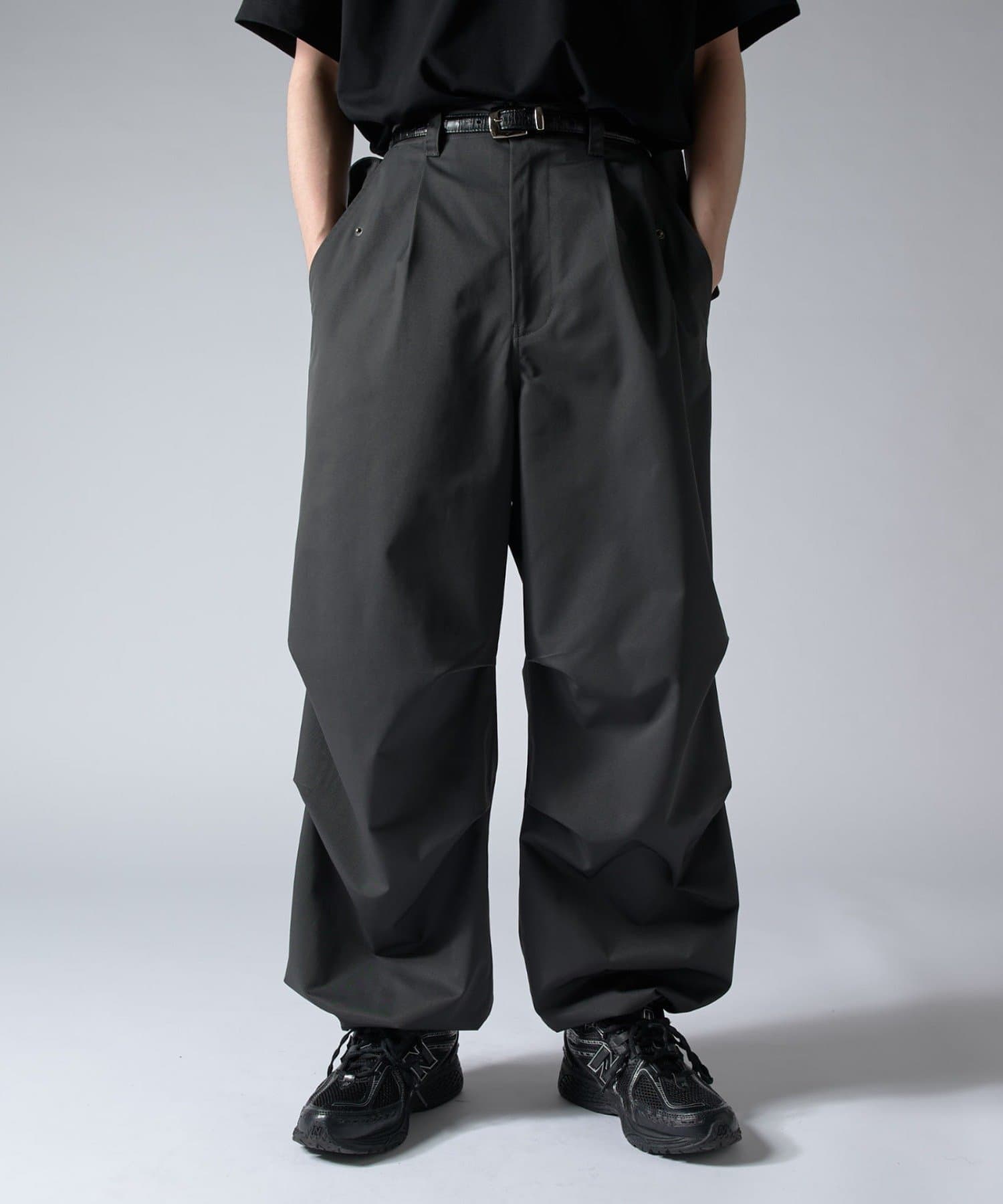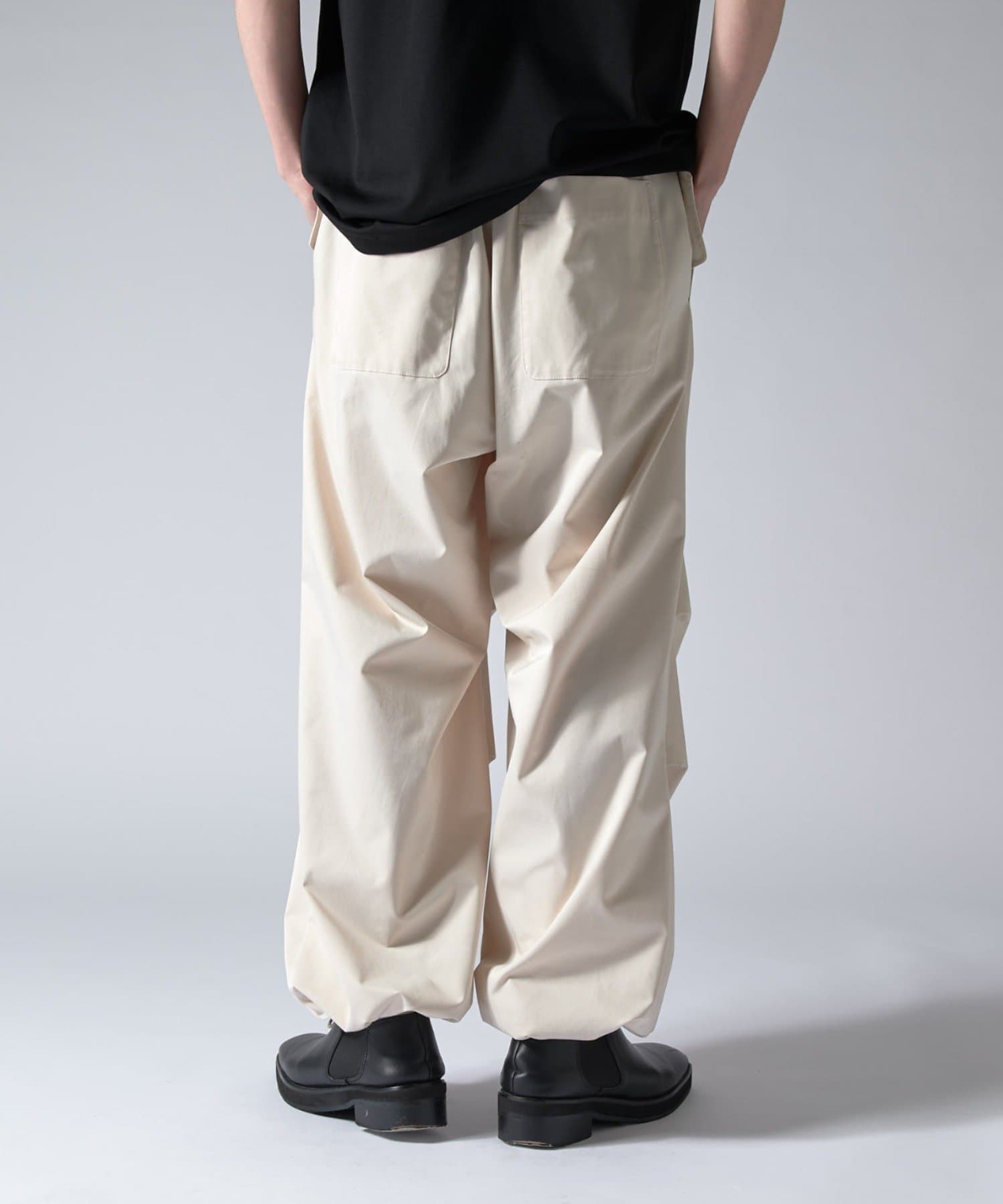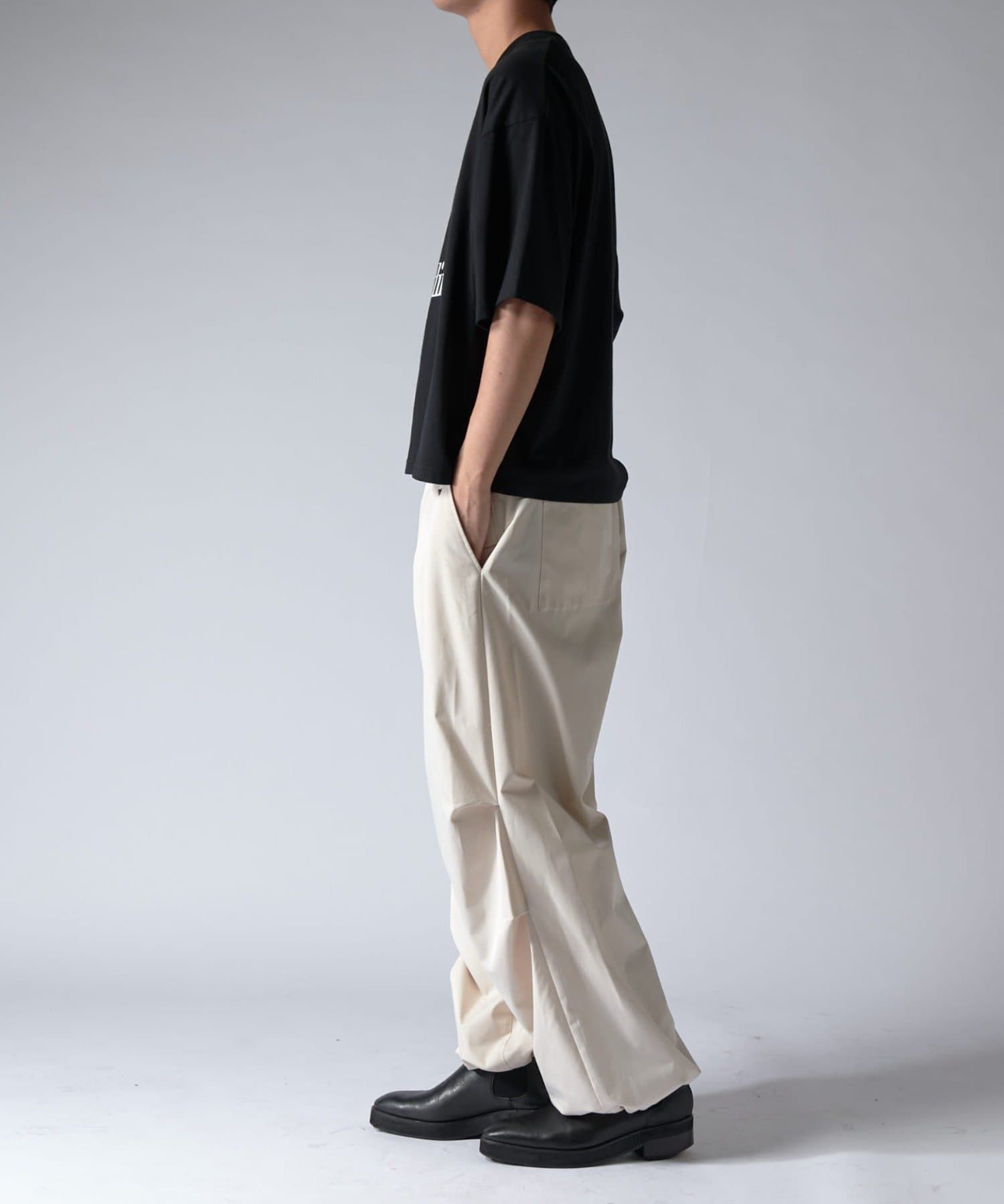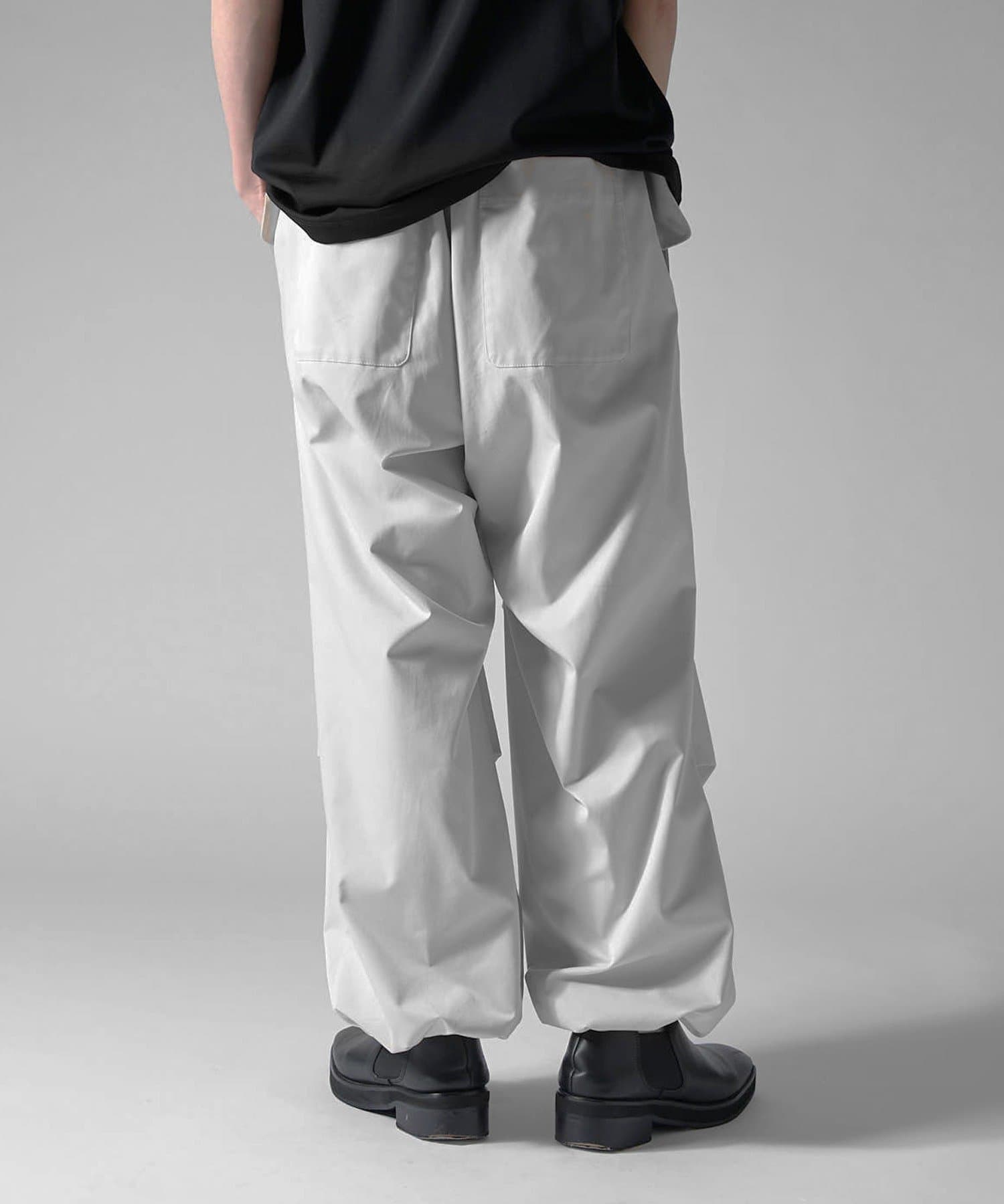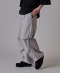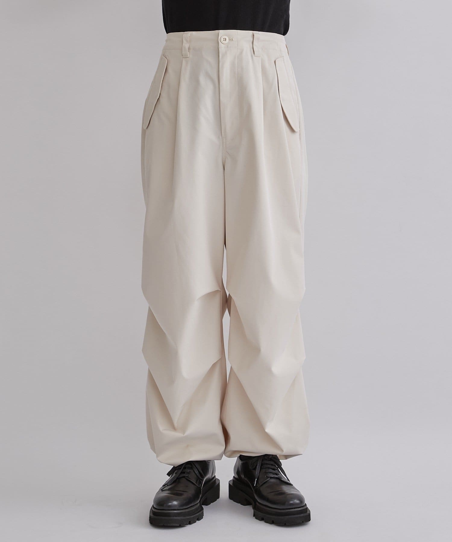 ワイドパンツの太さをパラシュートパンツに落とし込んだ、シンプルアイディアのパンツ。