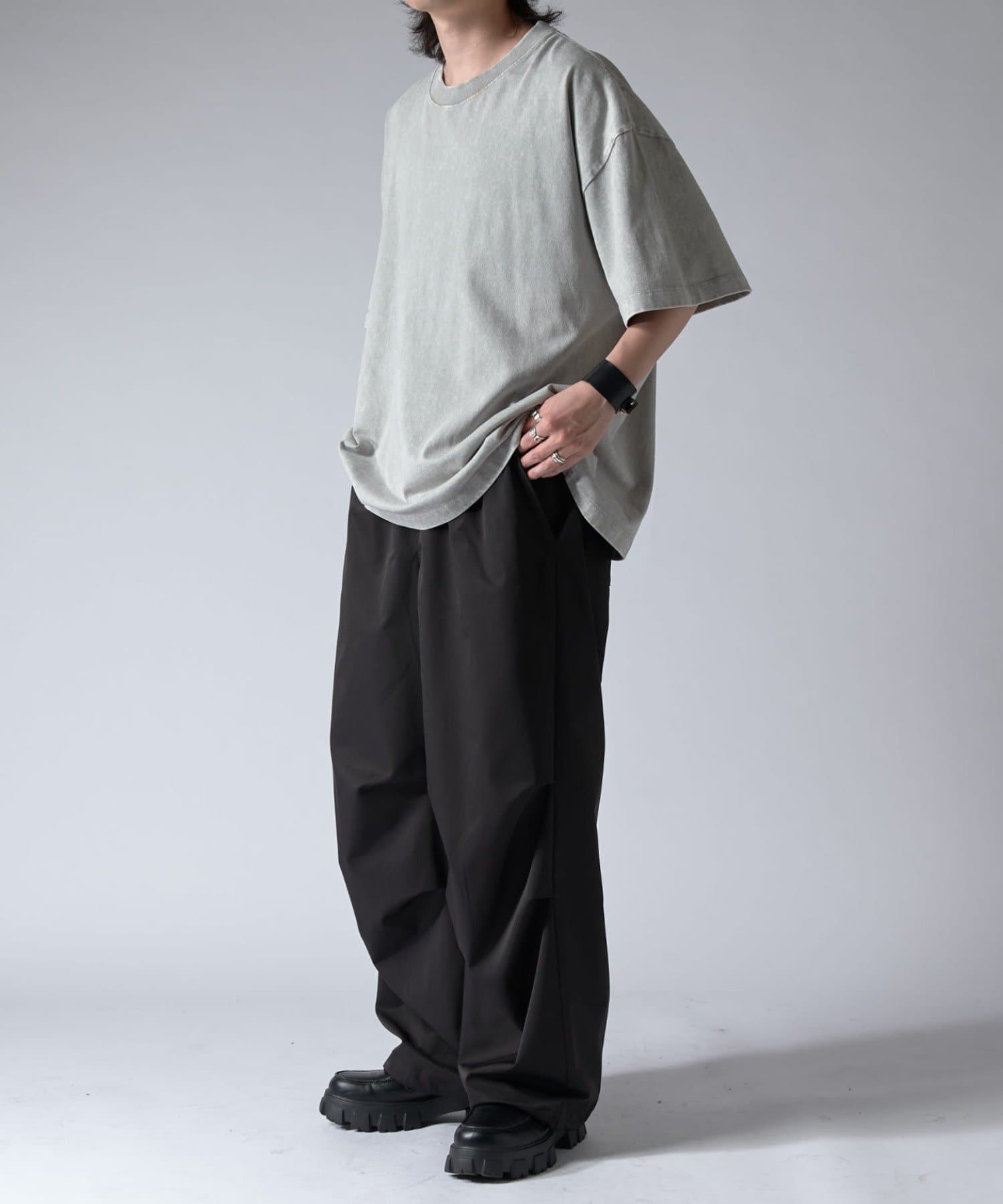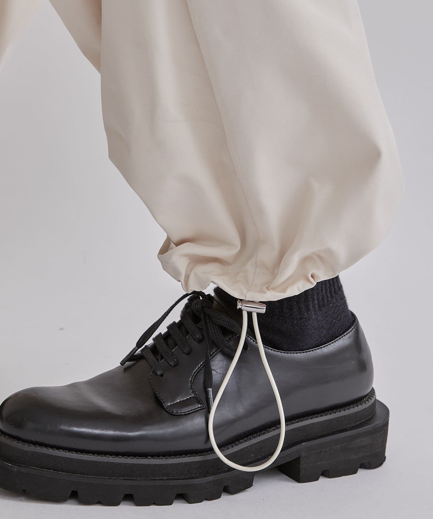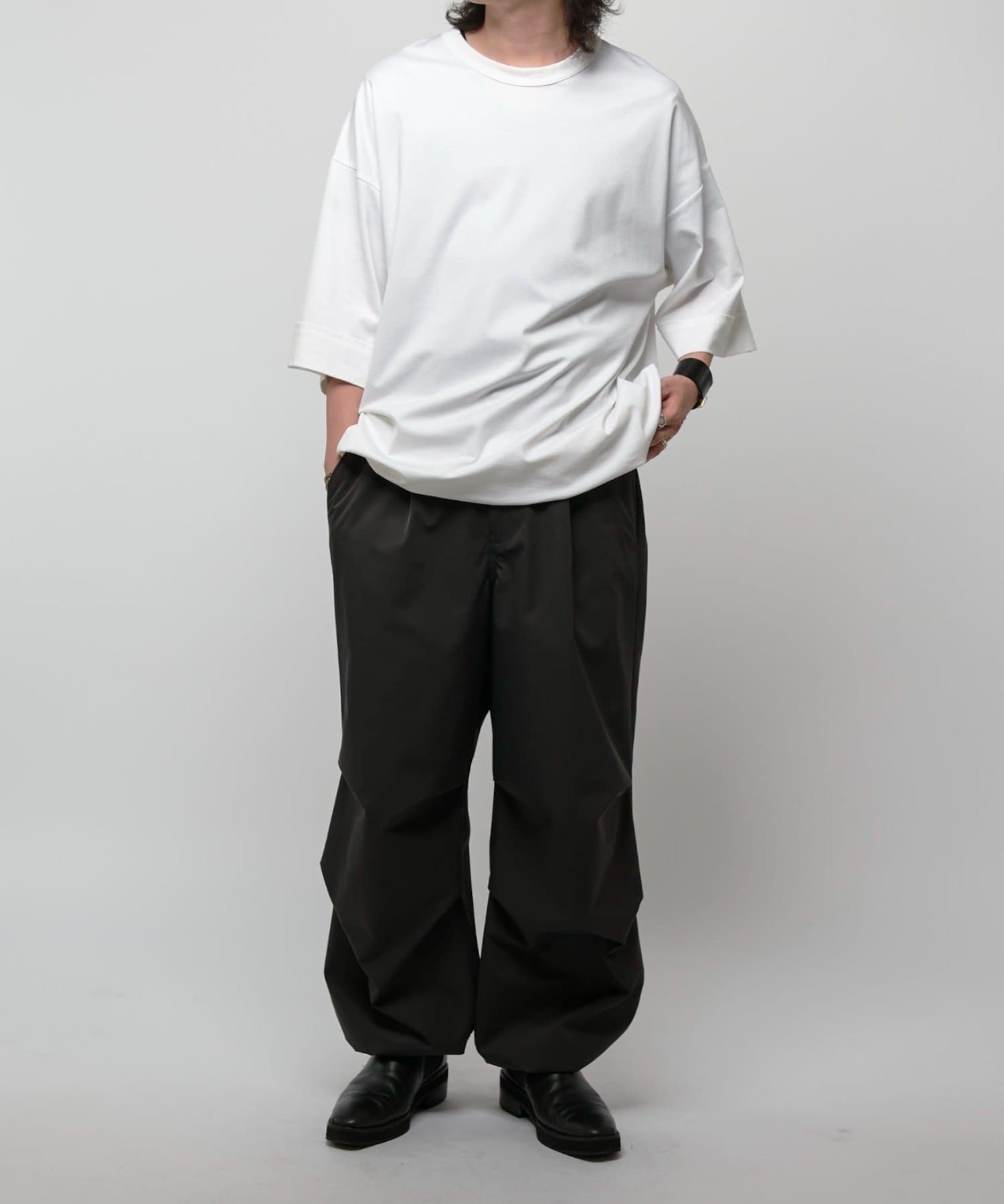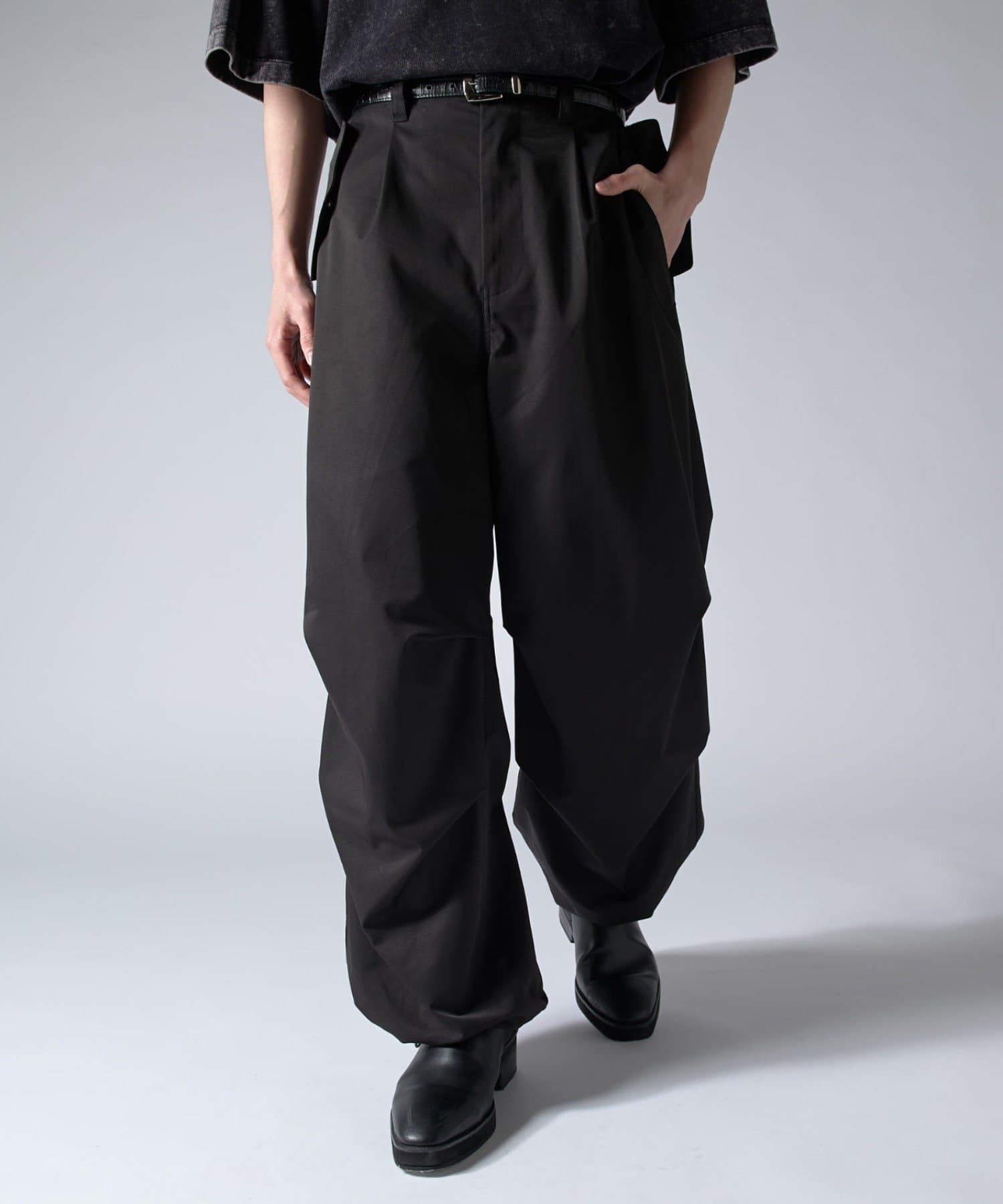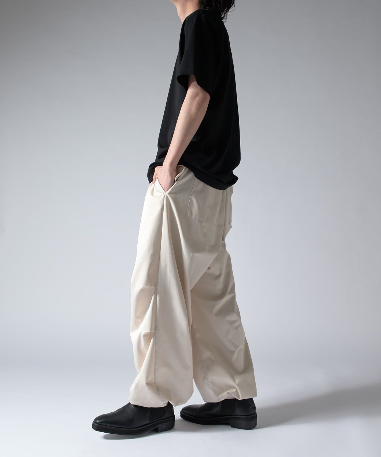 ワイドパンツの太さをパラシュートパンツに落とし込んだ、シンプルアイディアのパンツ。