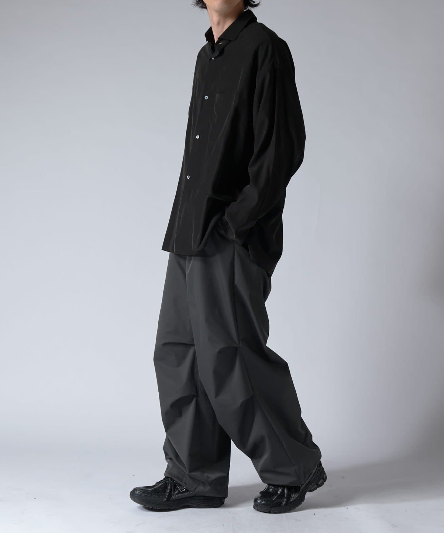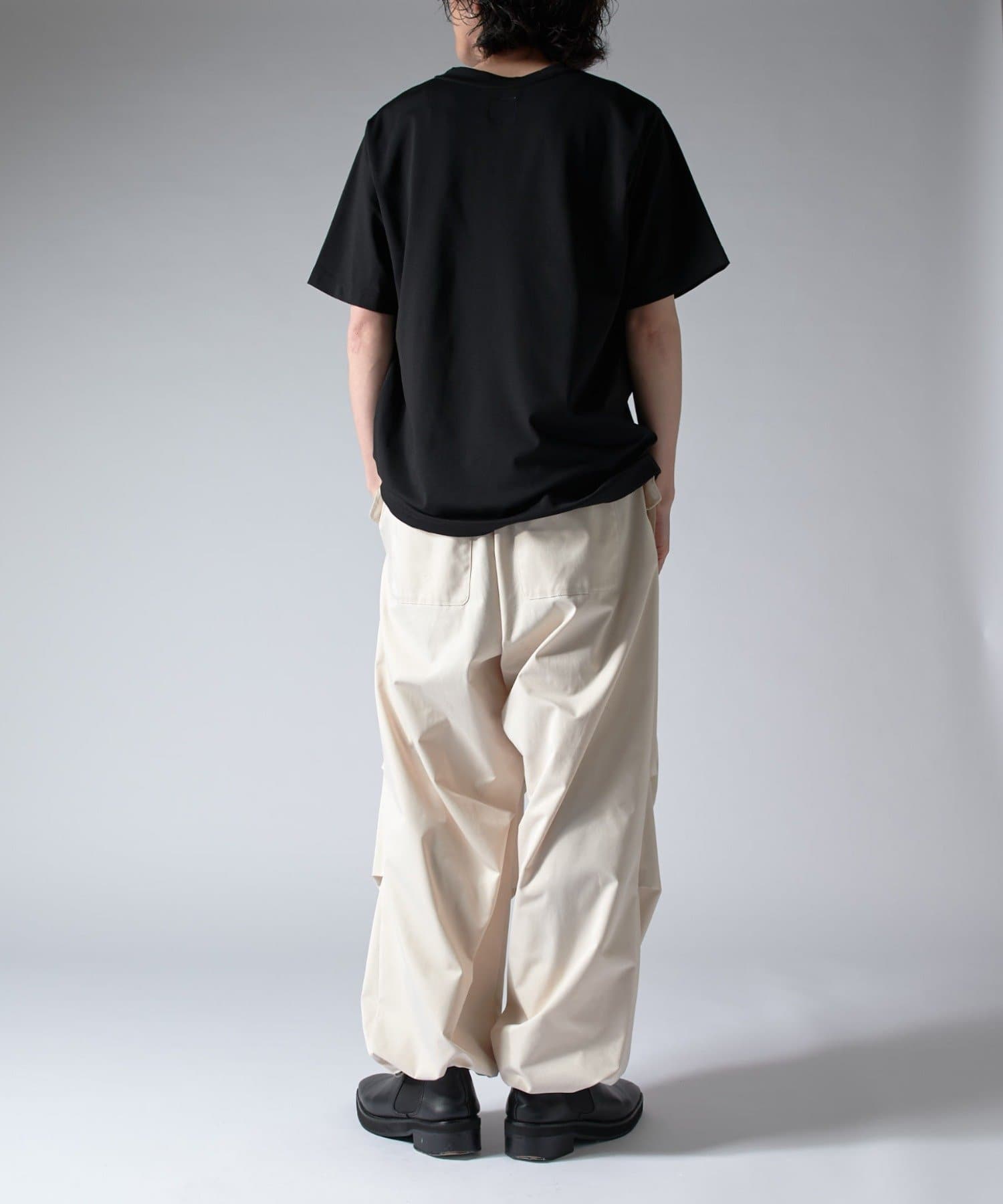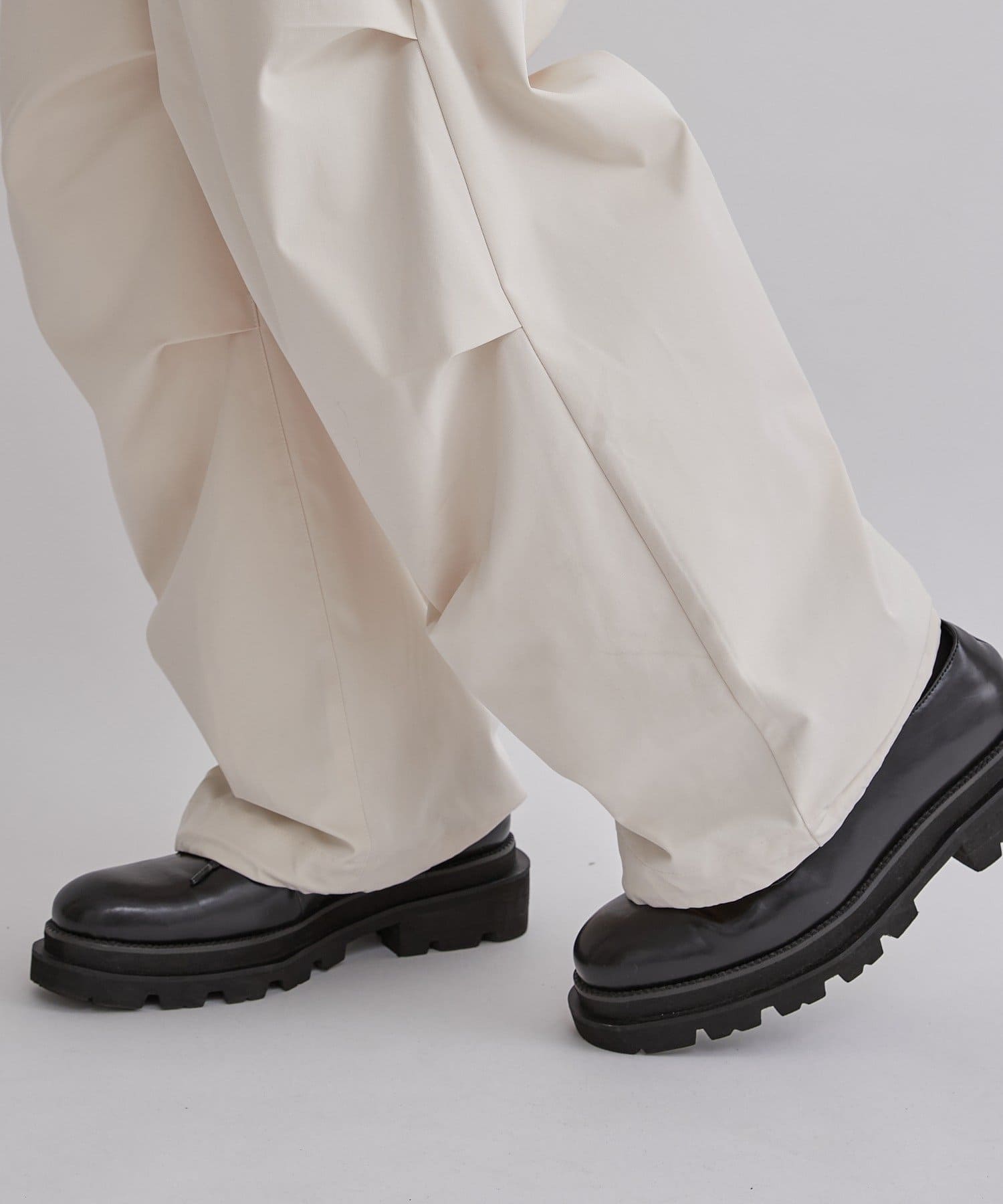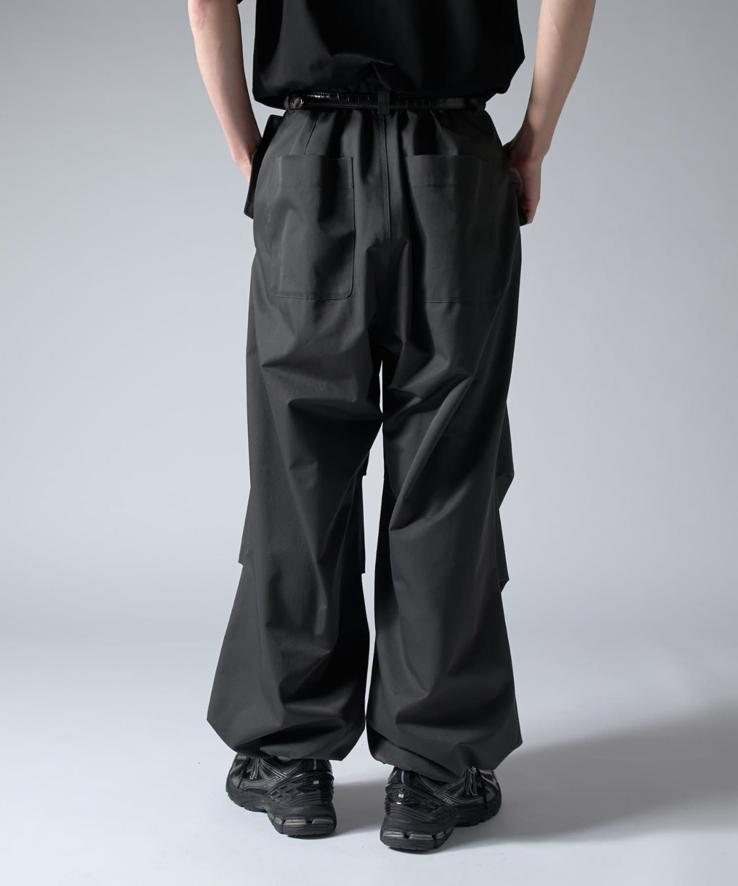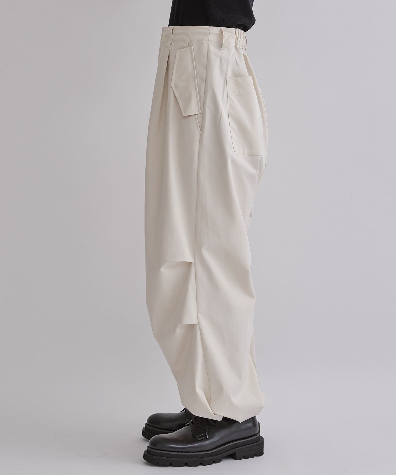 ワイドパンツの太さをパラシュートパンツに落とし込んだ、シンプルアイディアのパンツ。