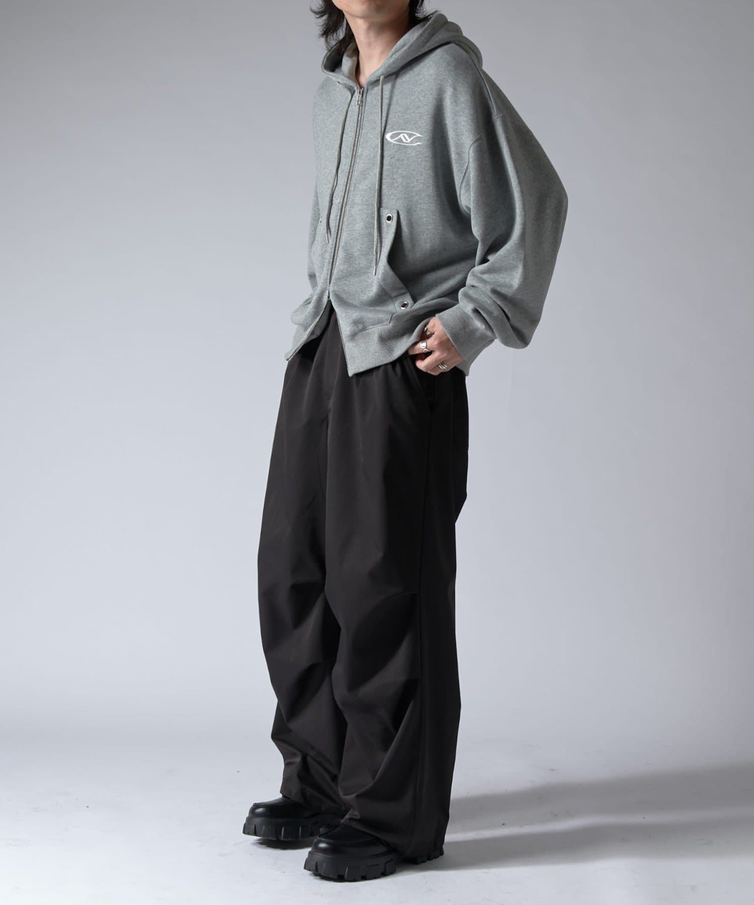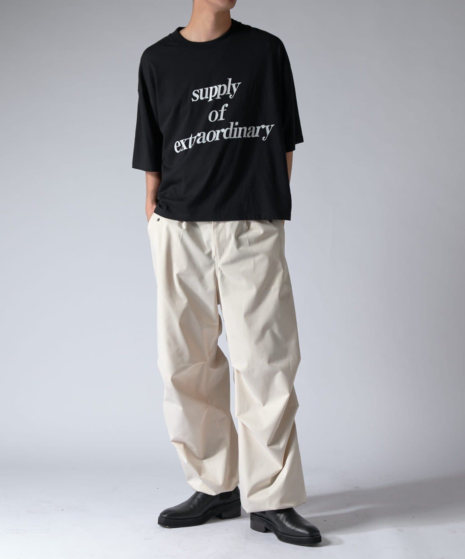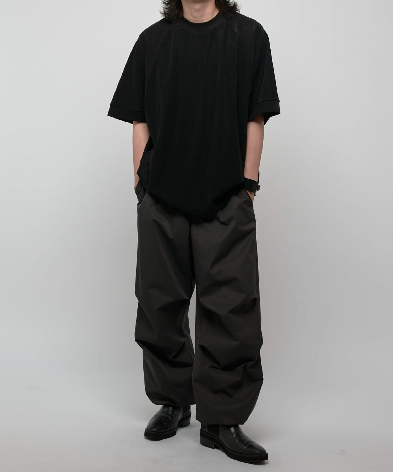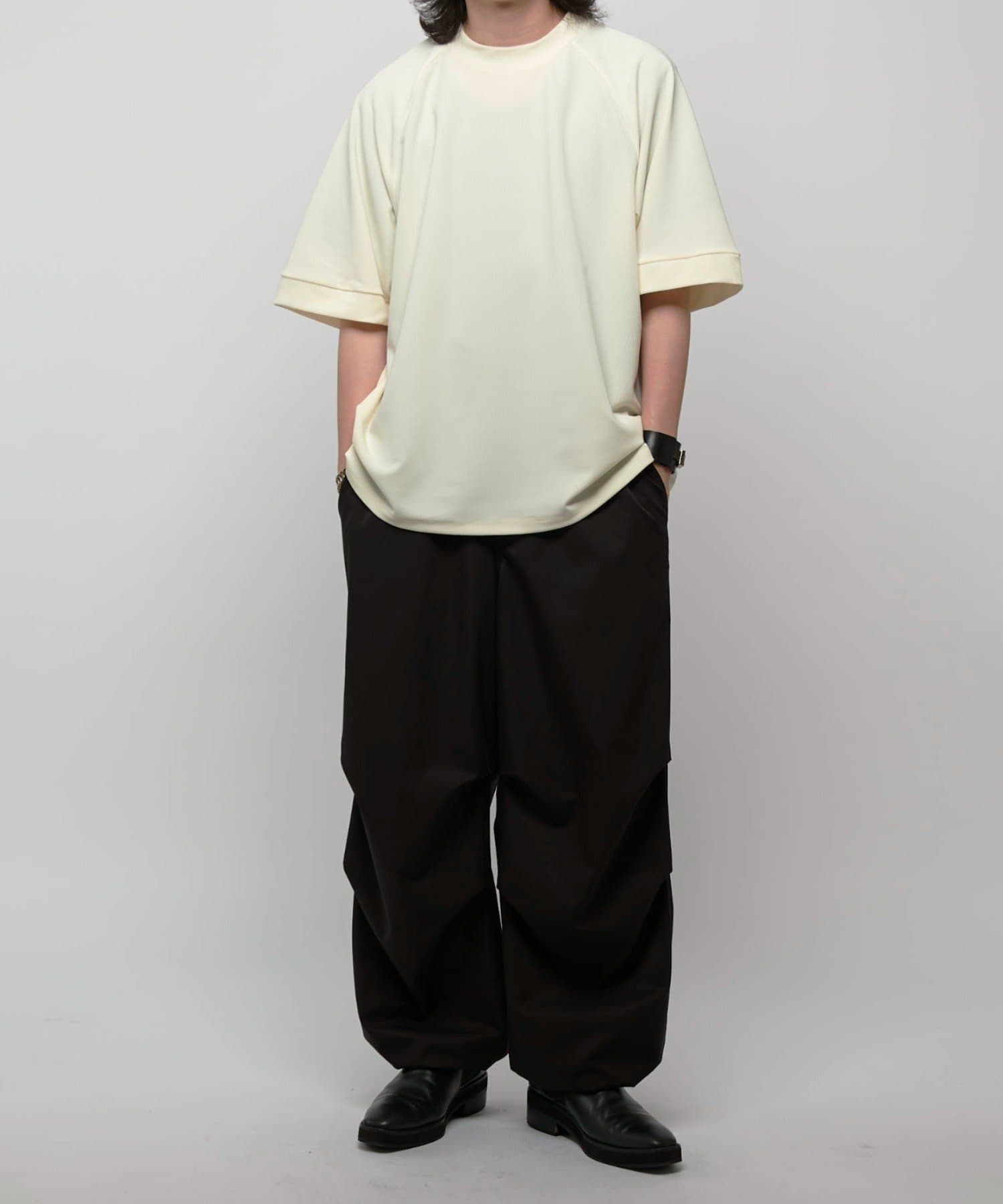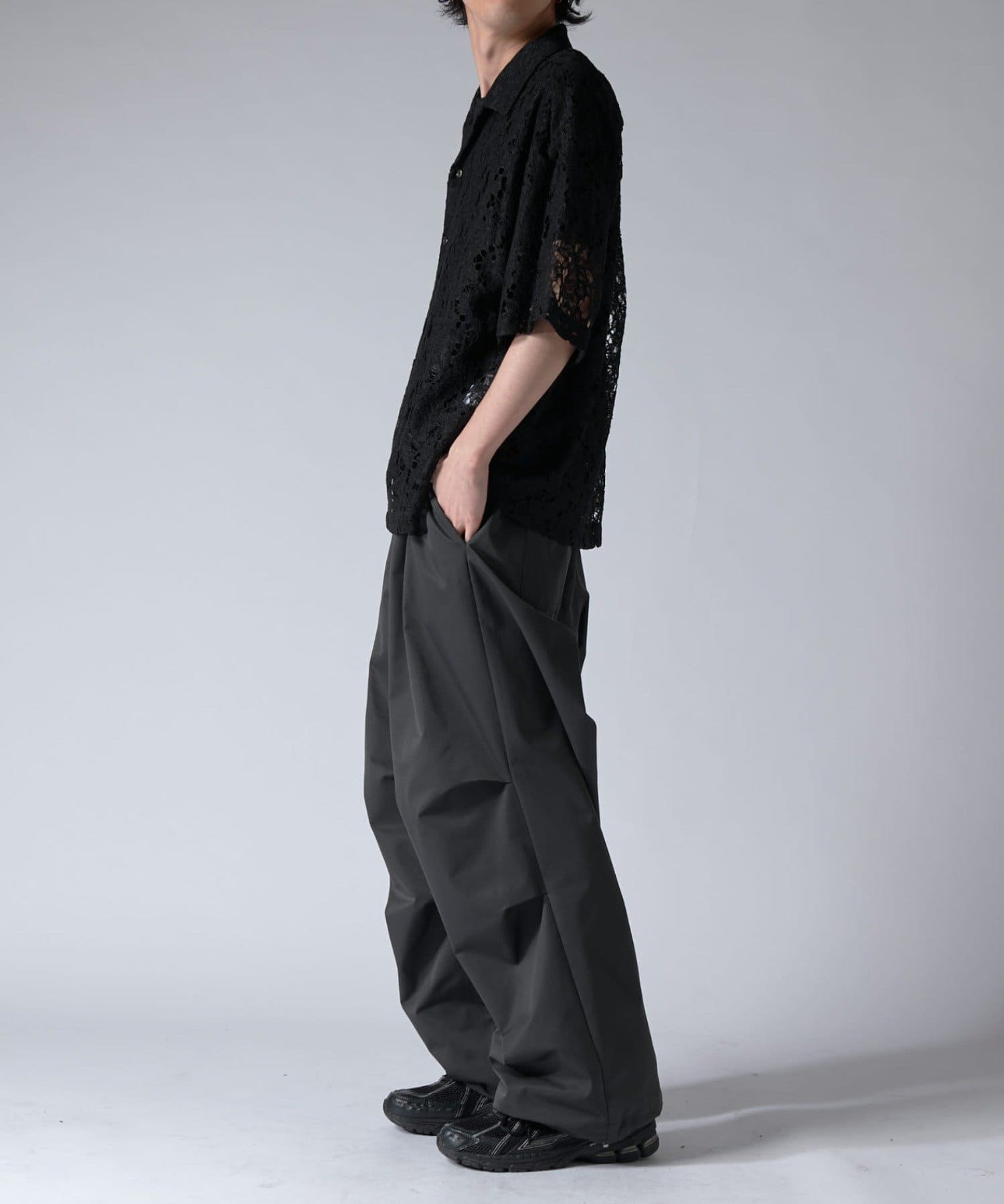 ワイドパンツの太さをパラシュートパンツに落とし込んだ、シンプルアイディアのパンツ。