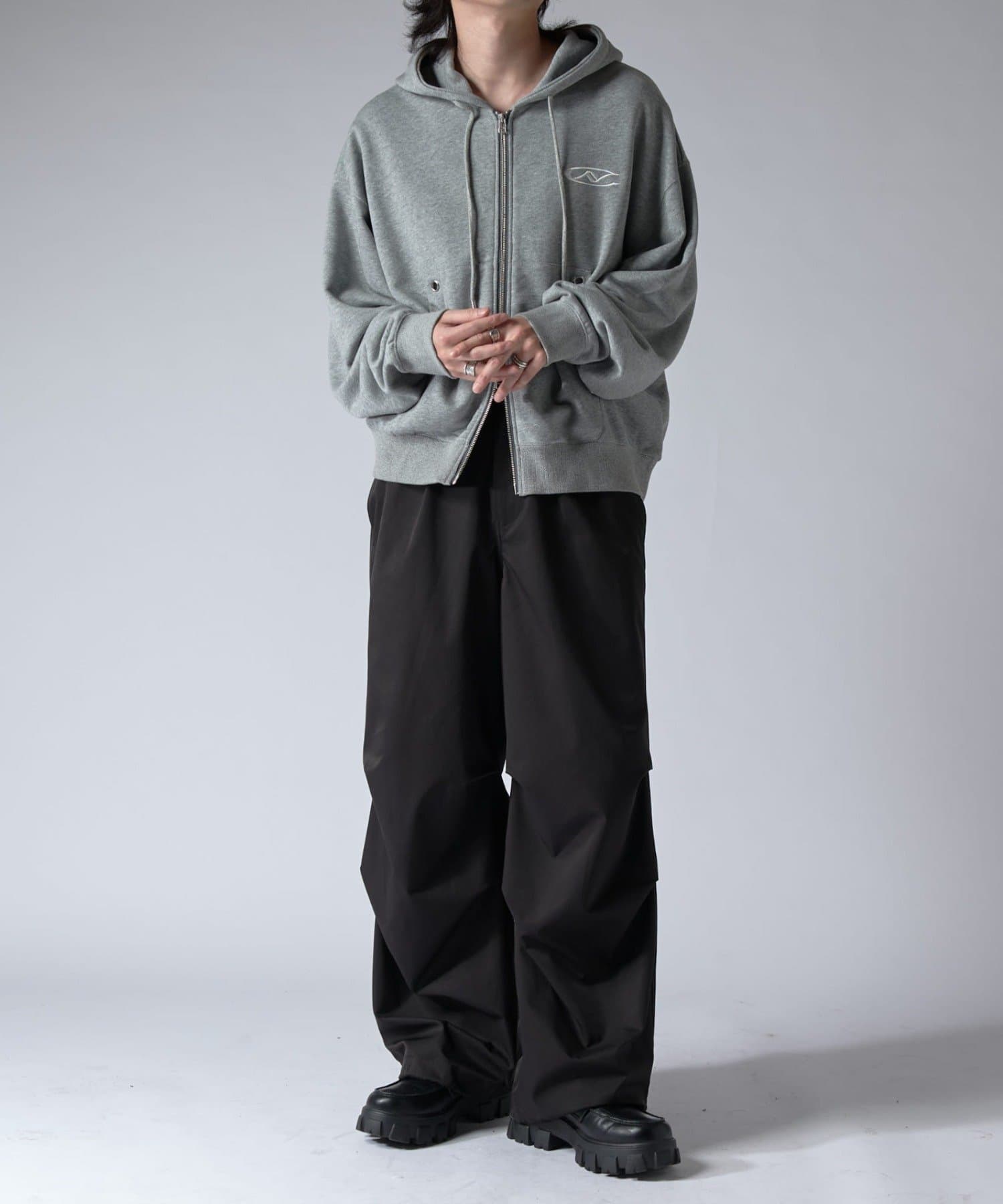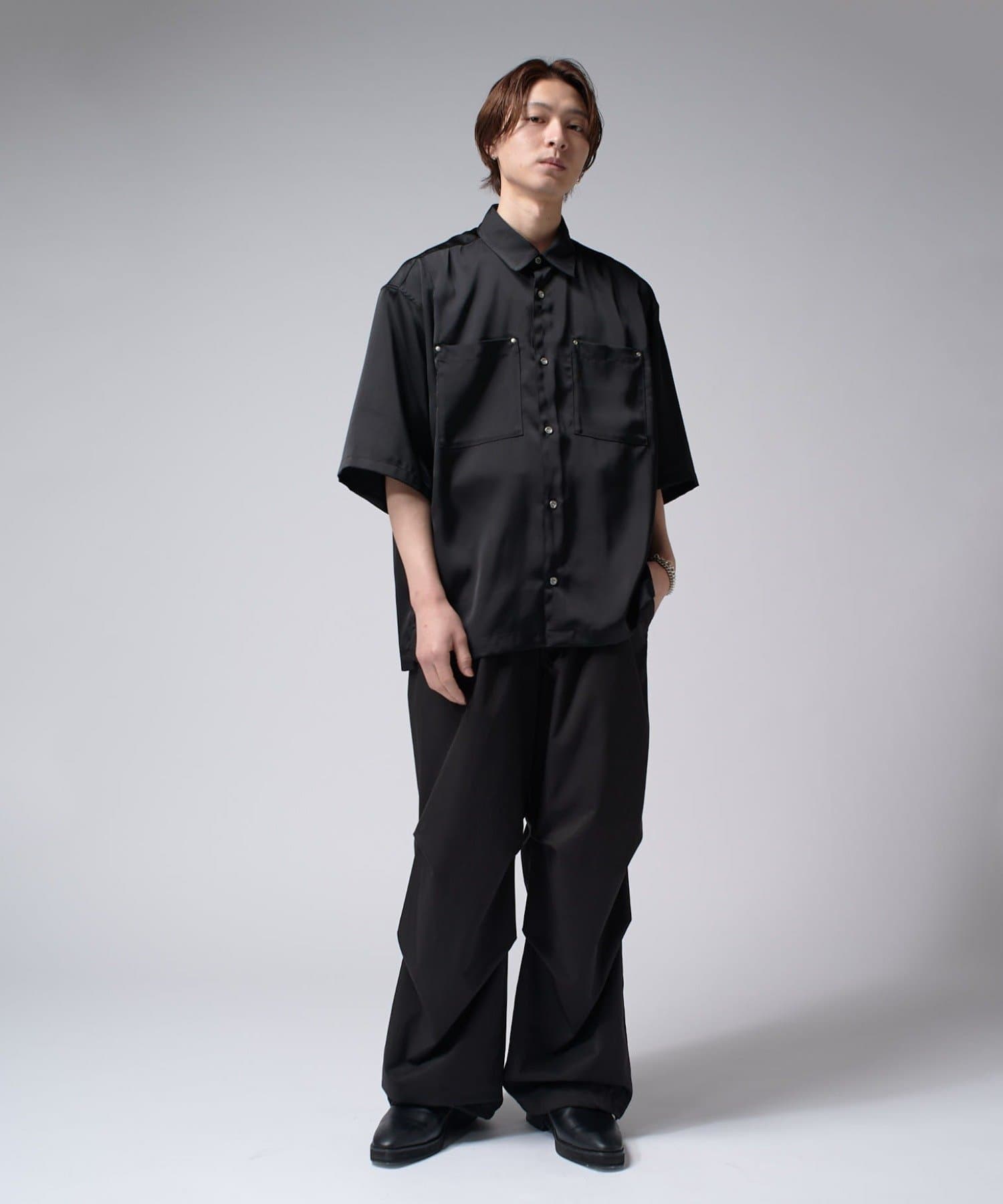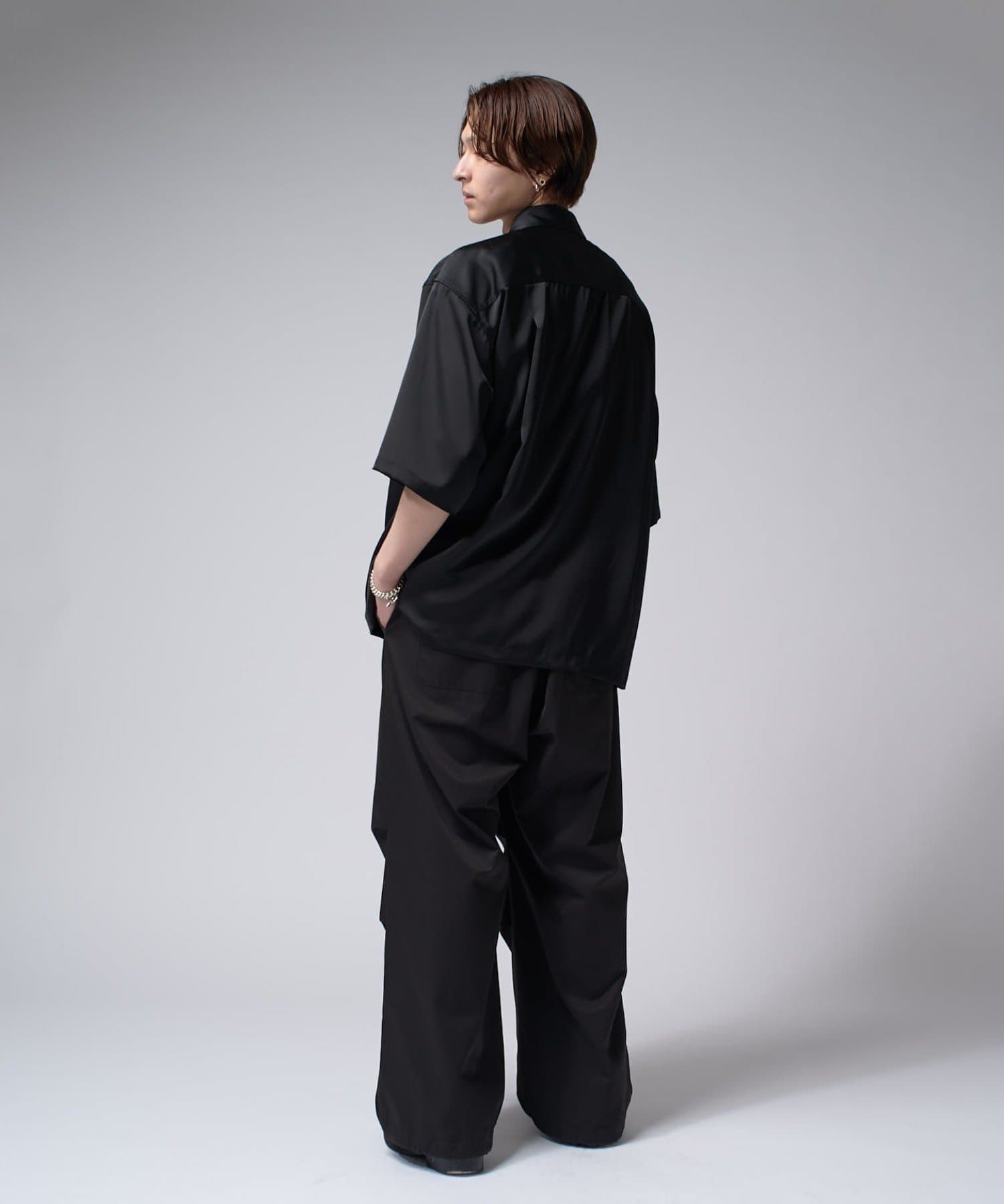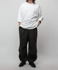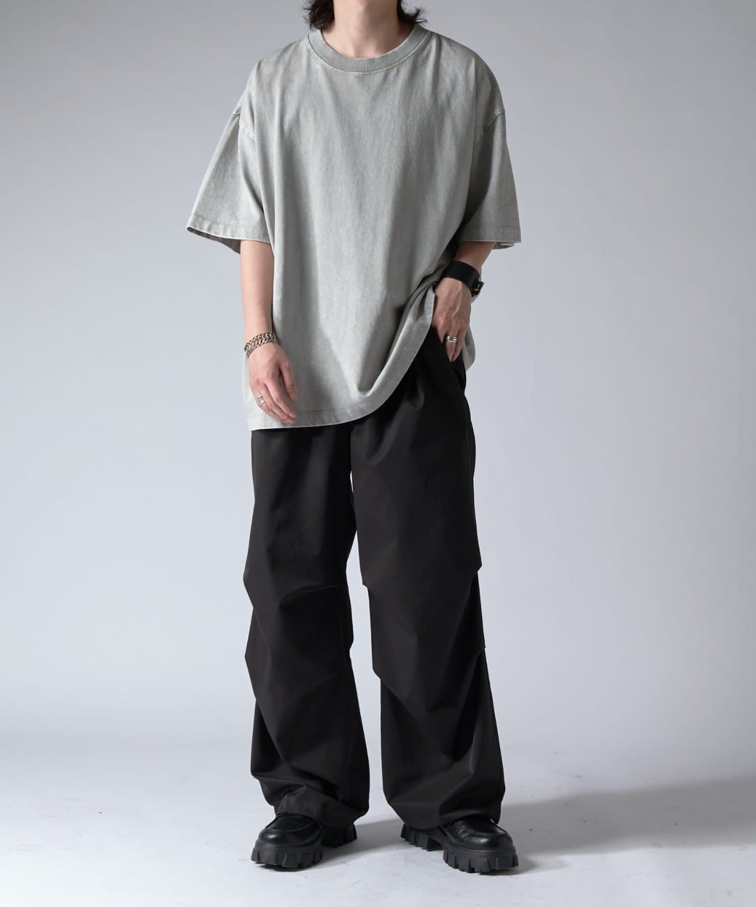 かなりワイドなシルエットのパラシュートパンツなので、オーバサイズのシャツやTシャツに組み合わせてお使い頂けます。